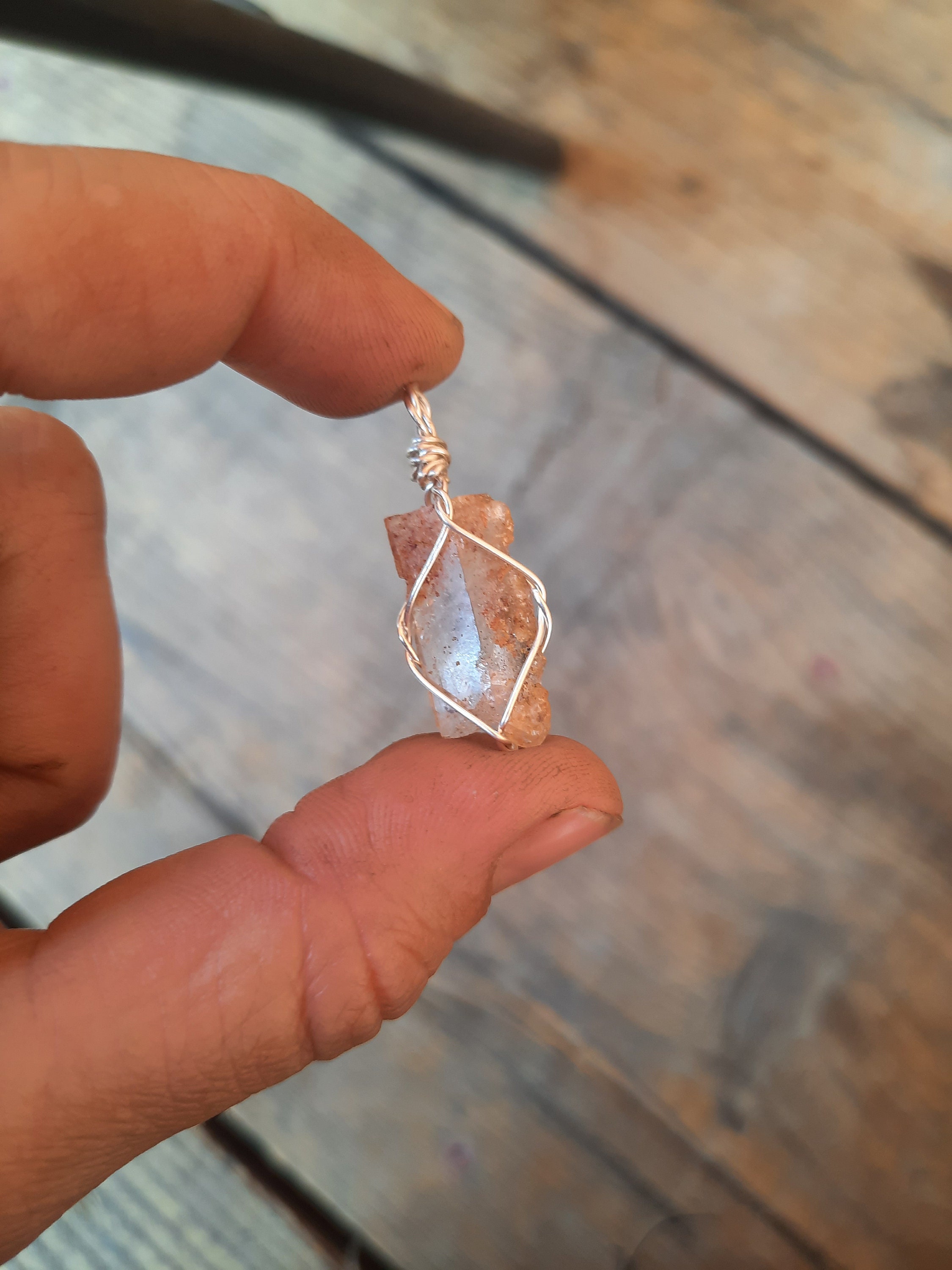 lovely topaz color Rainbows 🌈 in it Unique piece that I will enjoy it’s Beauty! Dahllia Does the best Wire wrapping & love all her Raw crystals! Happy I found Her! Customer Service is #1!!!