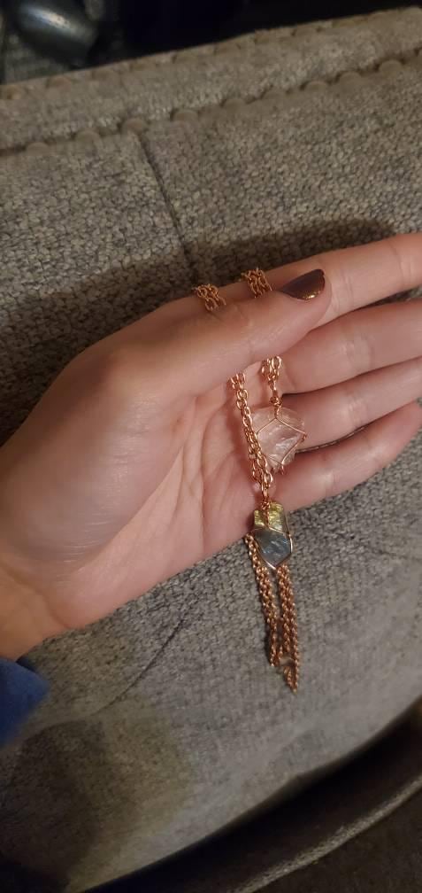 mini raw rough natural rose quartz crystal wire wrapped pendant, rose quartz necklace, natural rose quartz jewelry, pink quartz necklace, ra