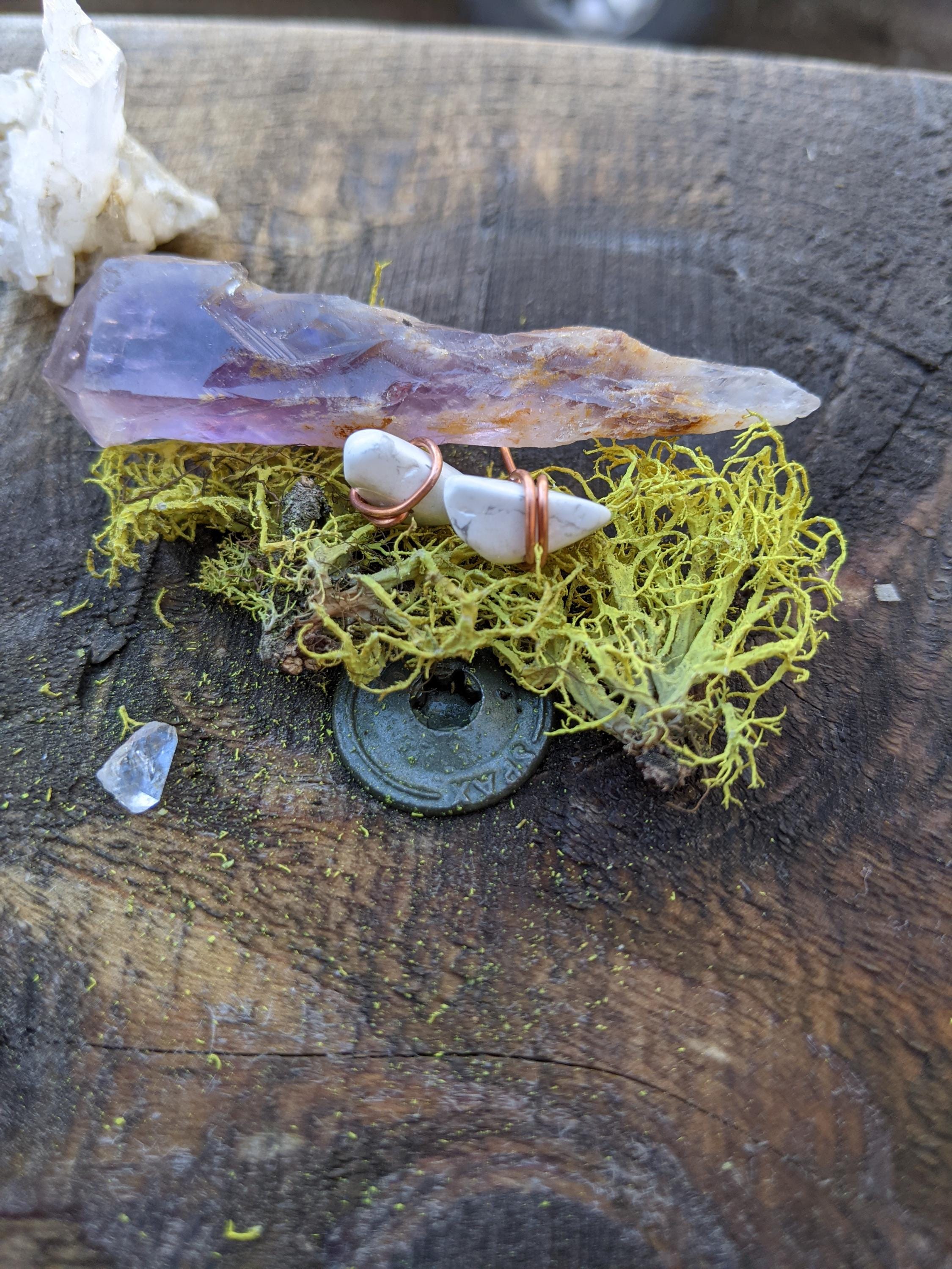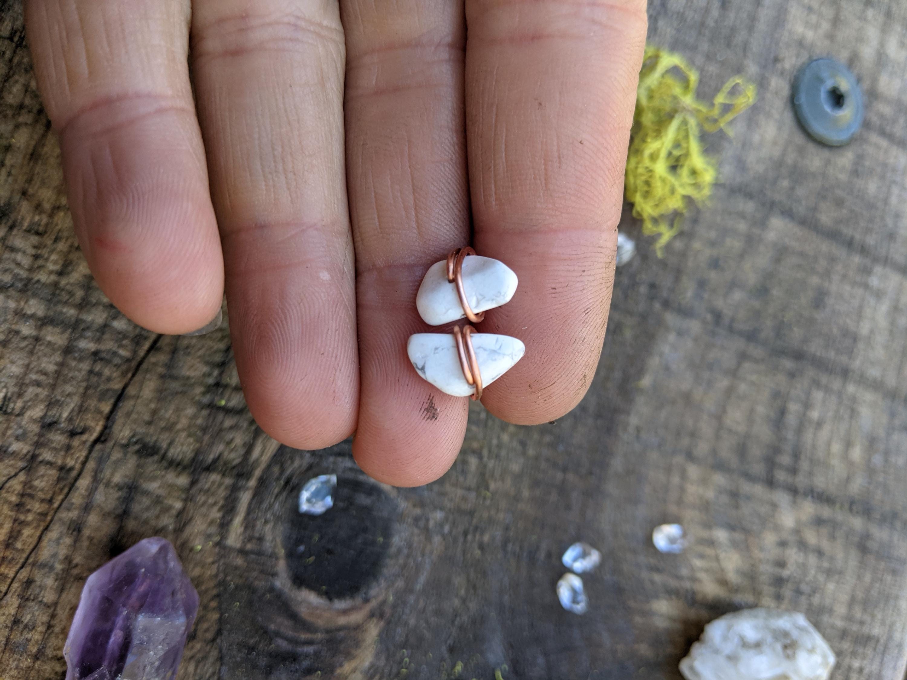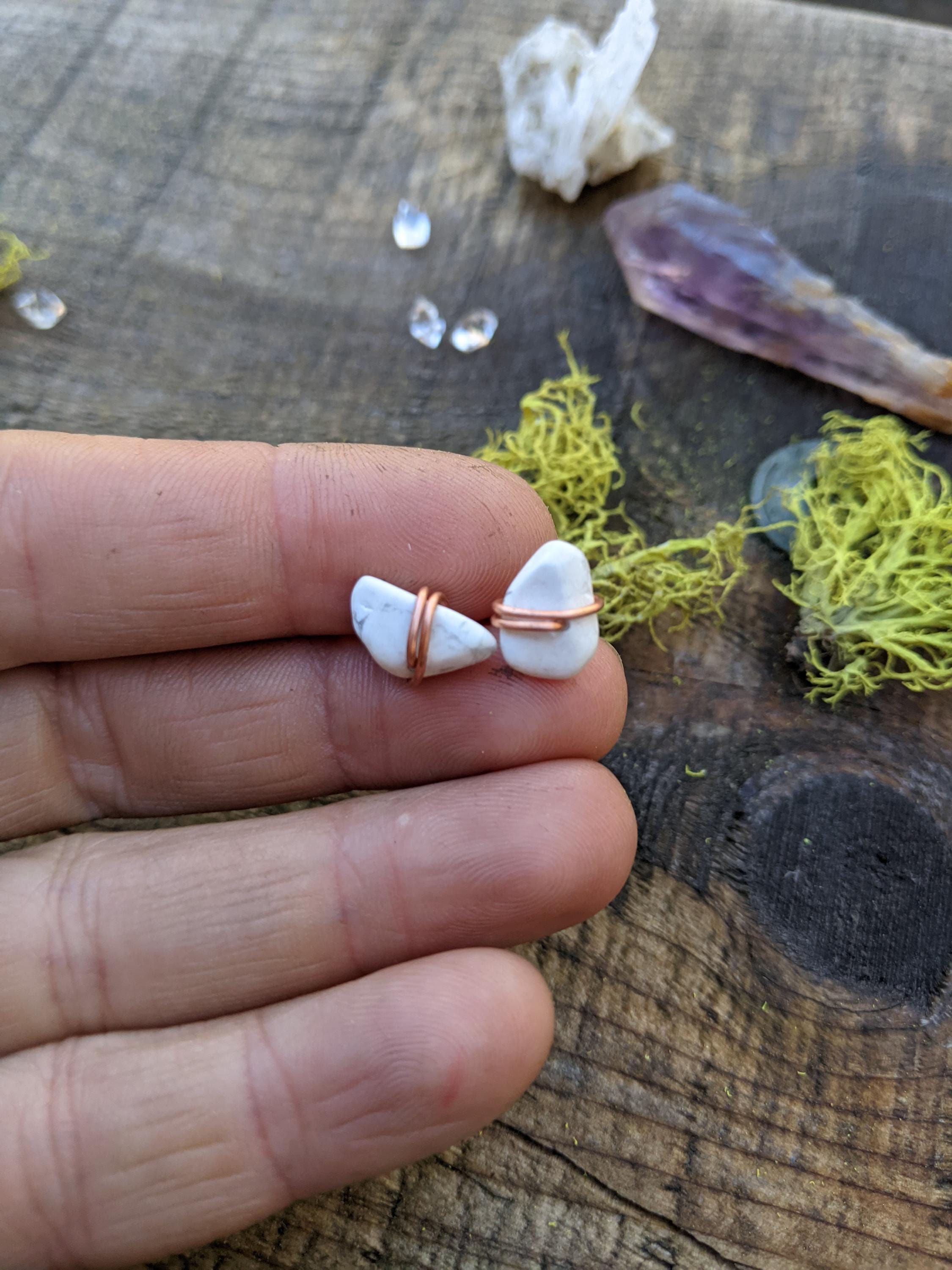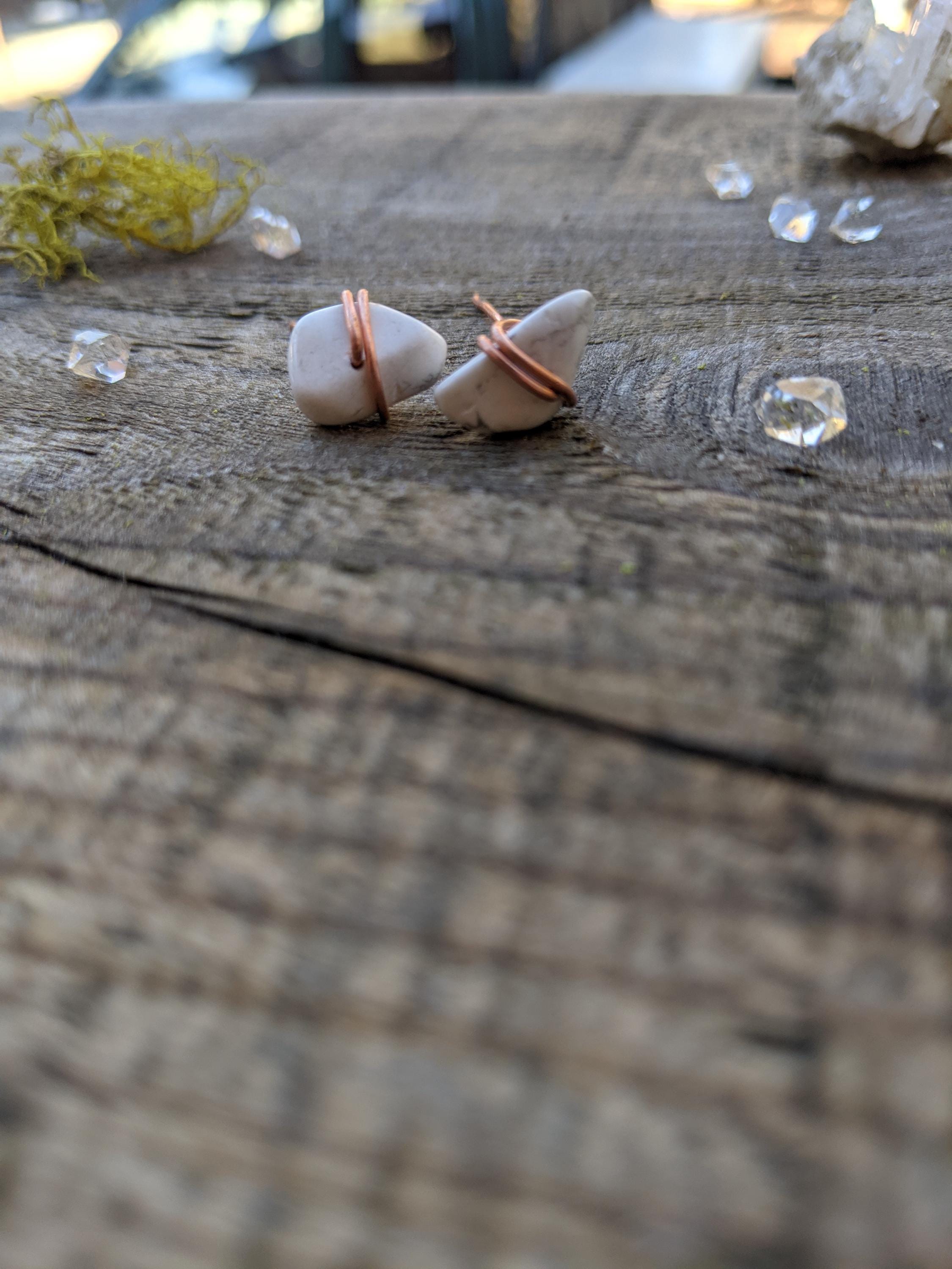 howlite crystals studs, solid copper
