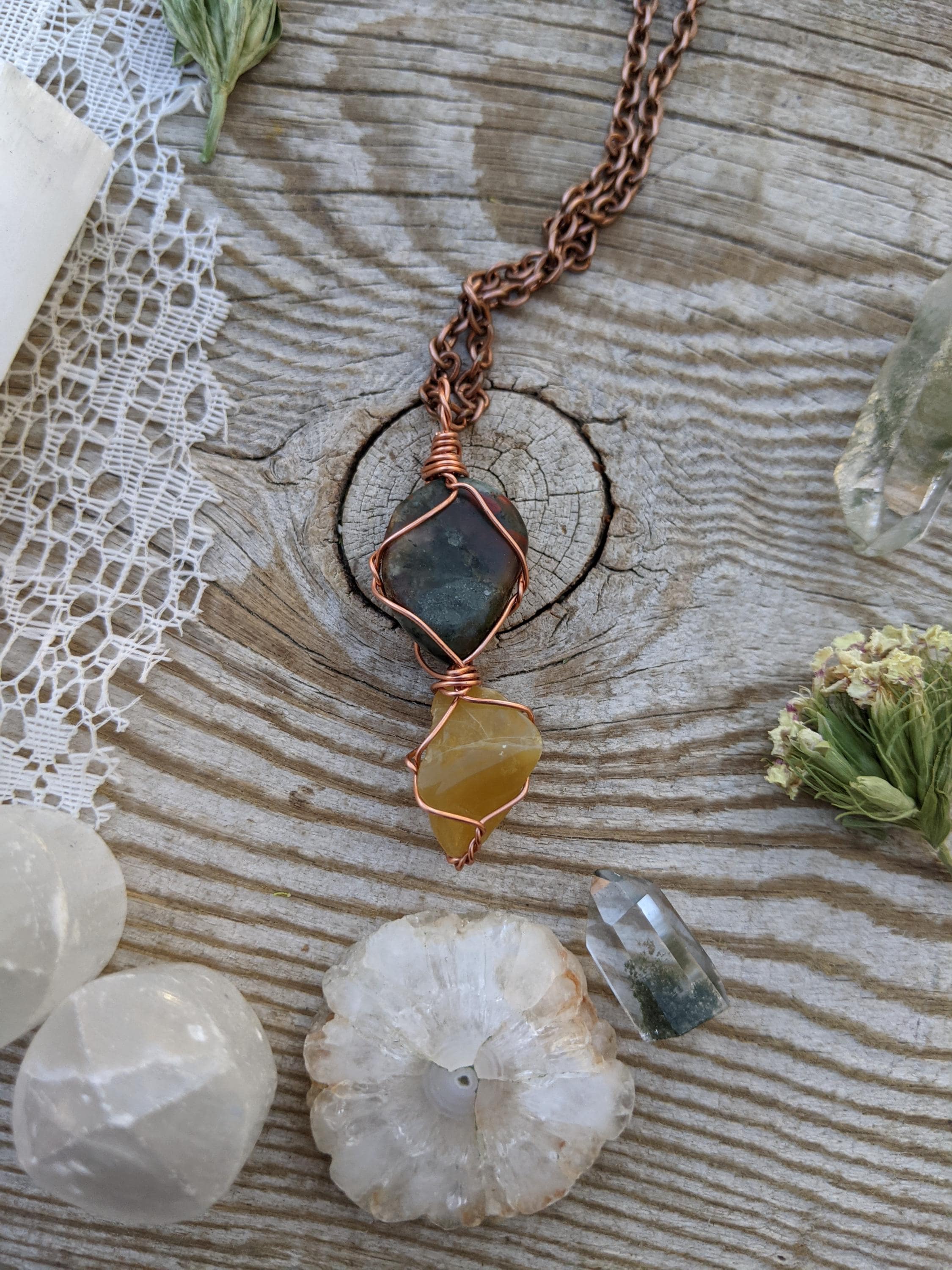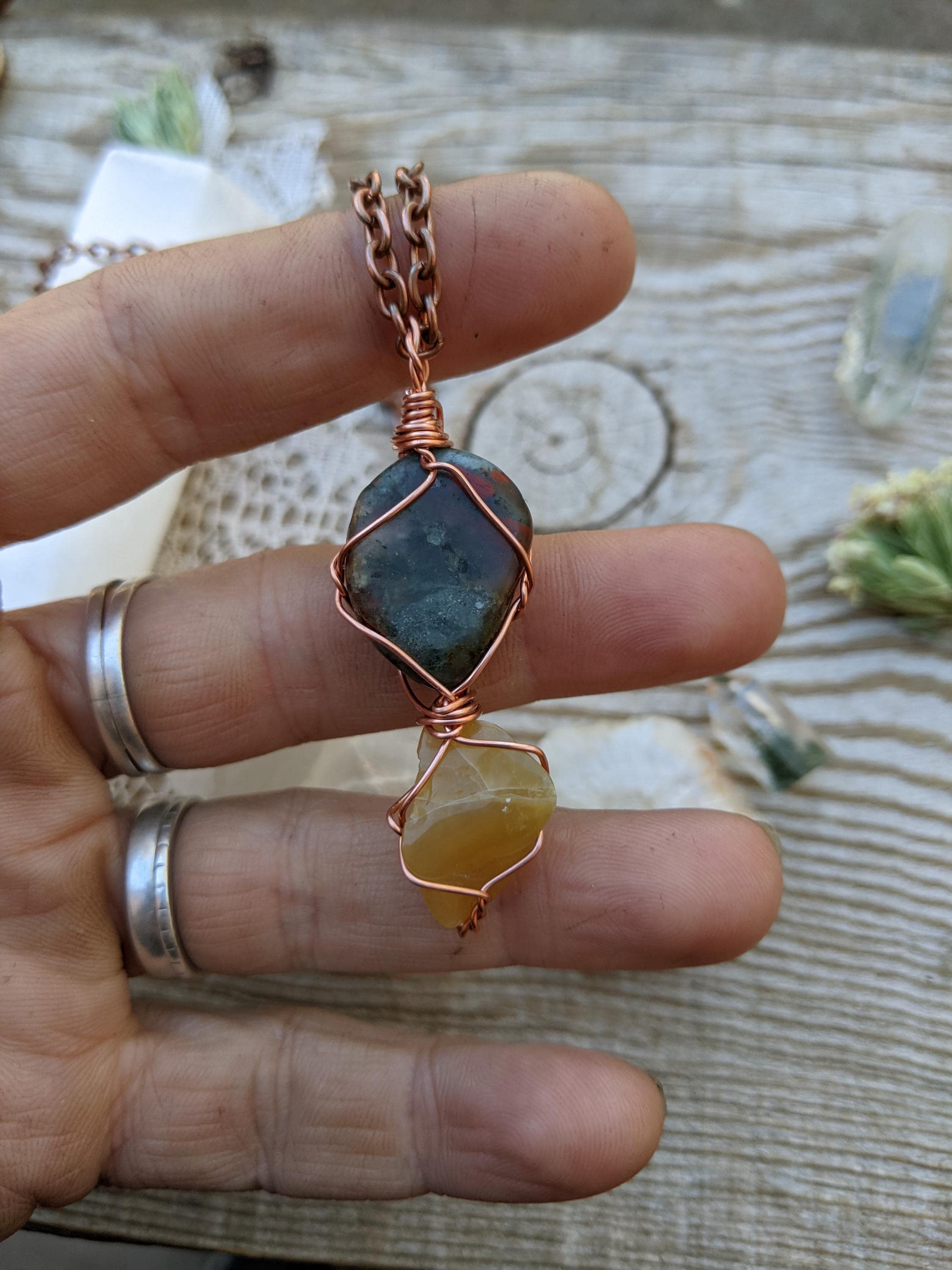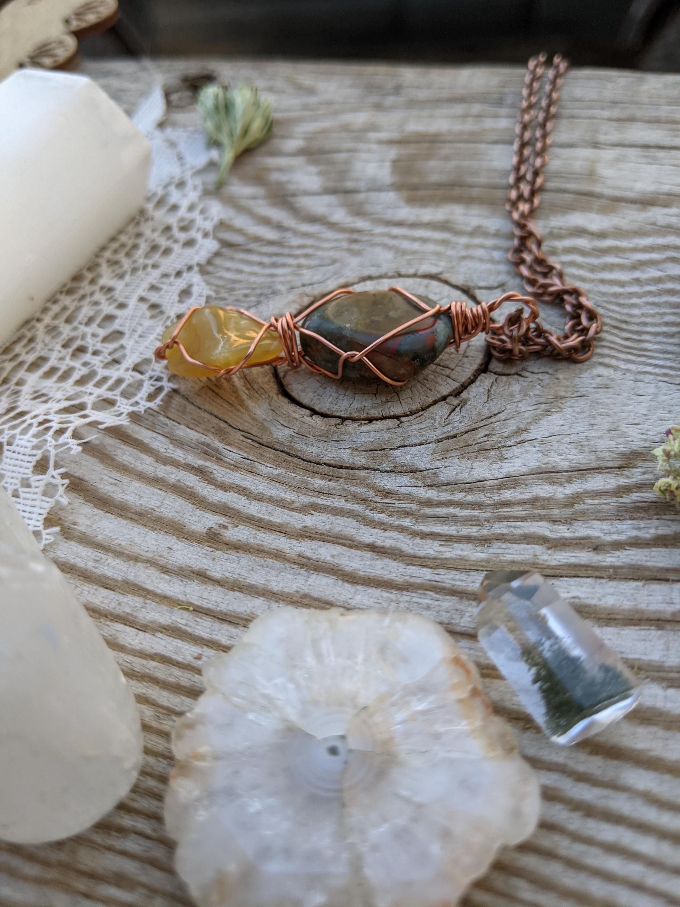 Natural polished bloodstone and yellow opal from southern oregon, natural opal pendant, yellow opal necklace, local all natural opal pendant