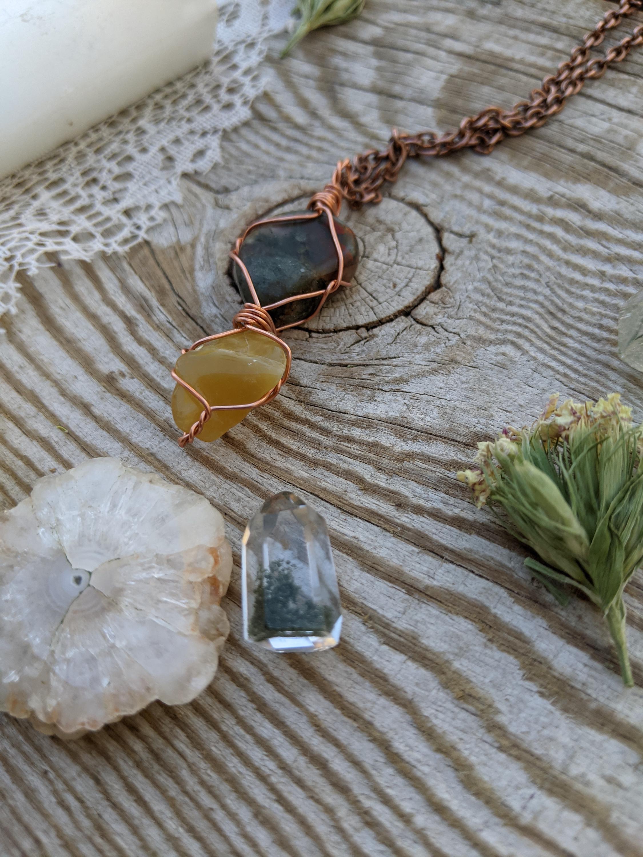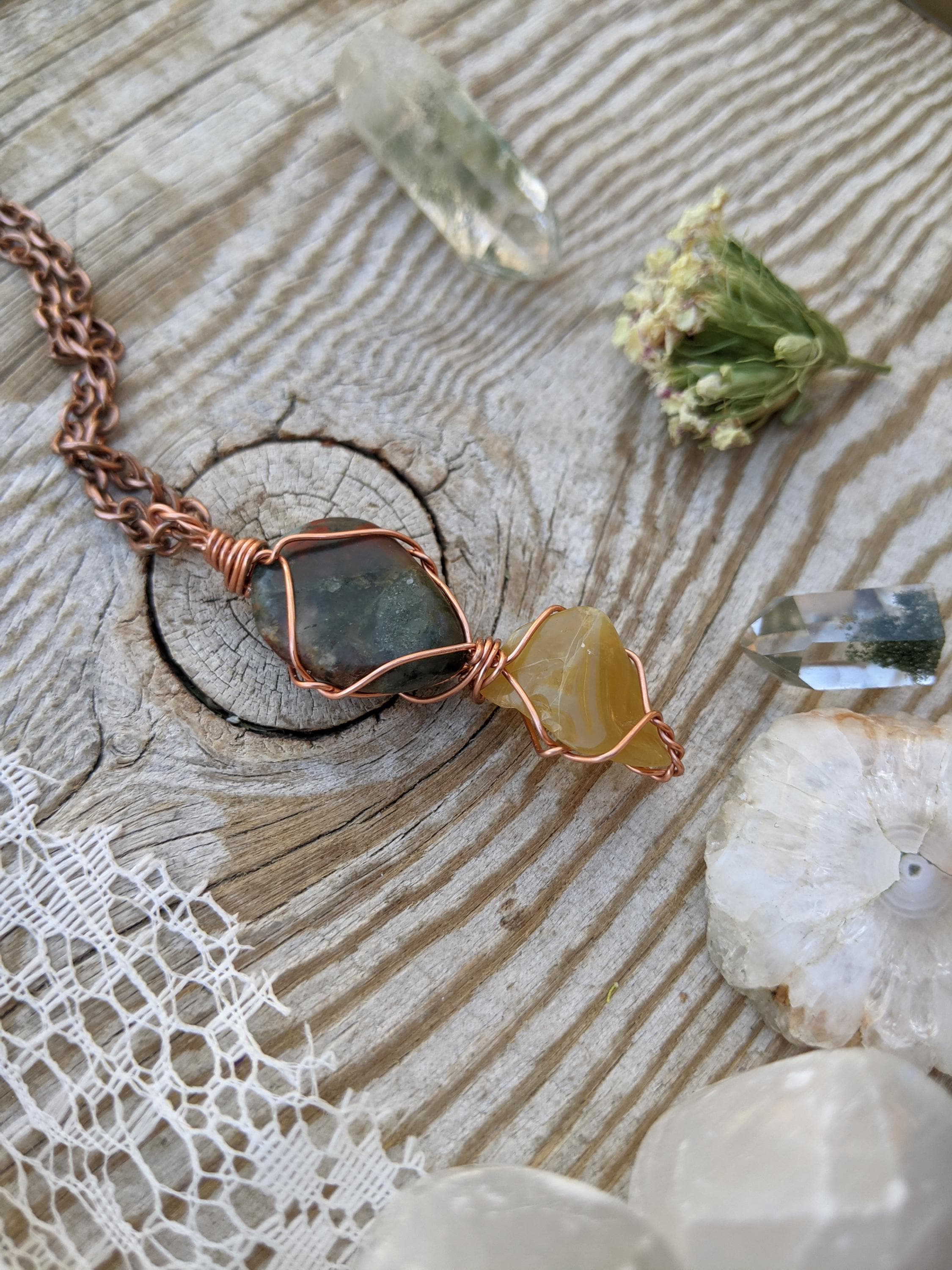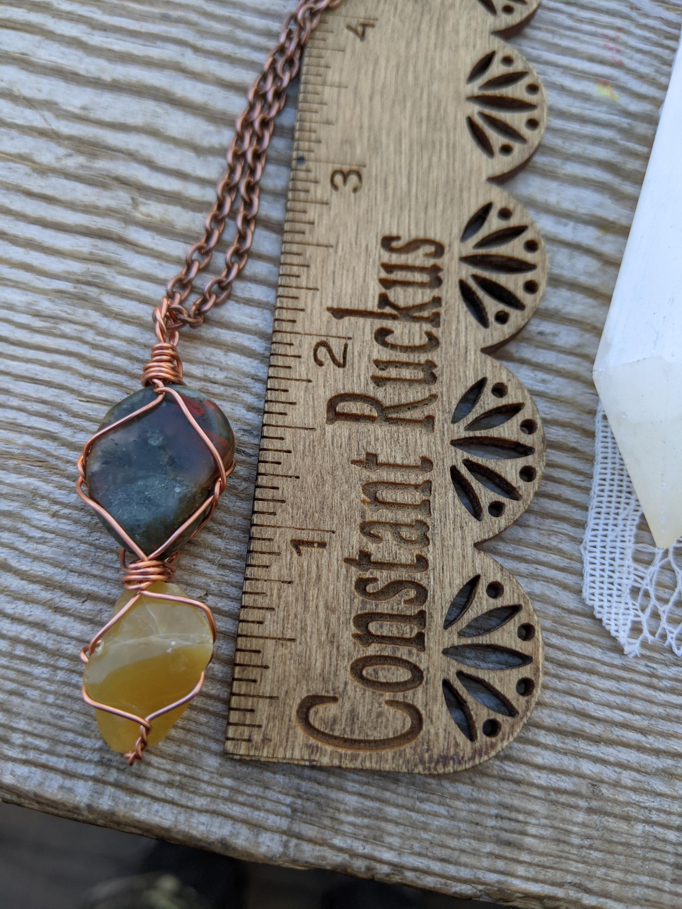 Natural polished bloodstone and yellow opal from southern oregon, natural opal pendant, yellow opal necklace, local all natural opal pendant