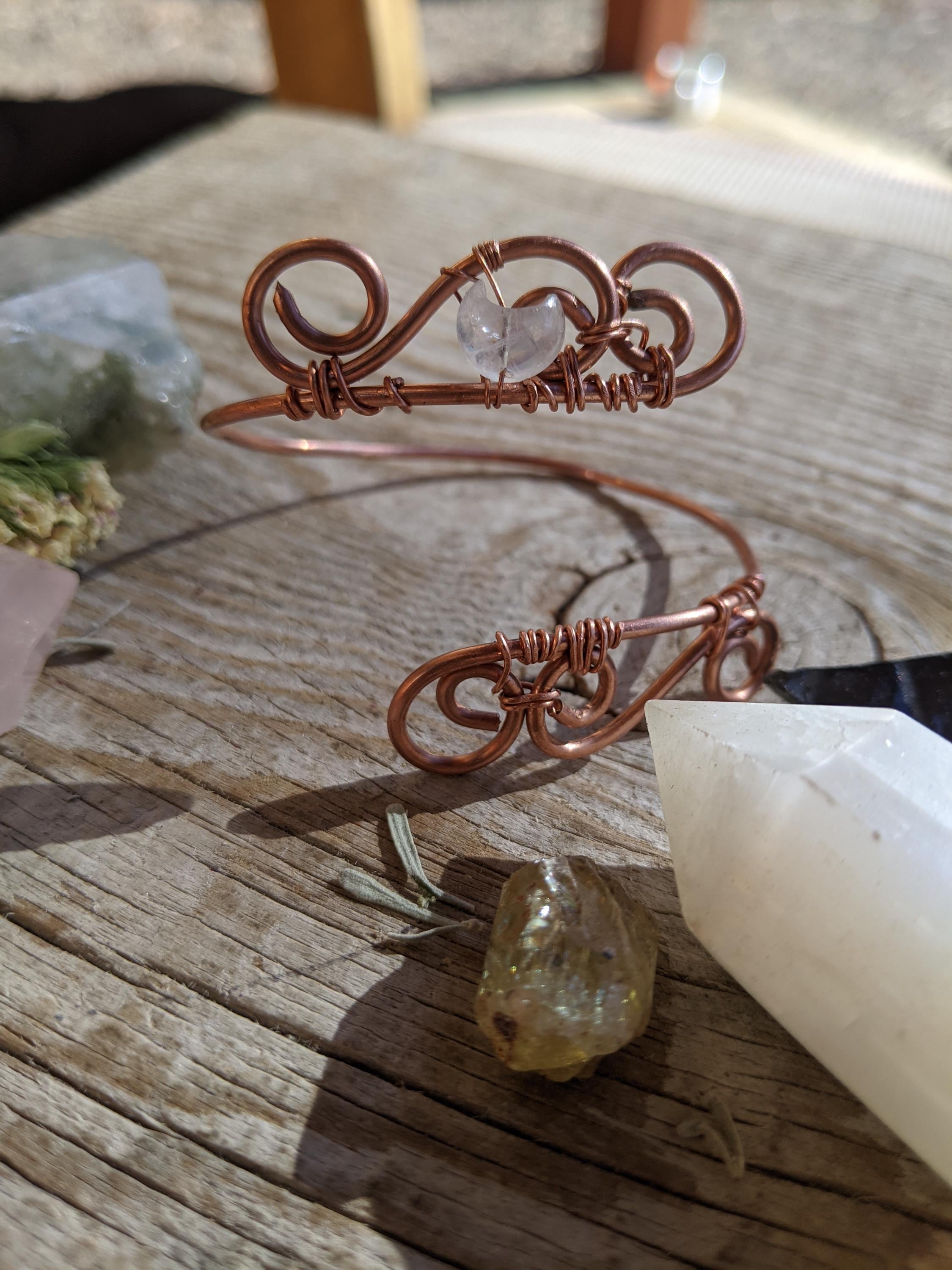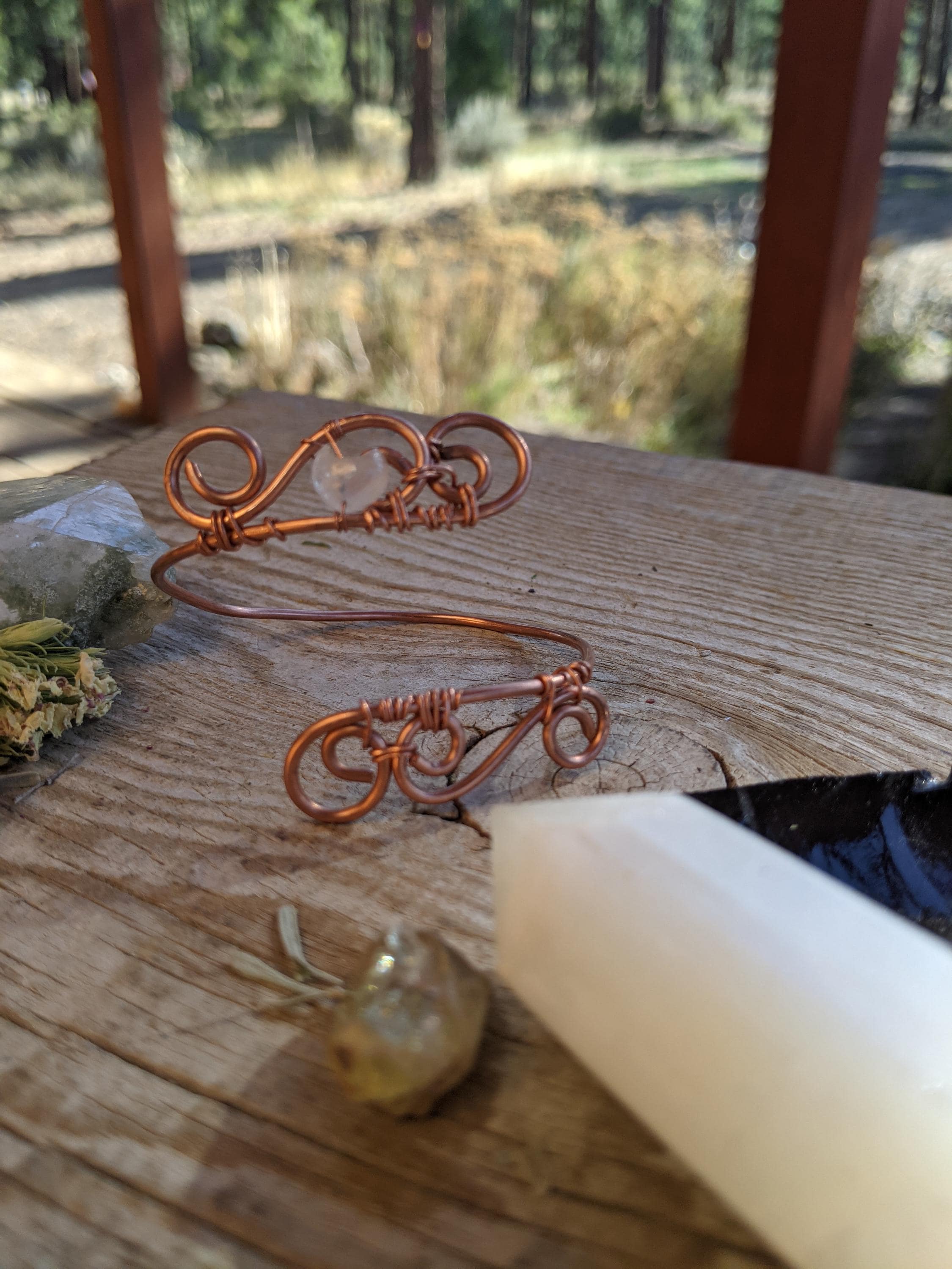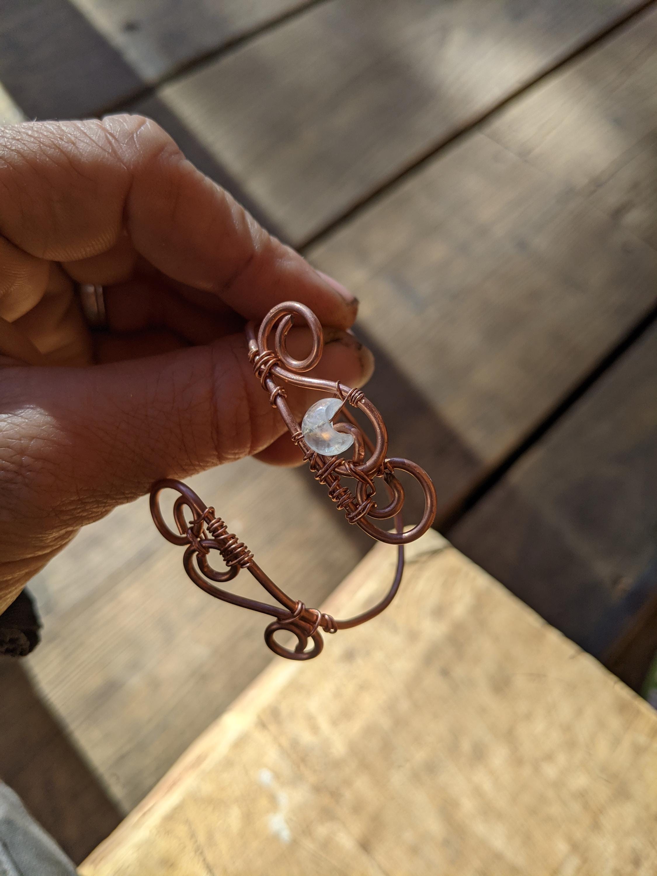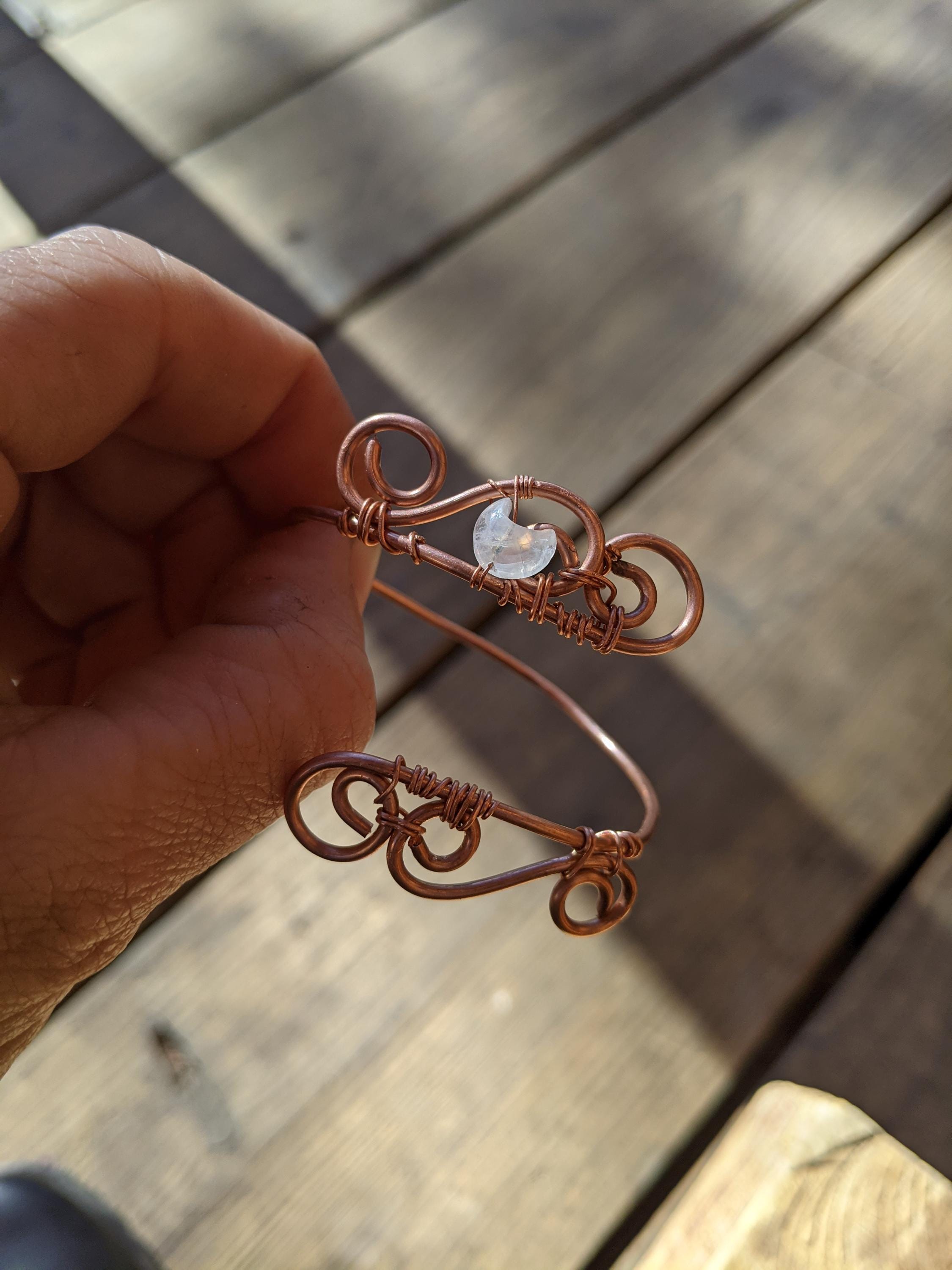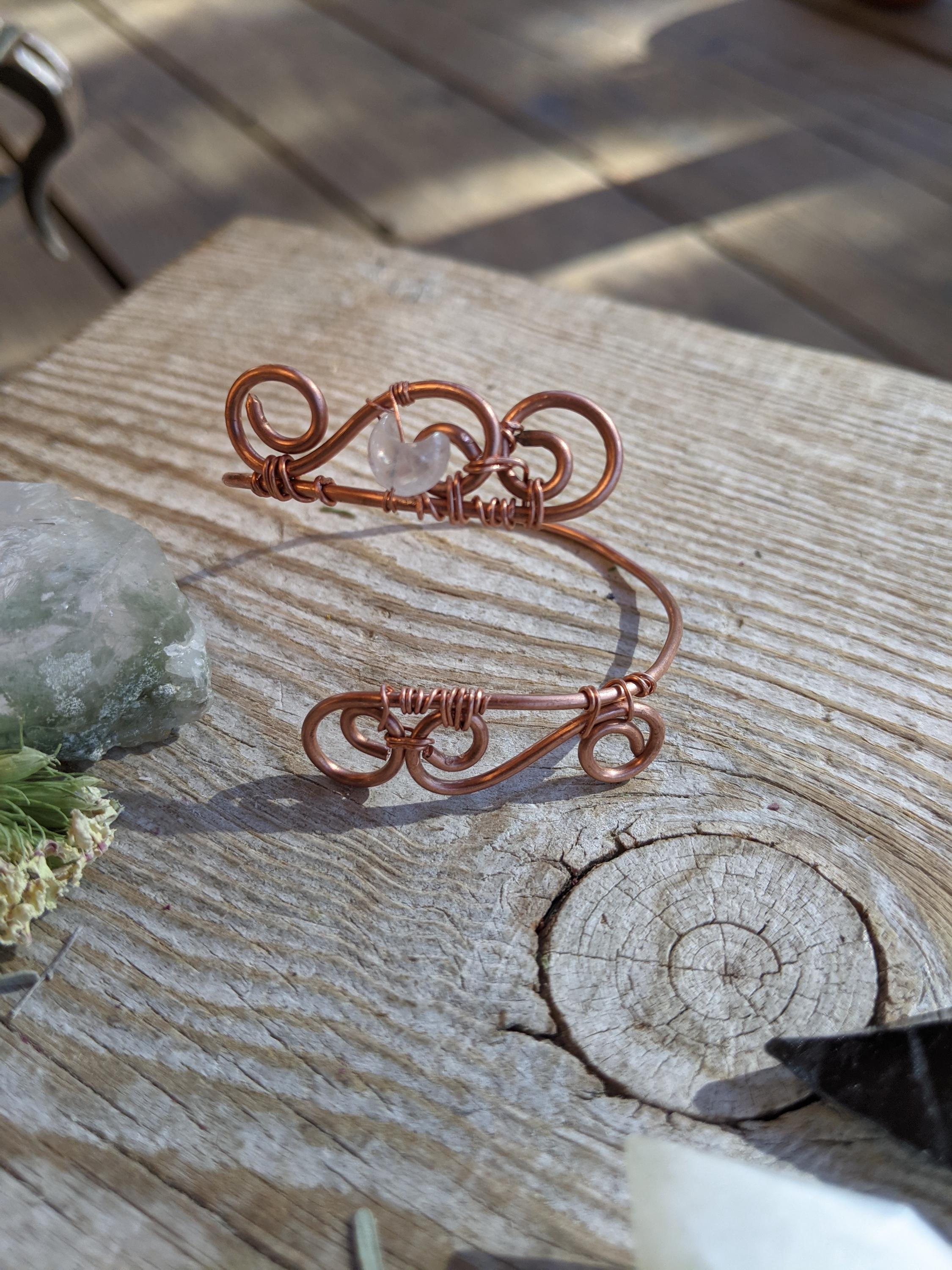 Swirly moonstone moon cuff bracelet, solid copper moonstone cuff bracelet, natural rainbow moonstone crystal bracelet, moonstone moon bracel