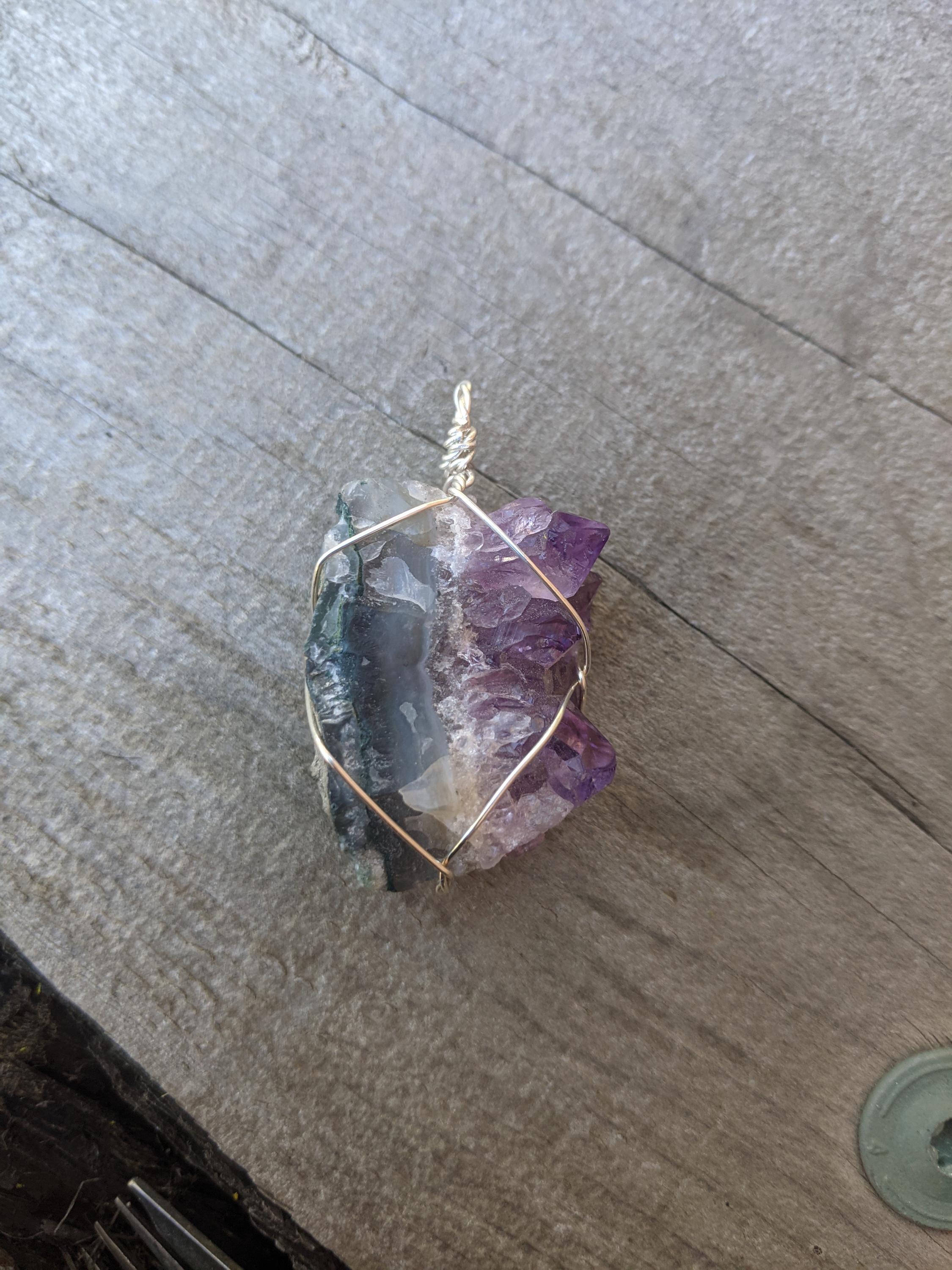 the smalls of the batch! these adorable little clusters are perfect if your looking for a completely natual, raw rough amethyst crystal pendant that is part of a geode!