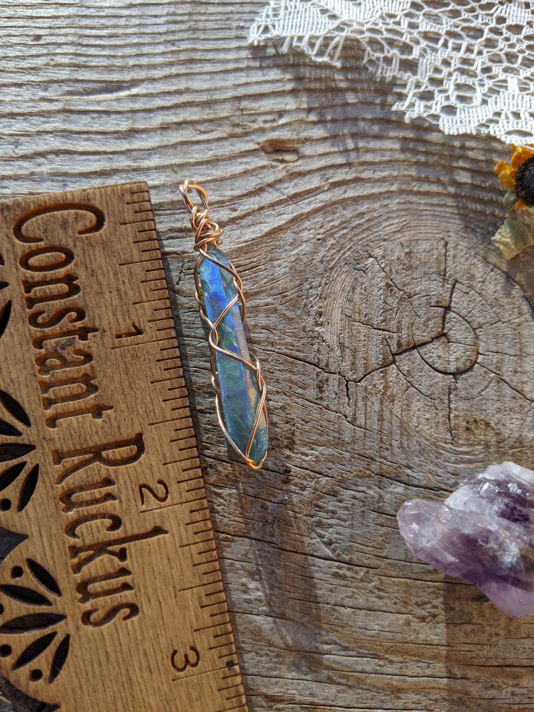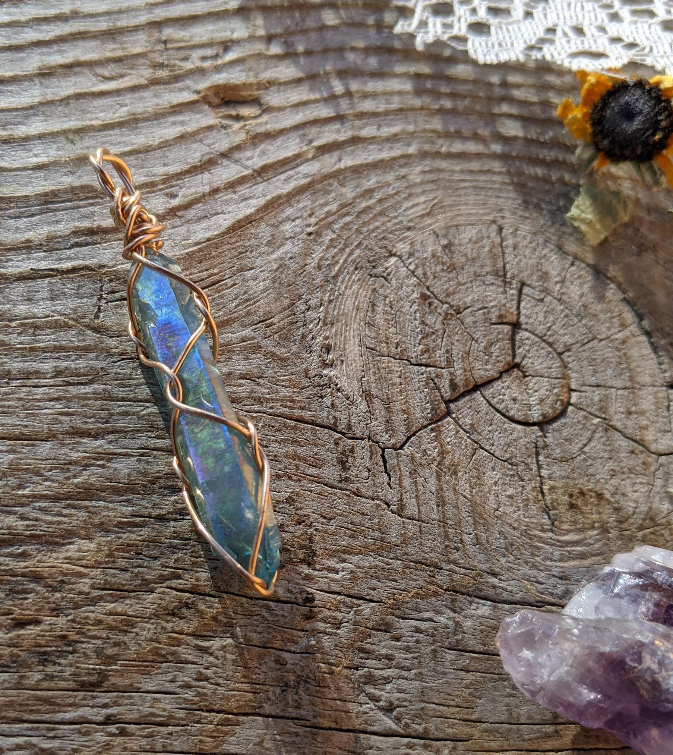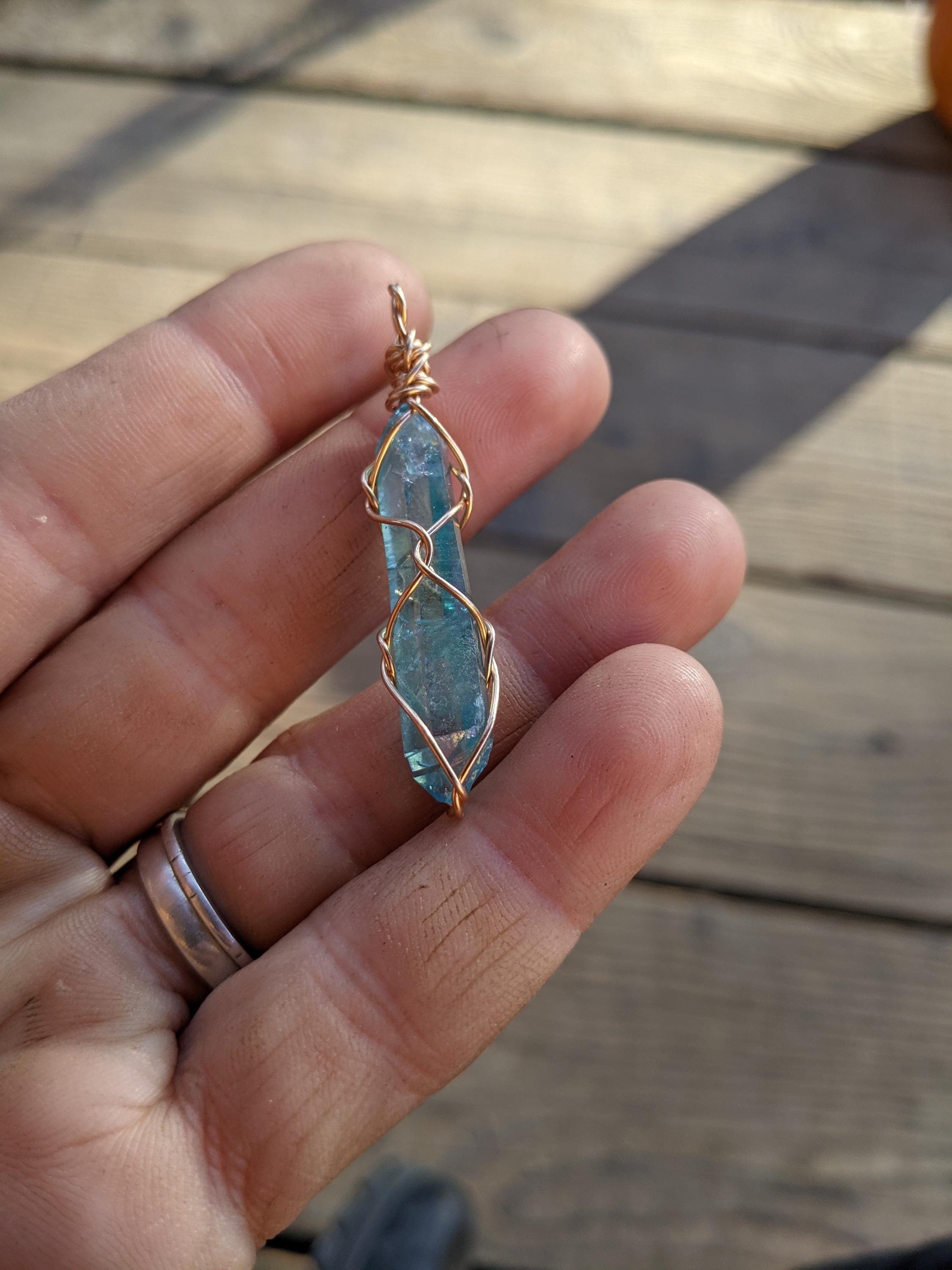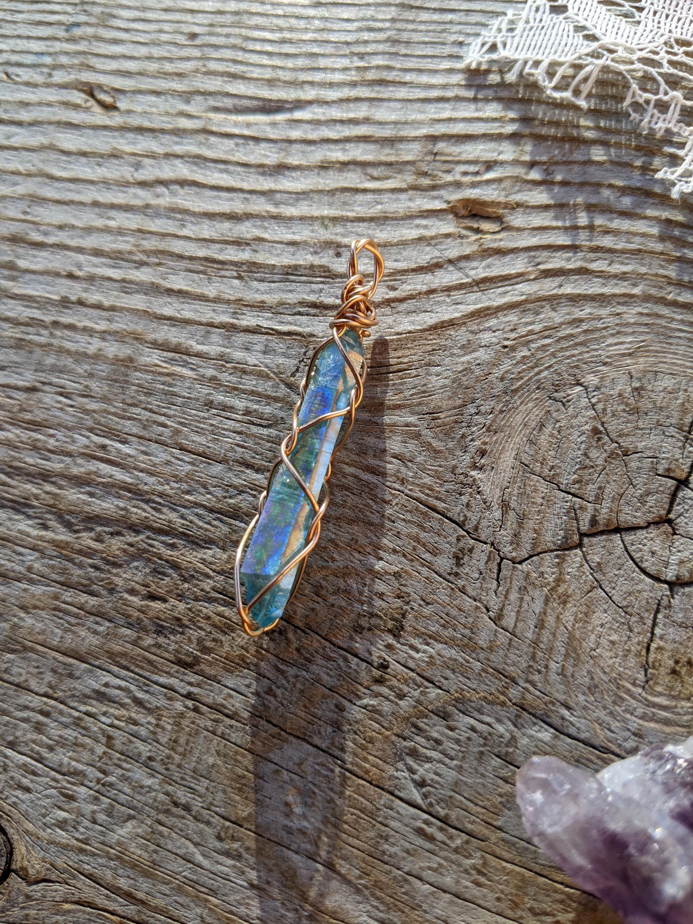 i am thrilled to now offer pendants wrapped in bronze gold wire ! bronze is a fantastic alternative to gold that will never "fade" in color (although tarnish/darken is natural over time or when exposed to water) and is extremely affordable!