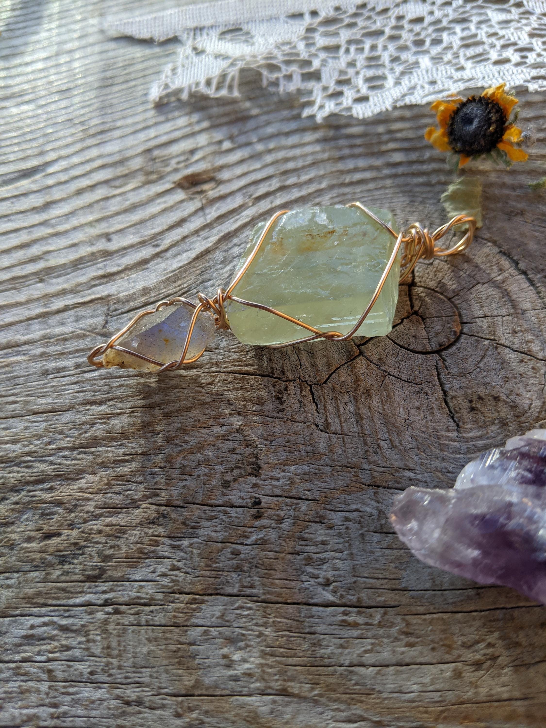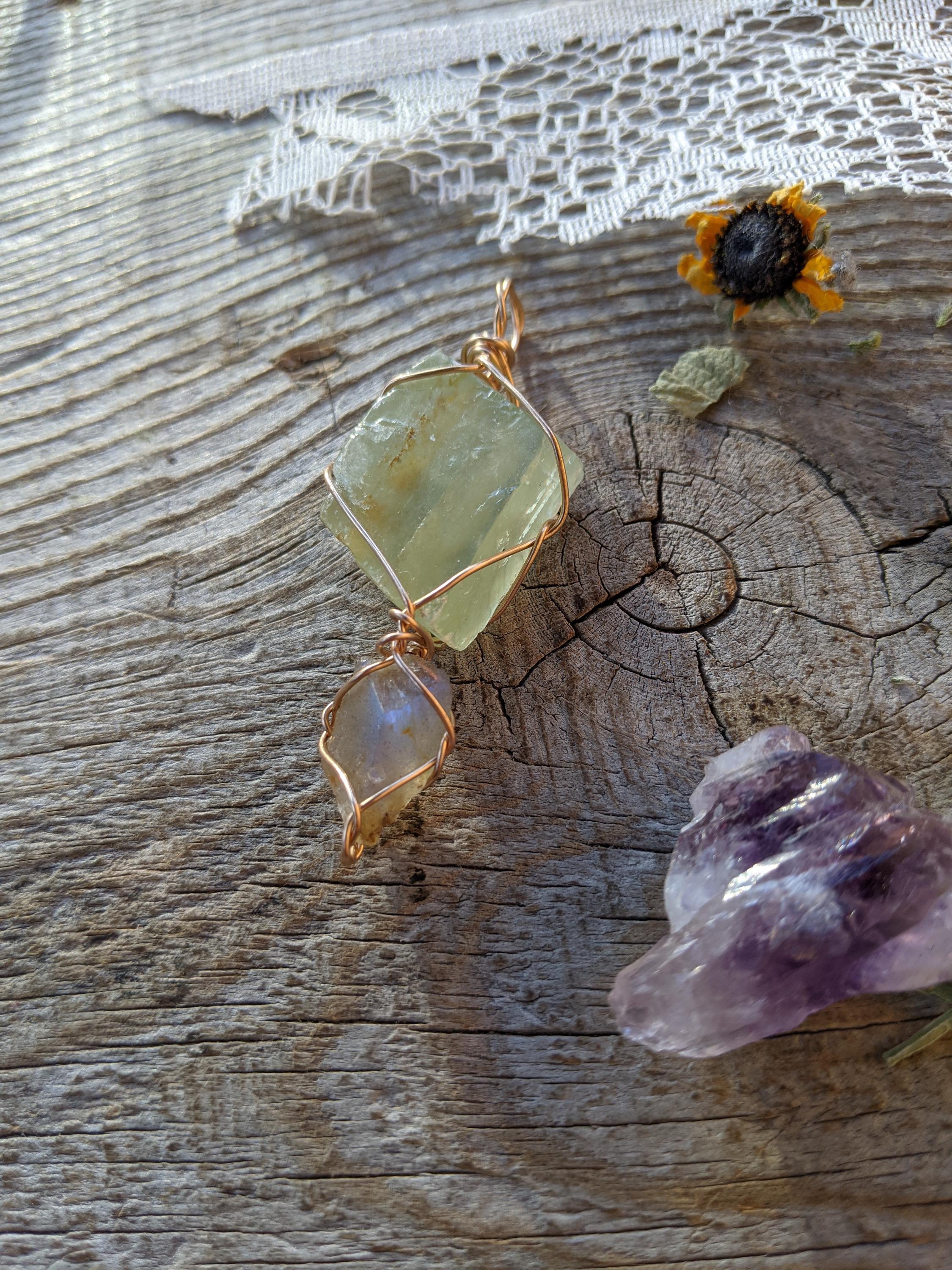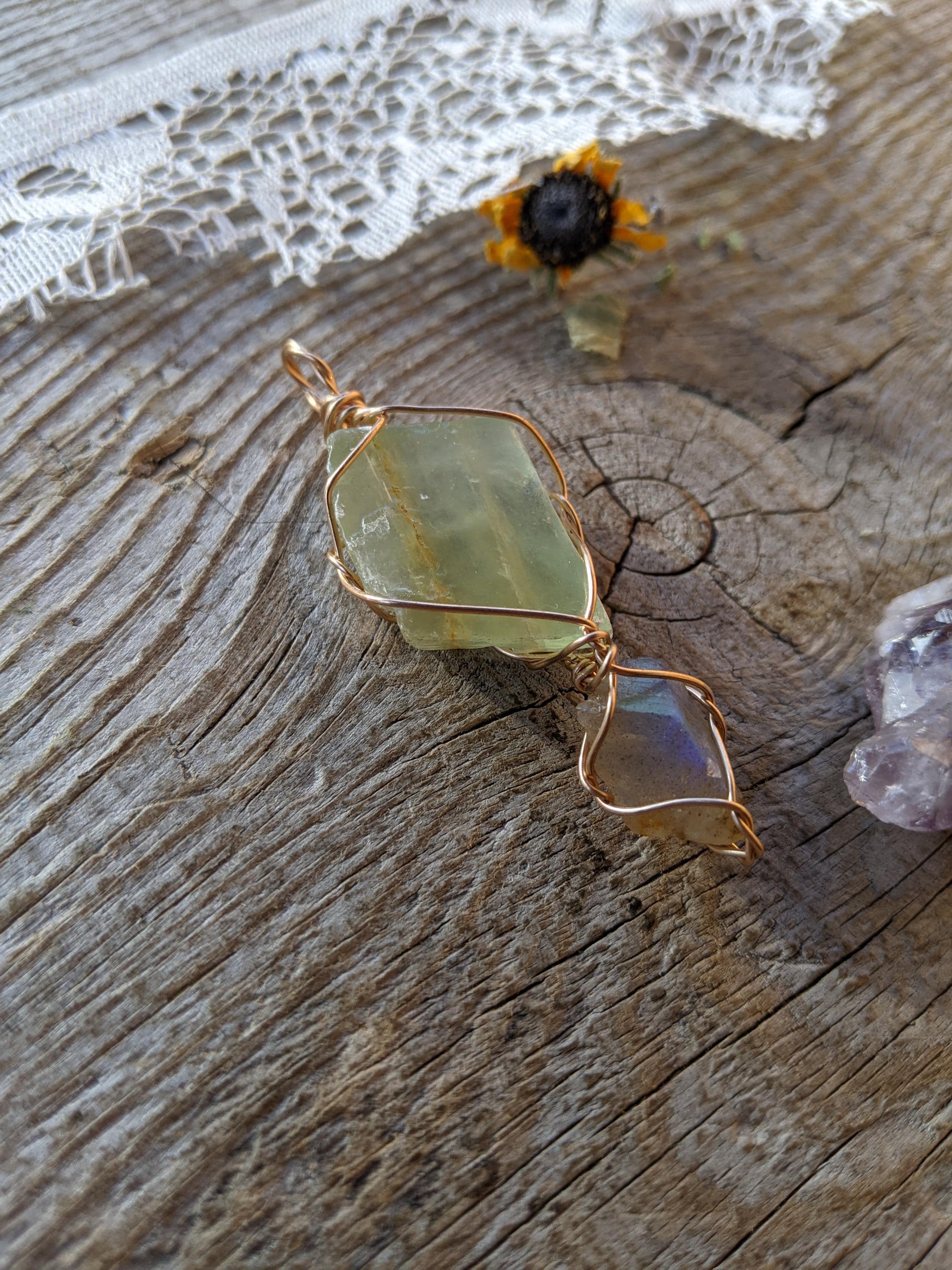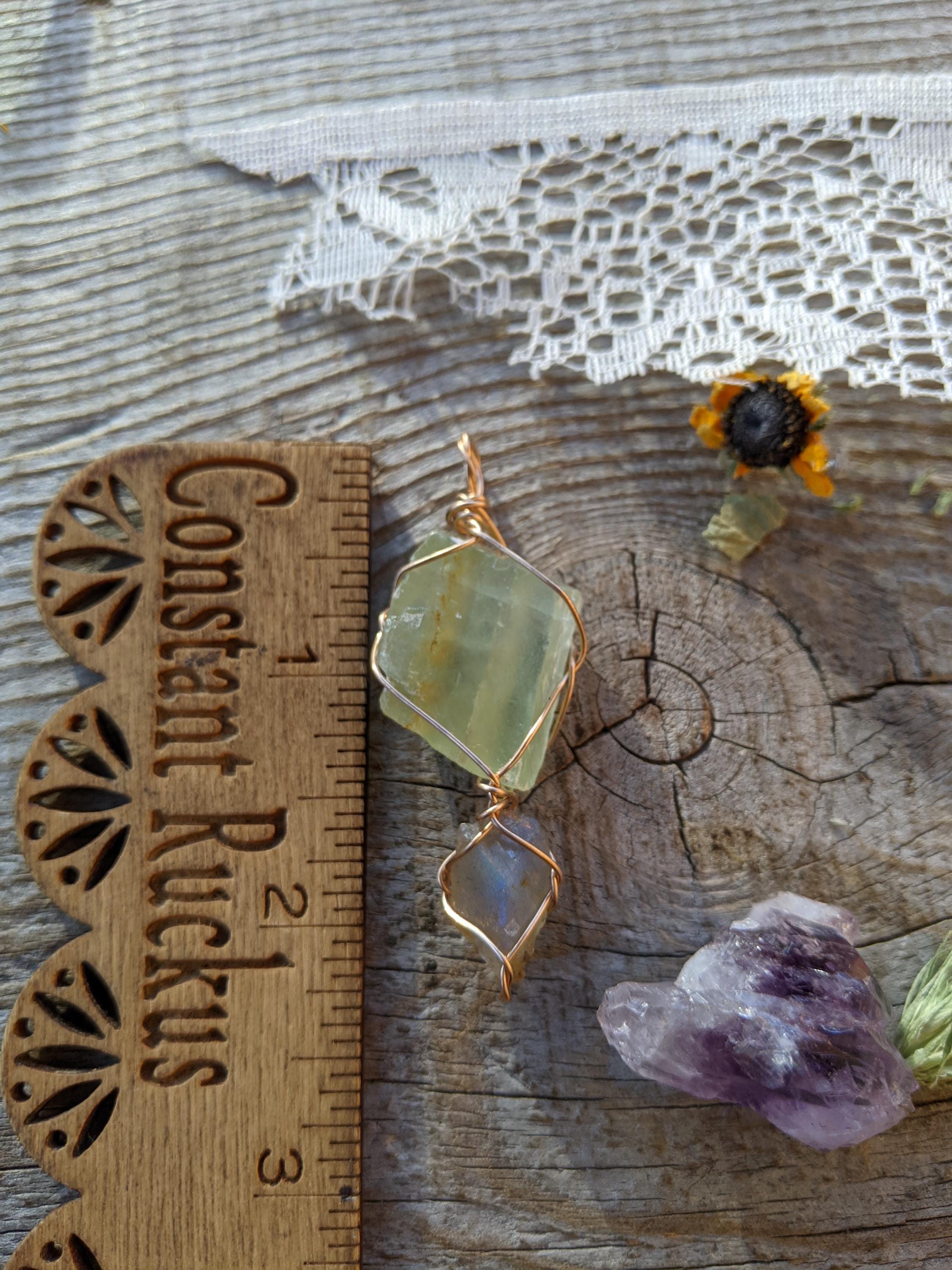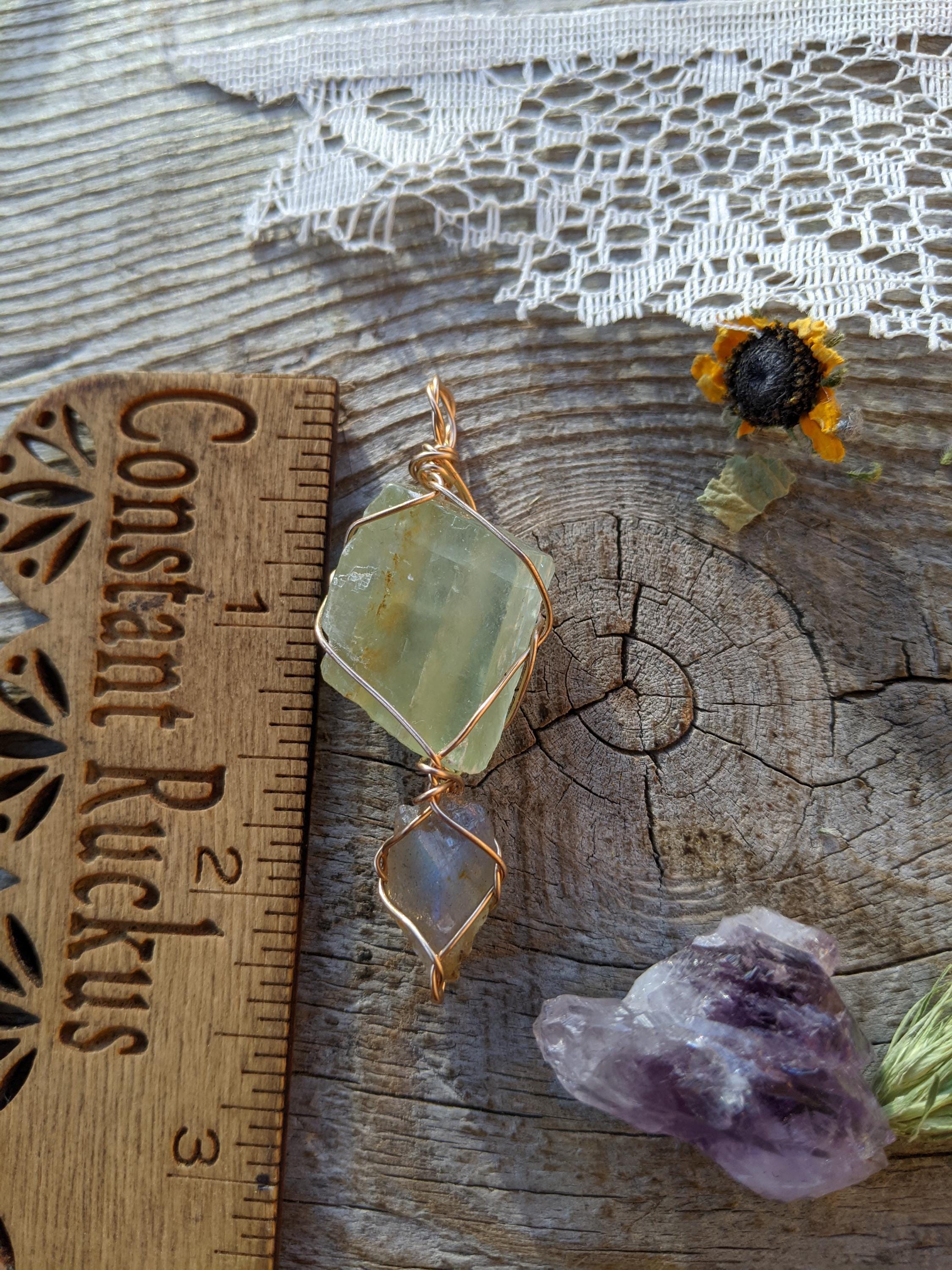 Emerald green calcite and blue labradorite crystal pendant, calcite pendant, labradorite pendant, labradorite necklace, calcite necklace, ne