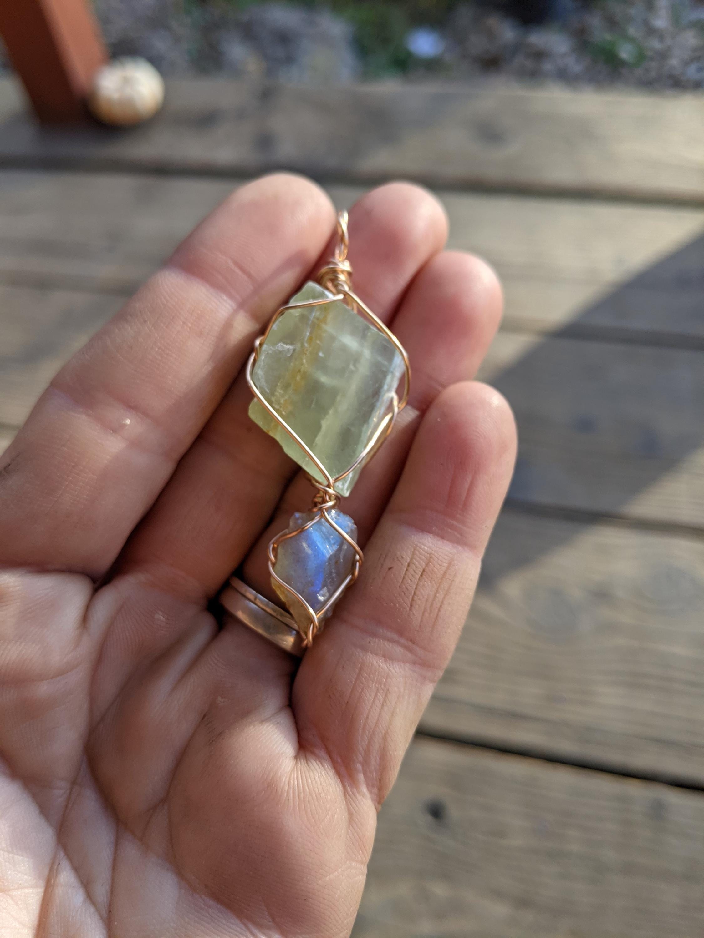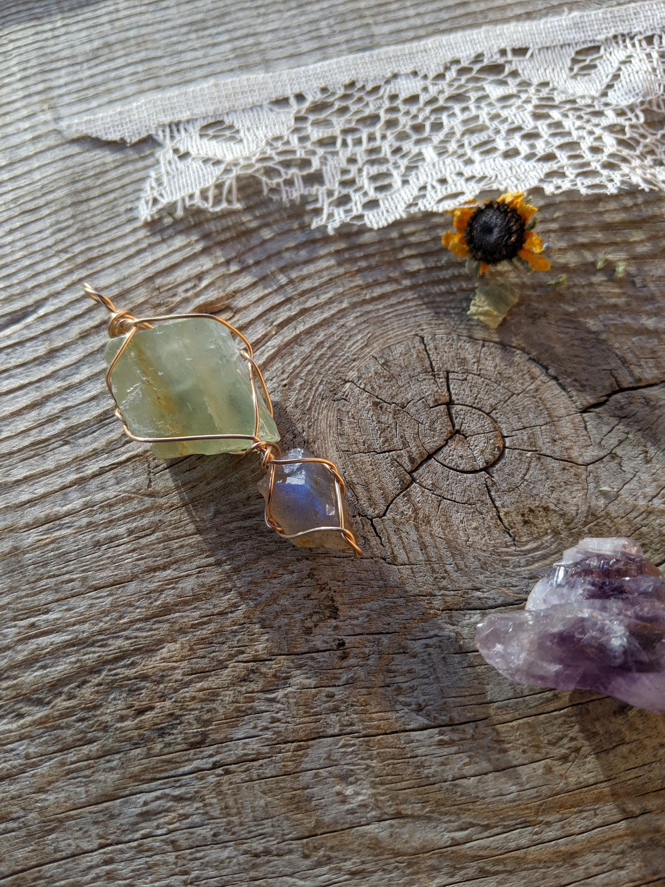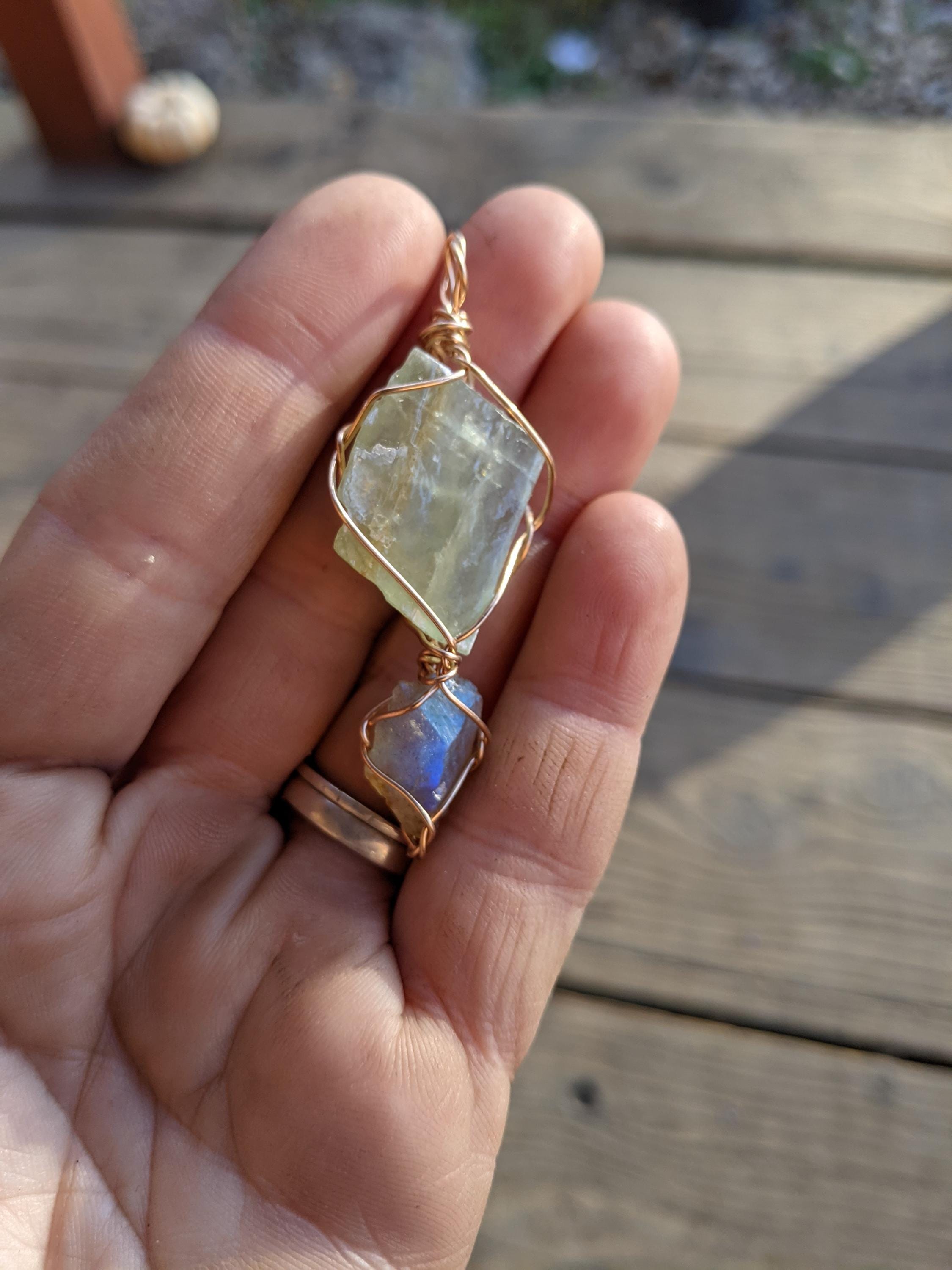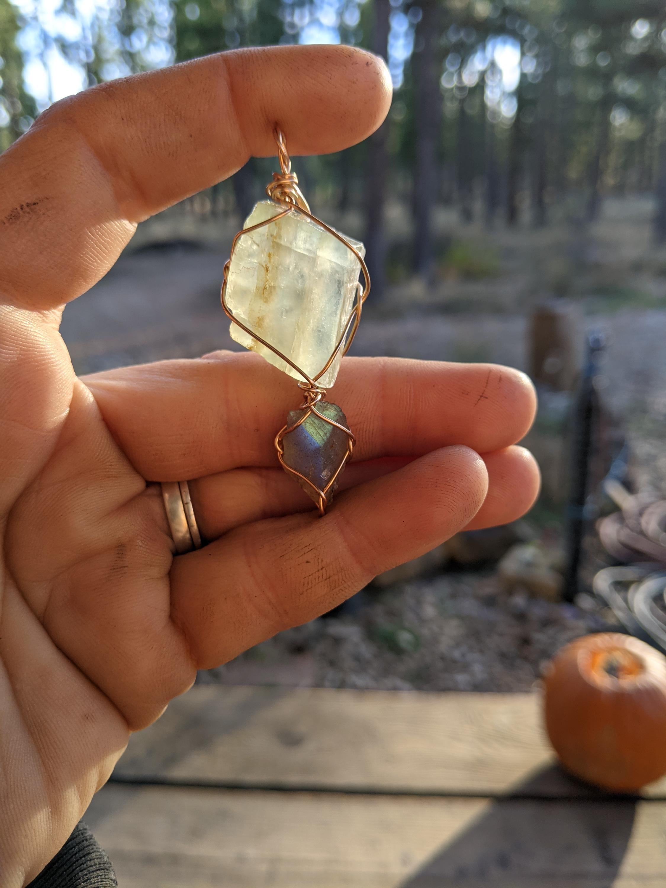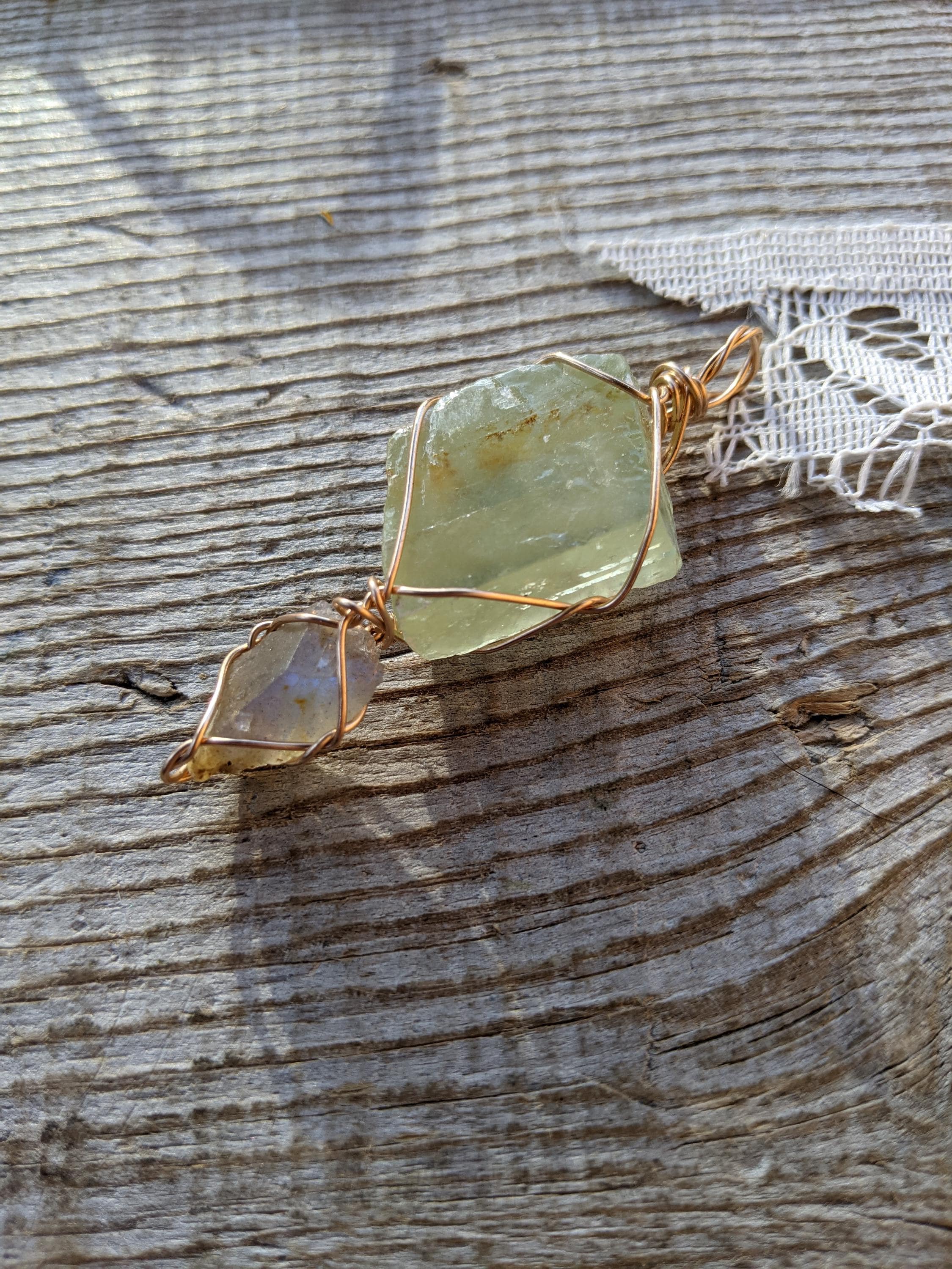 Emerald green calcite and blue labradorite crystal pendant, calcite pendant, labradorite pendant, labradorite necklace, calcite necklace, ne