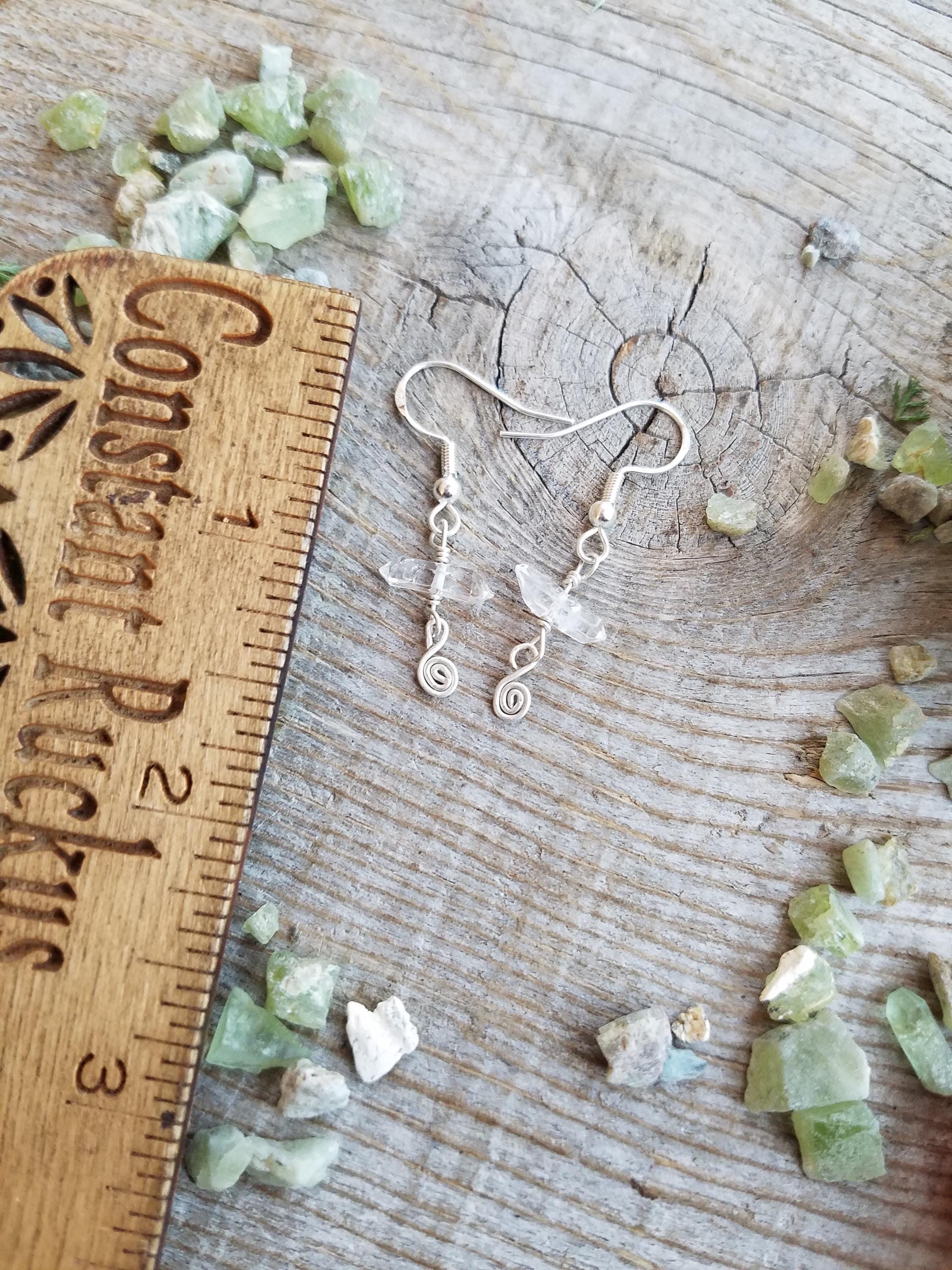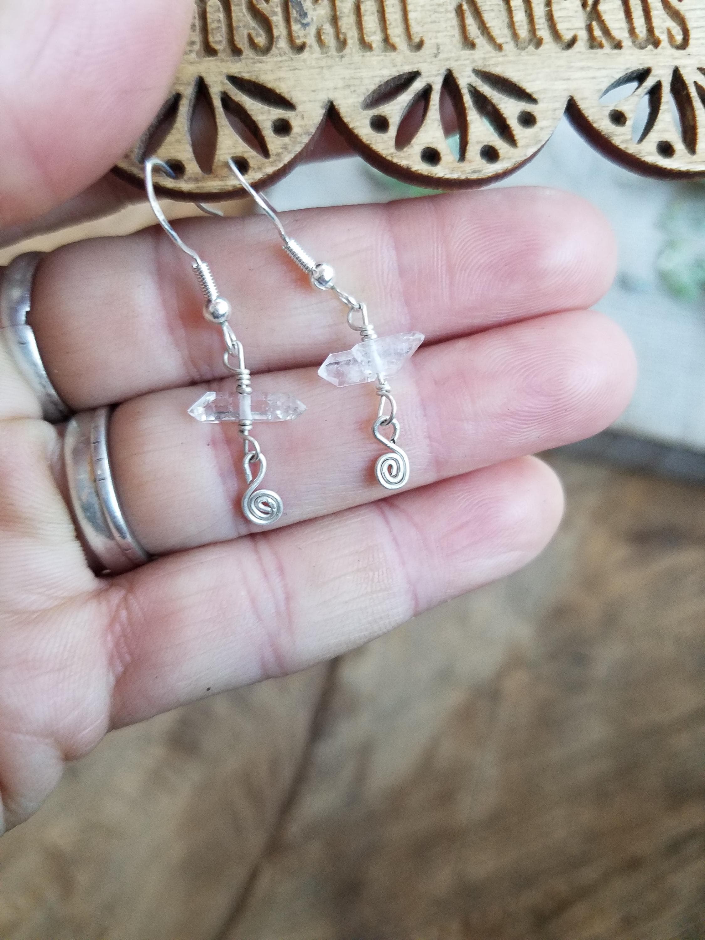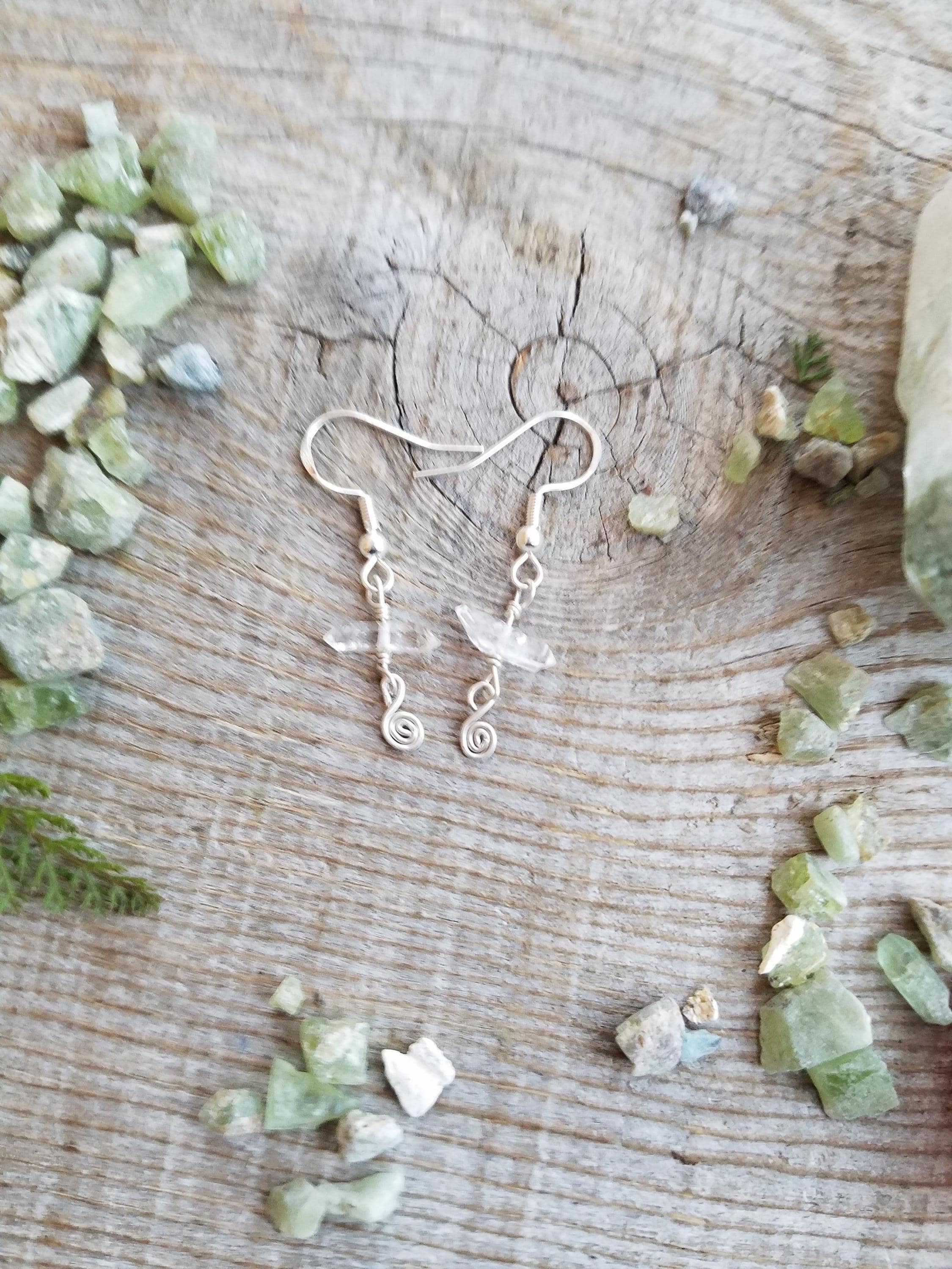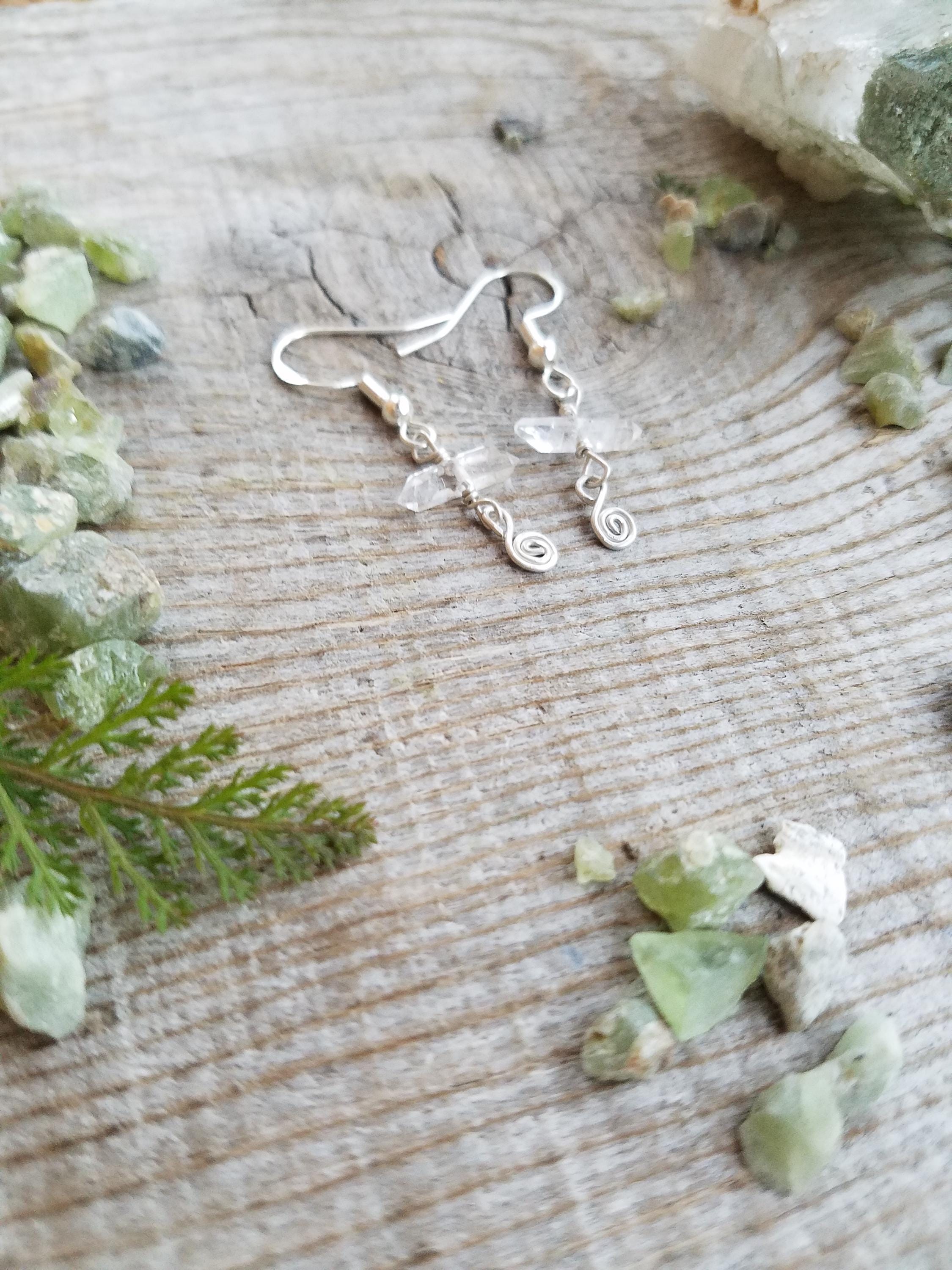 Mini Herkimer diamond crystals swirl earrings, natural herkimer diamond earrings, silver swirl earrings, silver herkimer and swirl earrings,