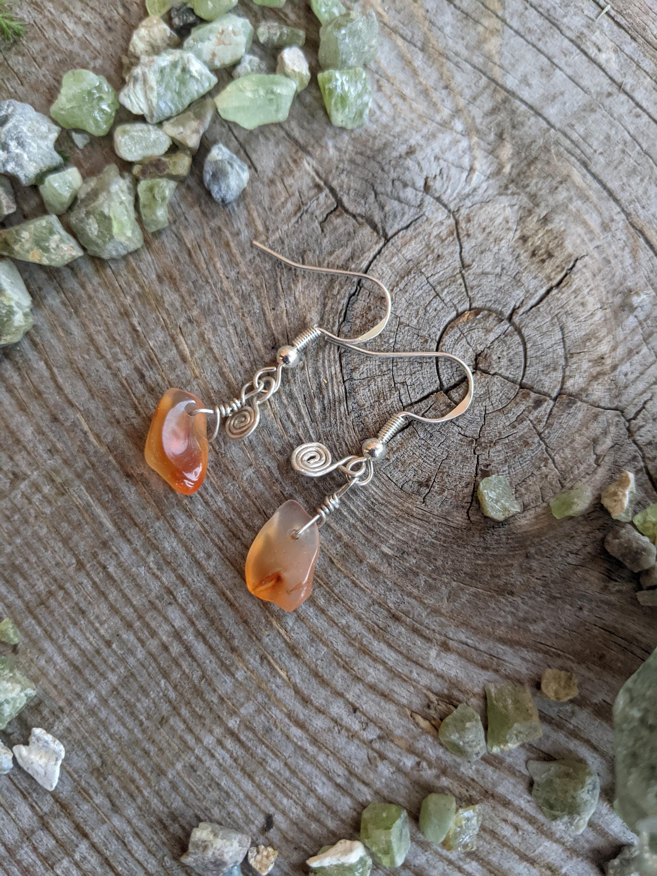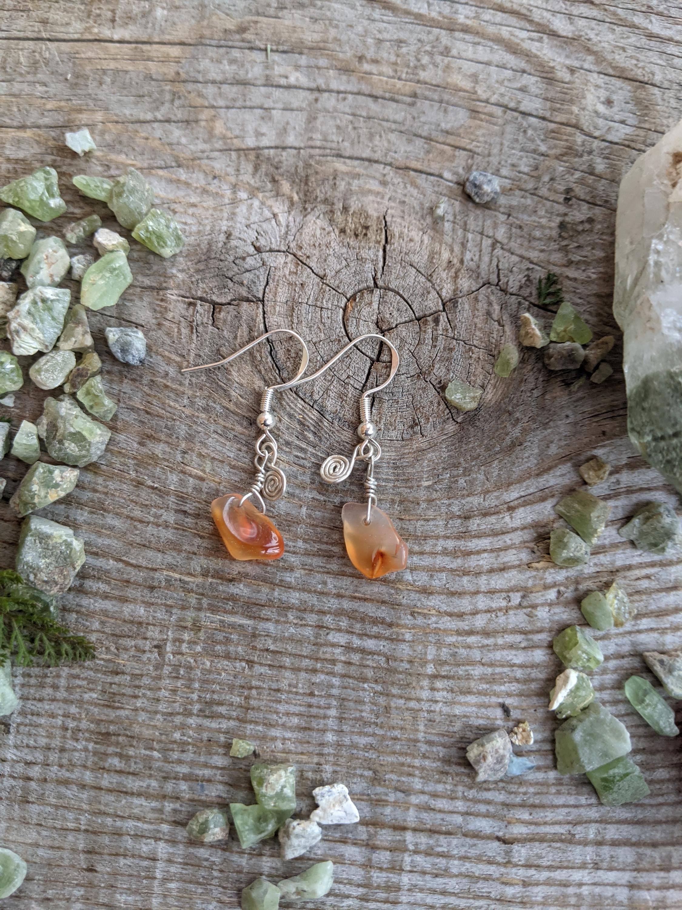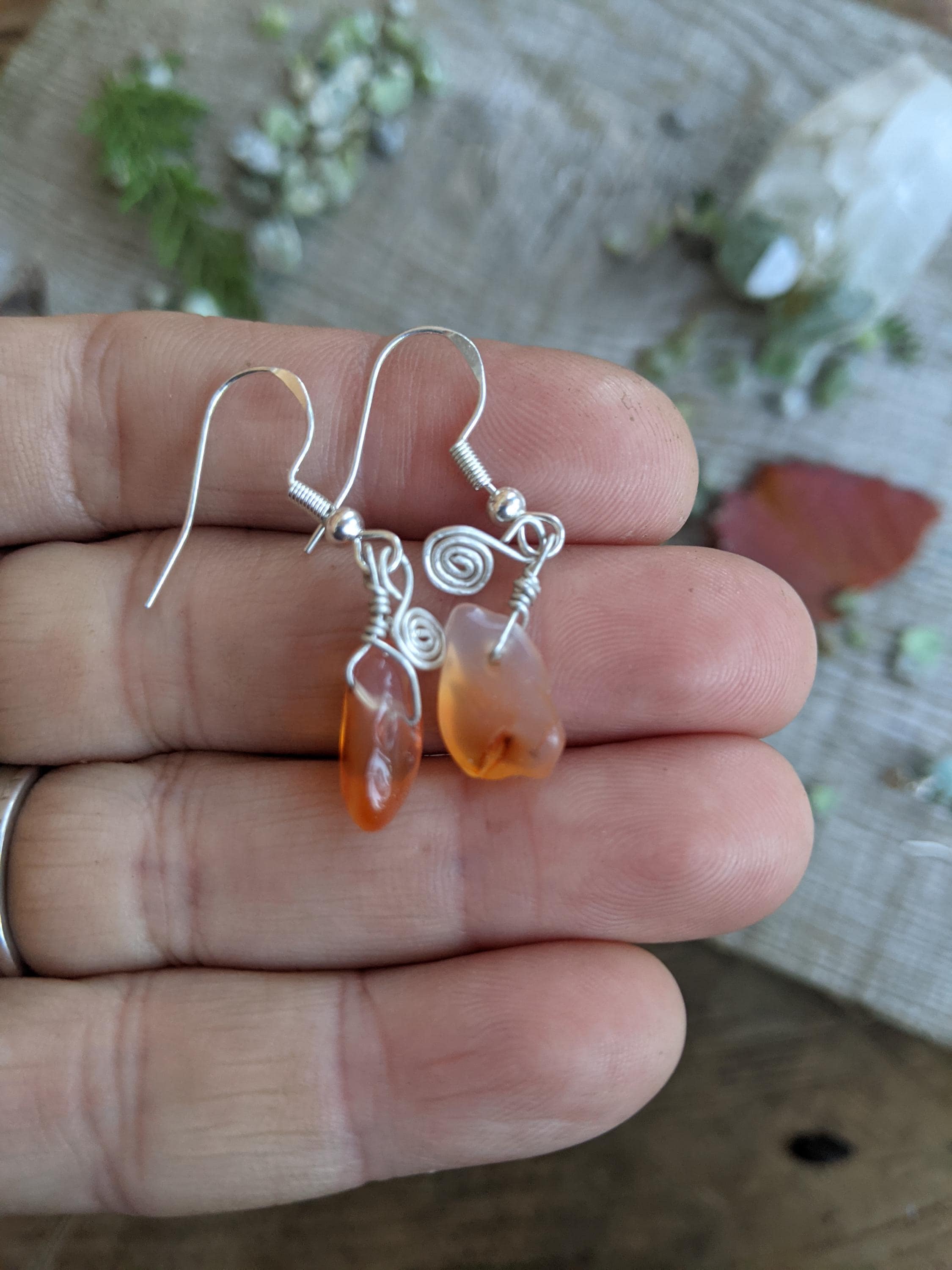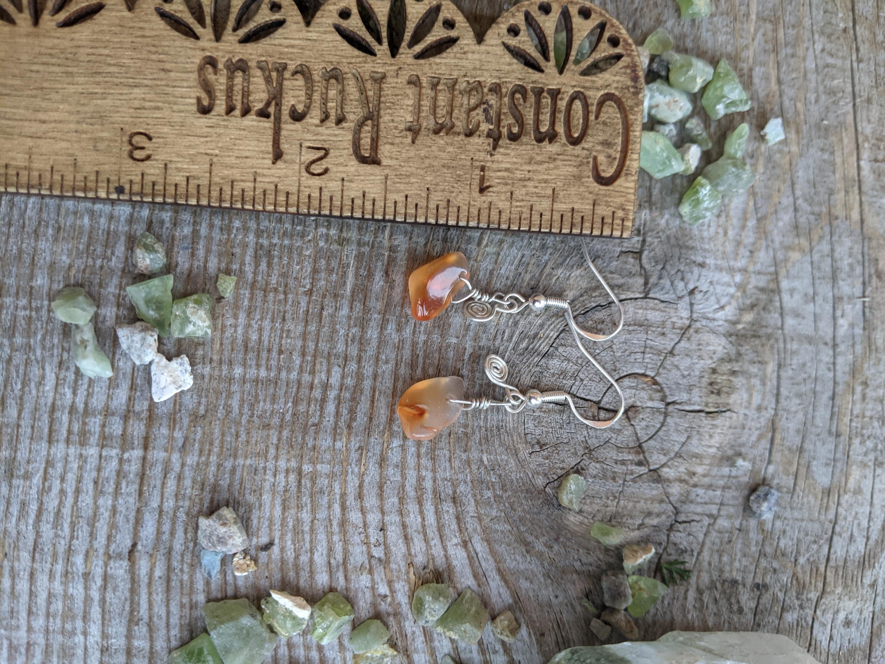 Polished carnelian dainty crystal earrings, natural orange carnelian agate earrings, carnelian quartz earrings, natural carnelian earrings