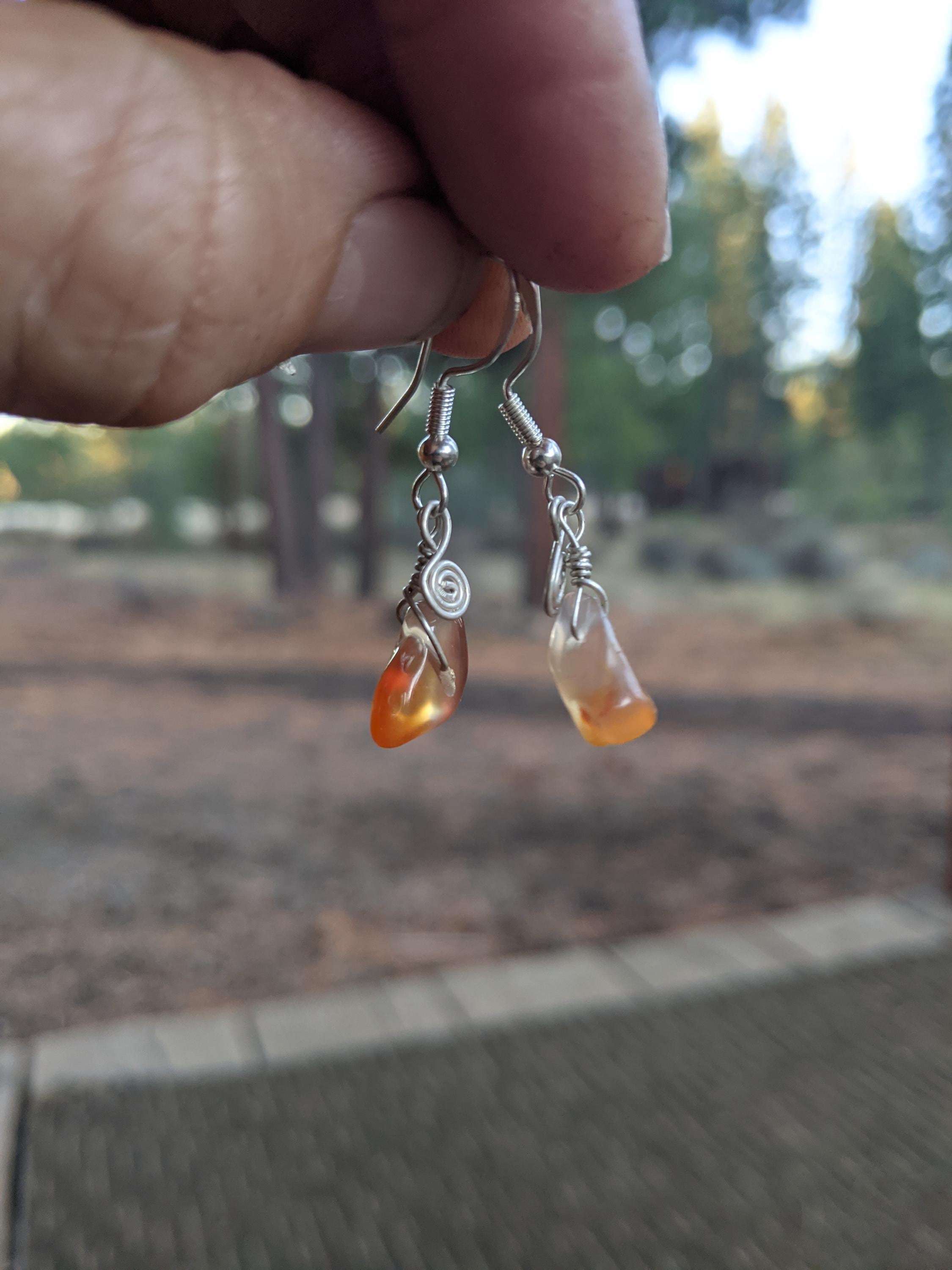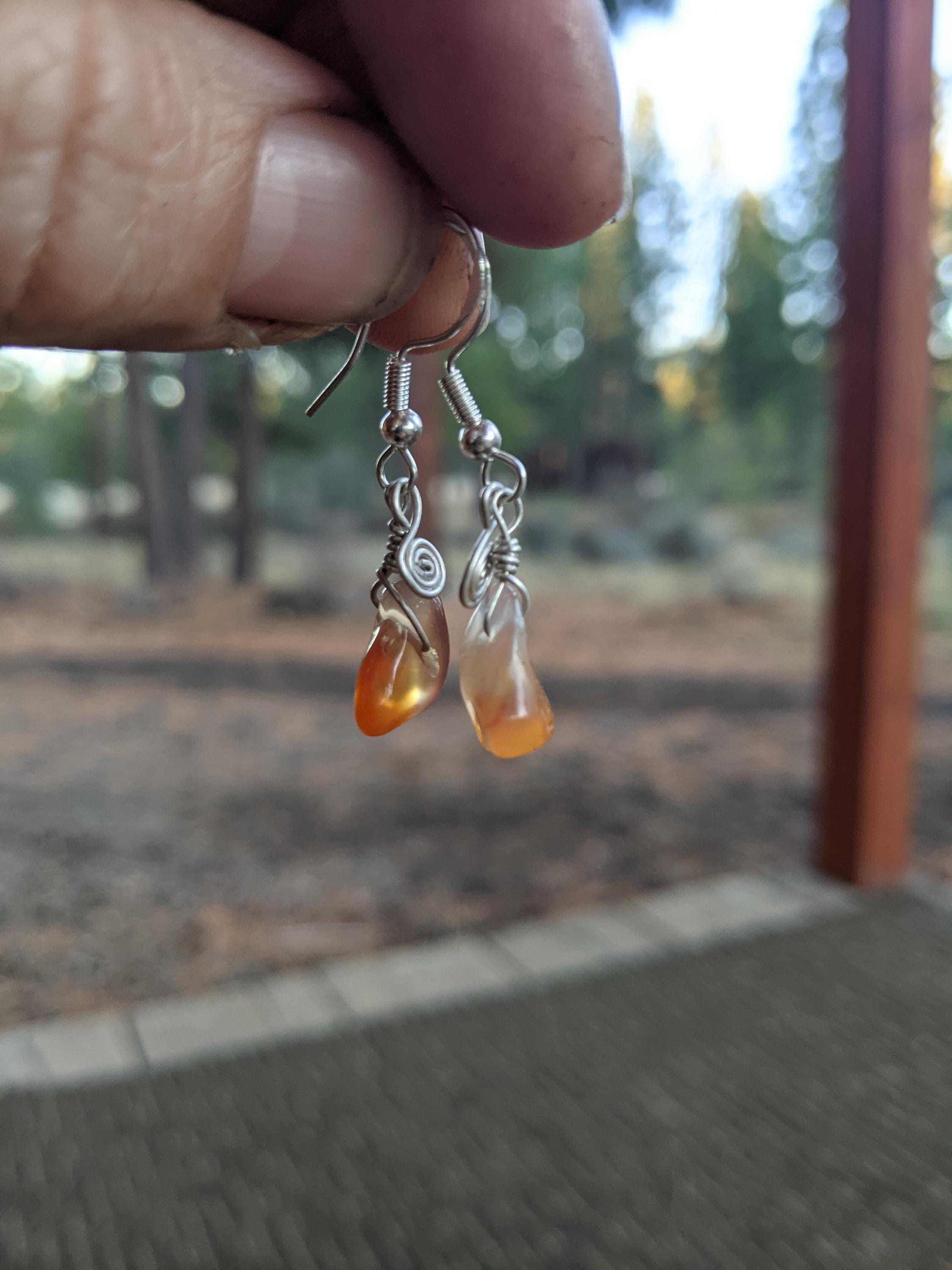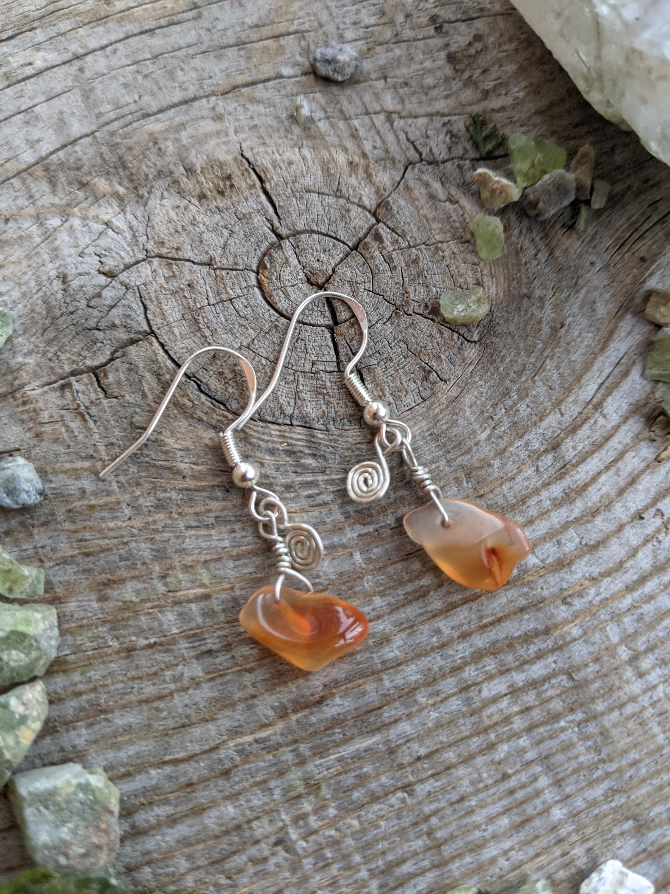 little sterling silver swirlys that i made decorate this pretty carnelian agate pair.
