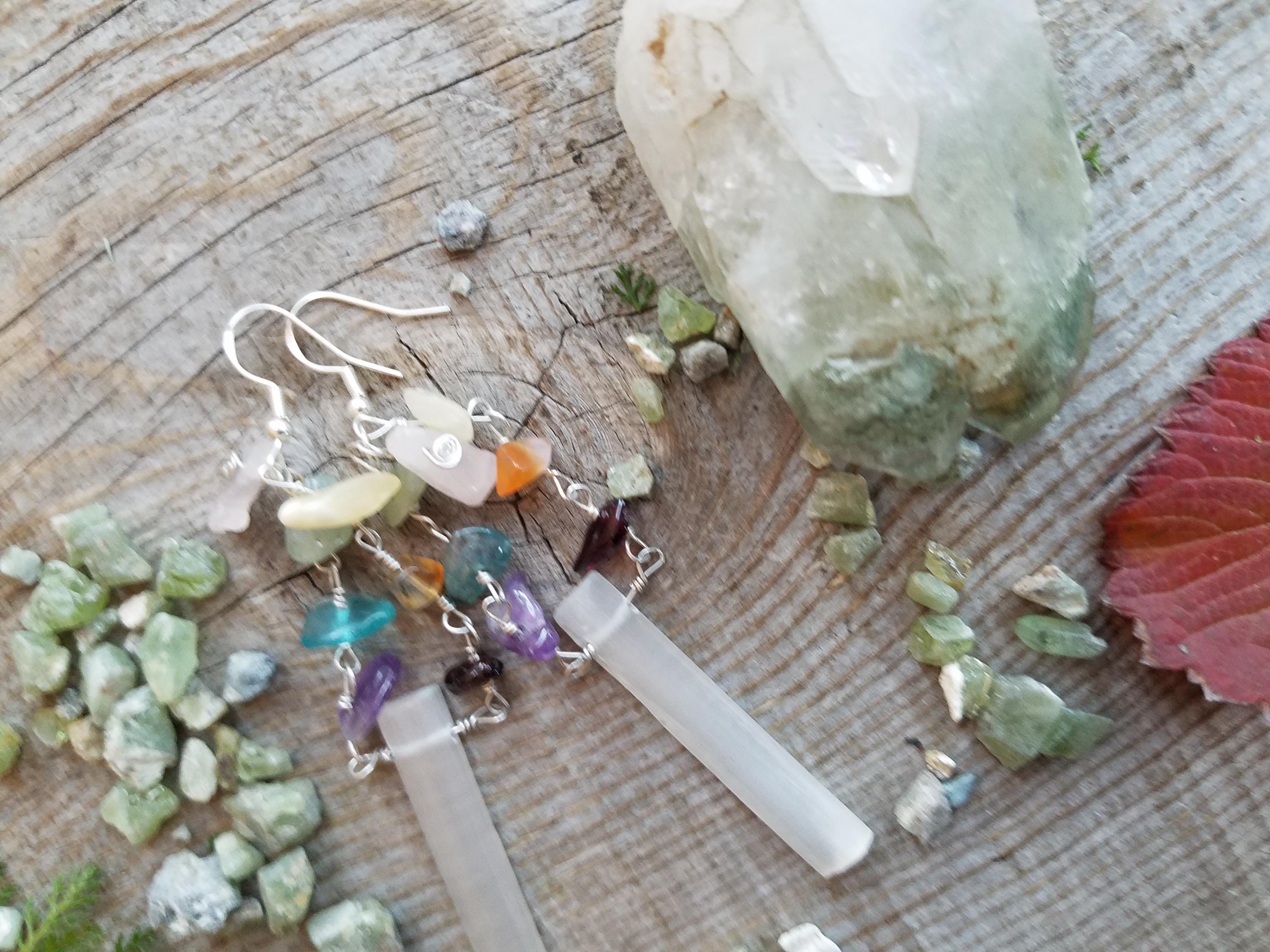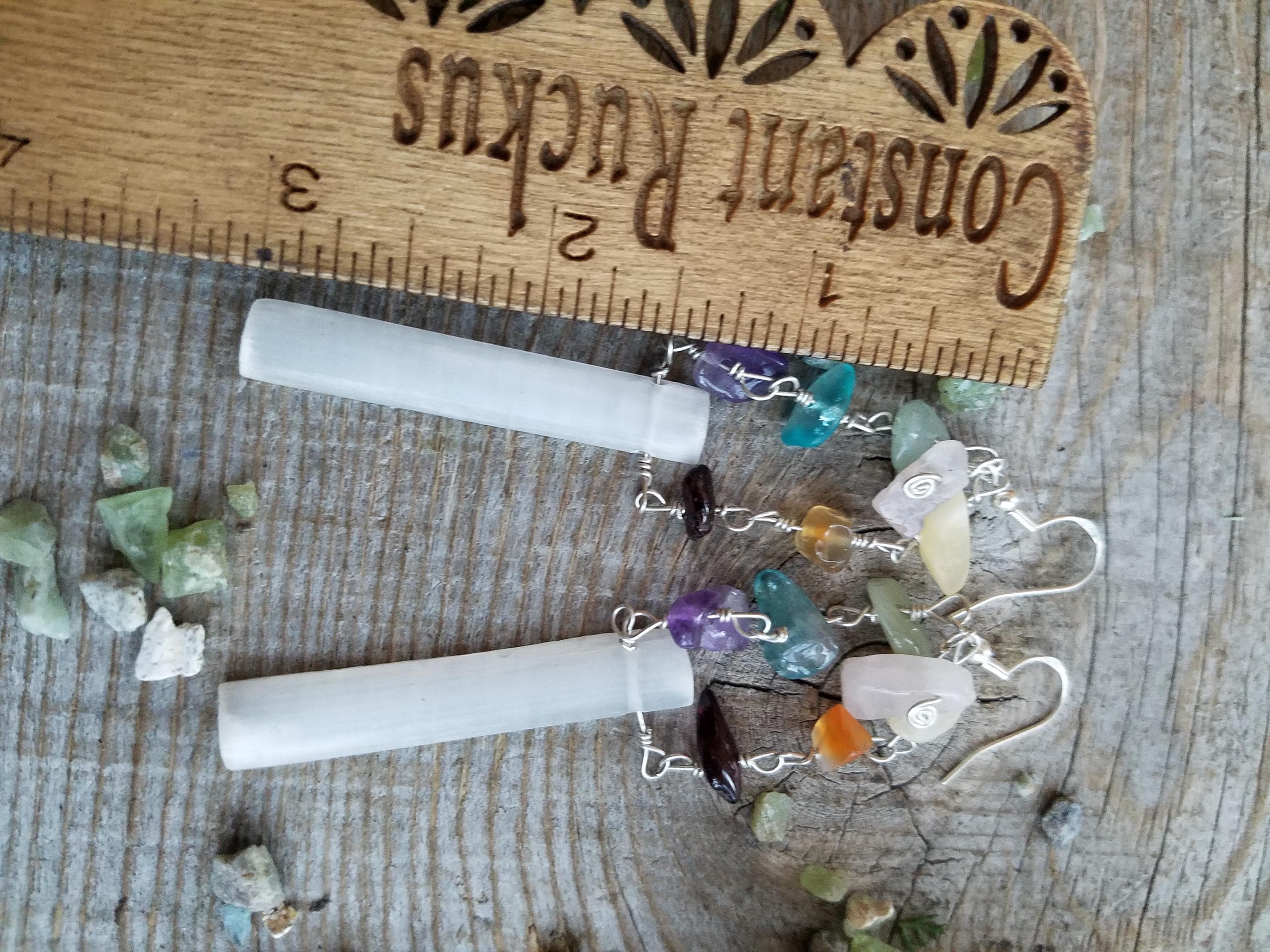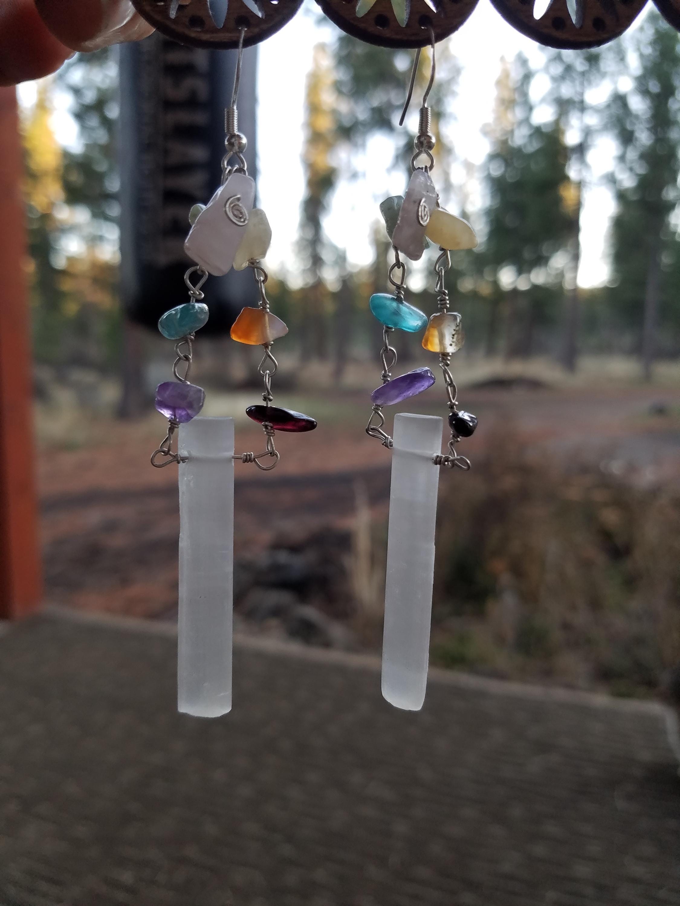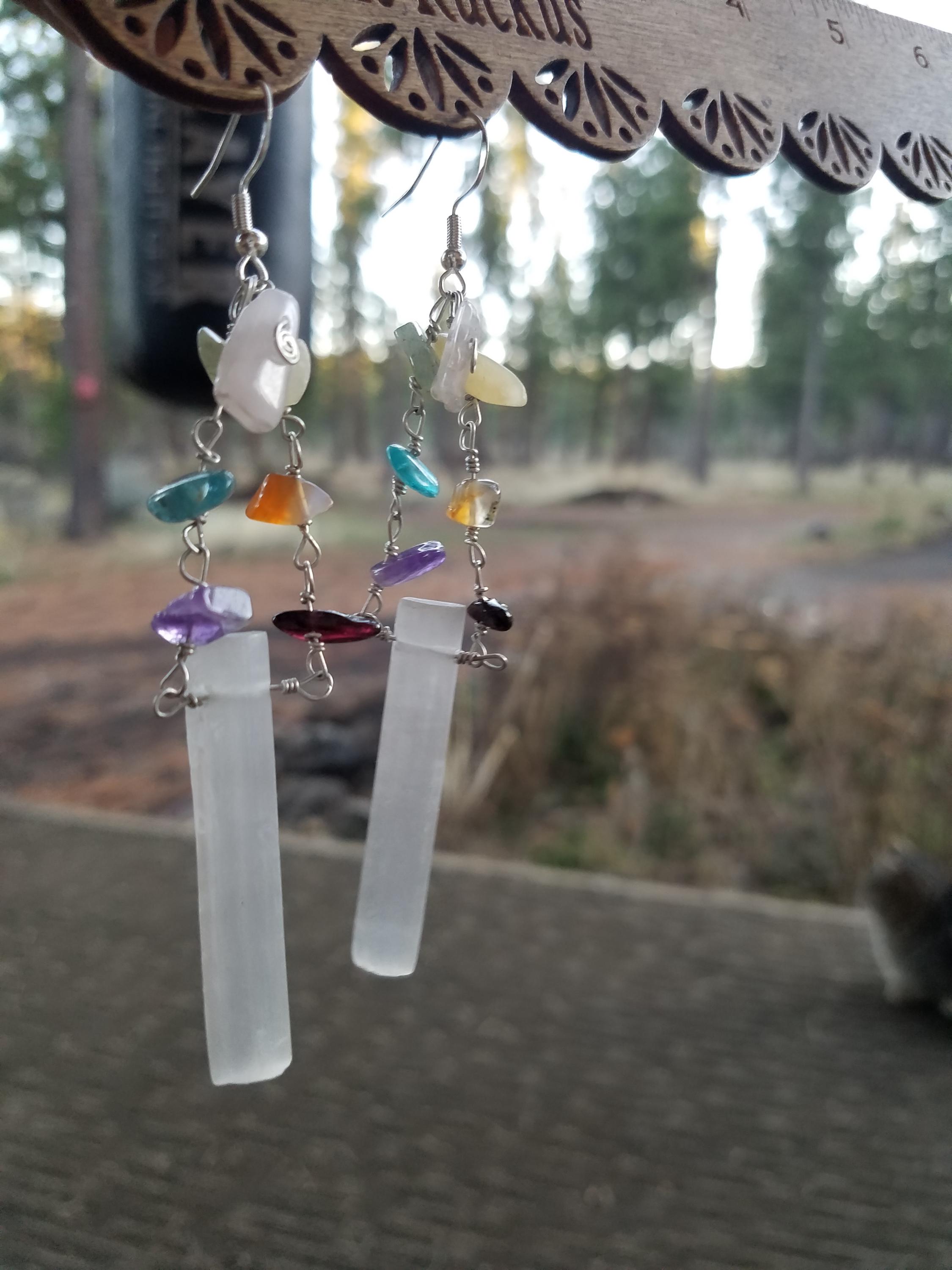Rainbow Selenite earrings, natural selenite crystal earrings, chakra earrings, rainbow chakra earrings, natural selenite earrings, natural