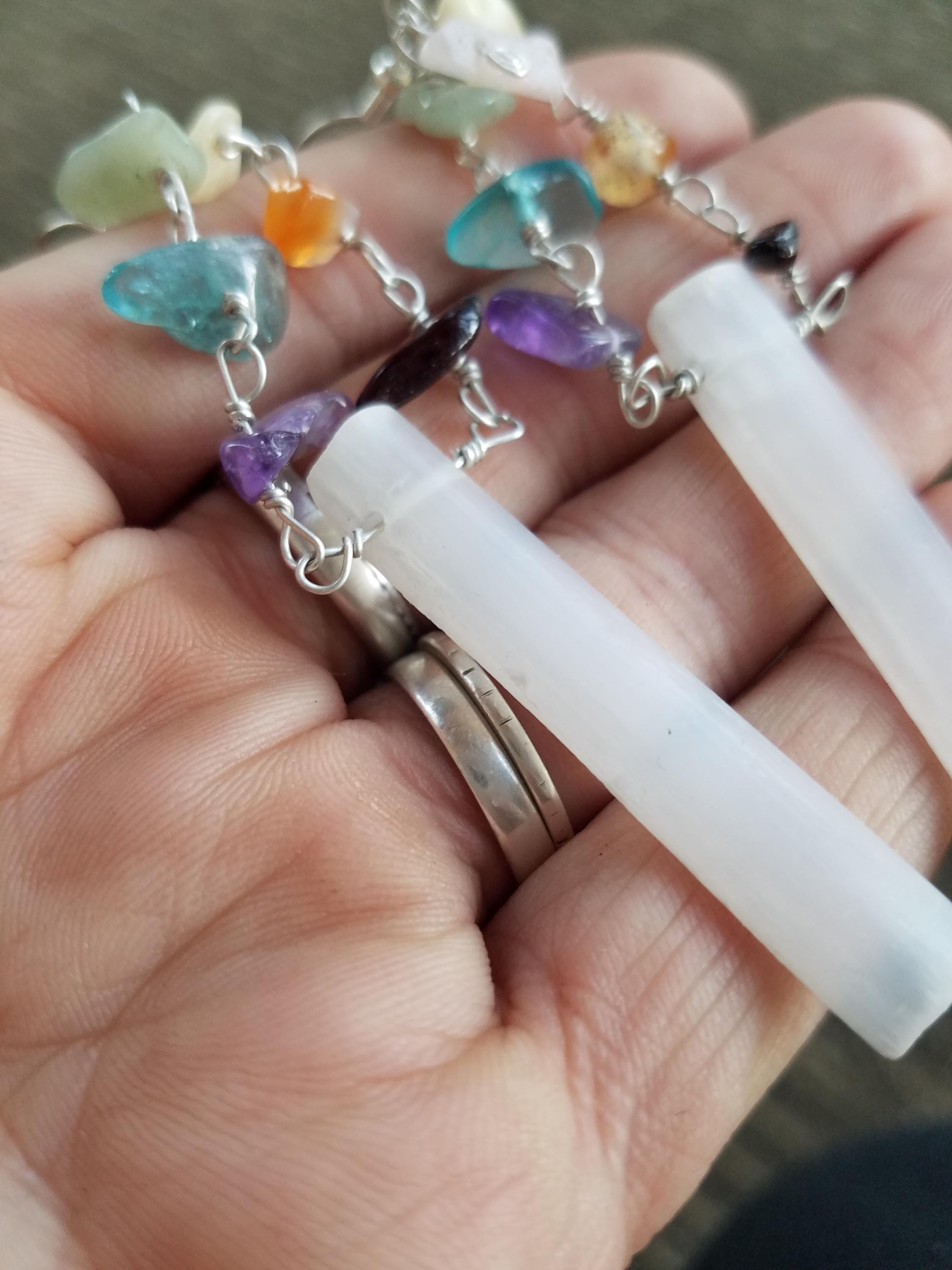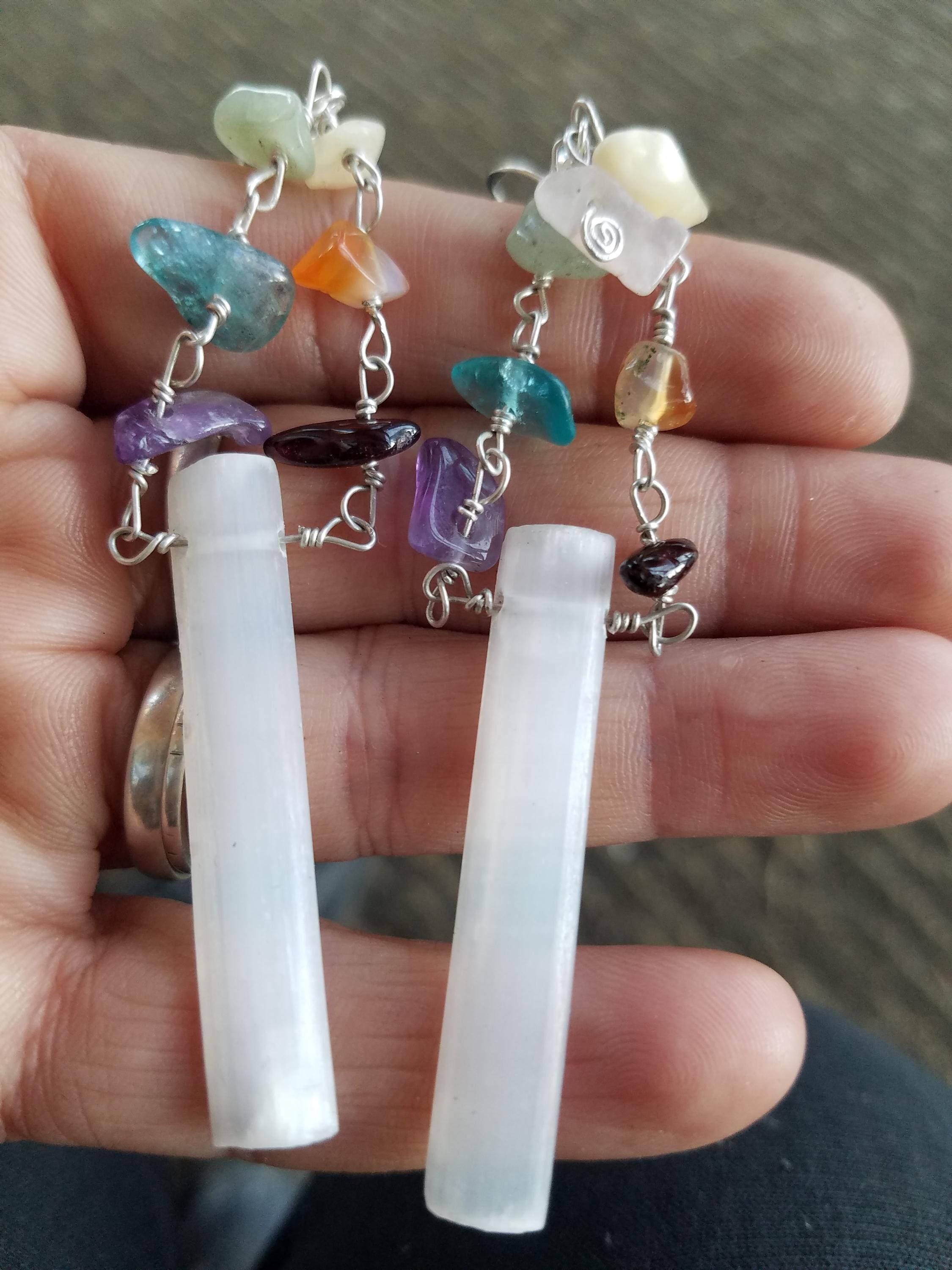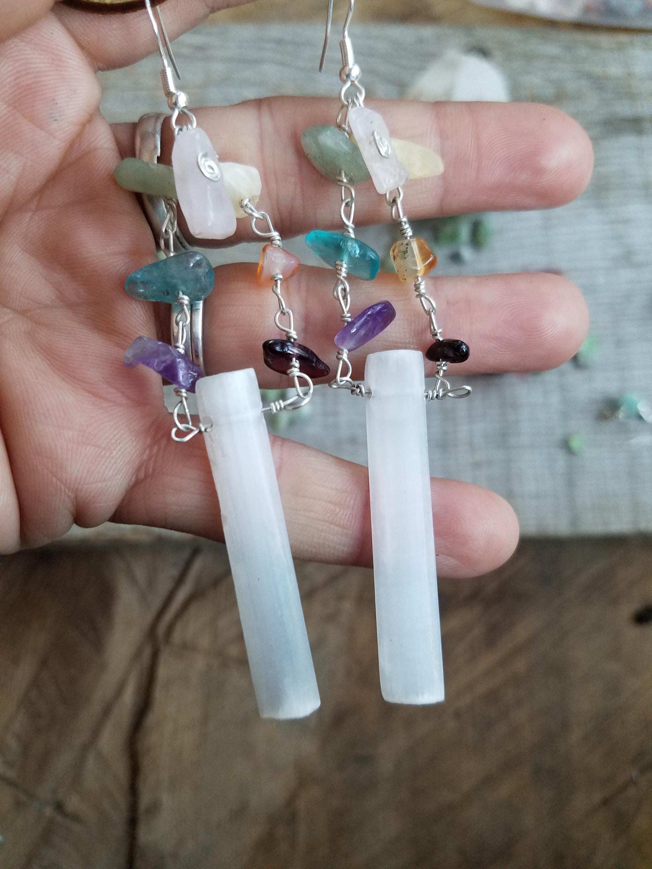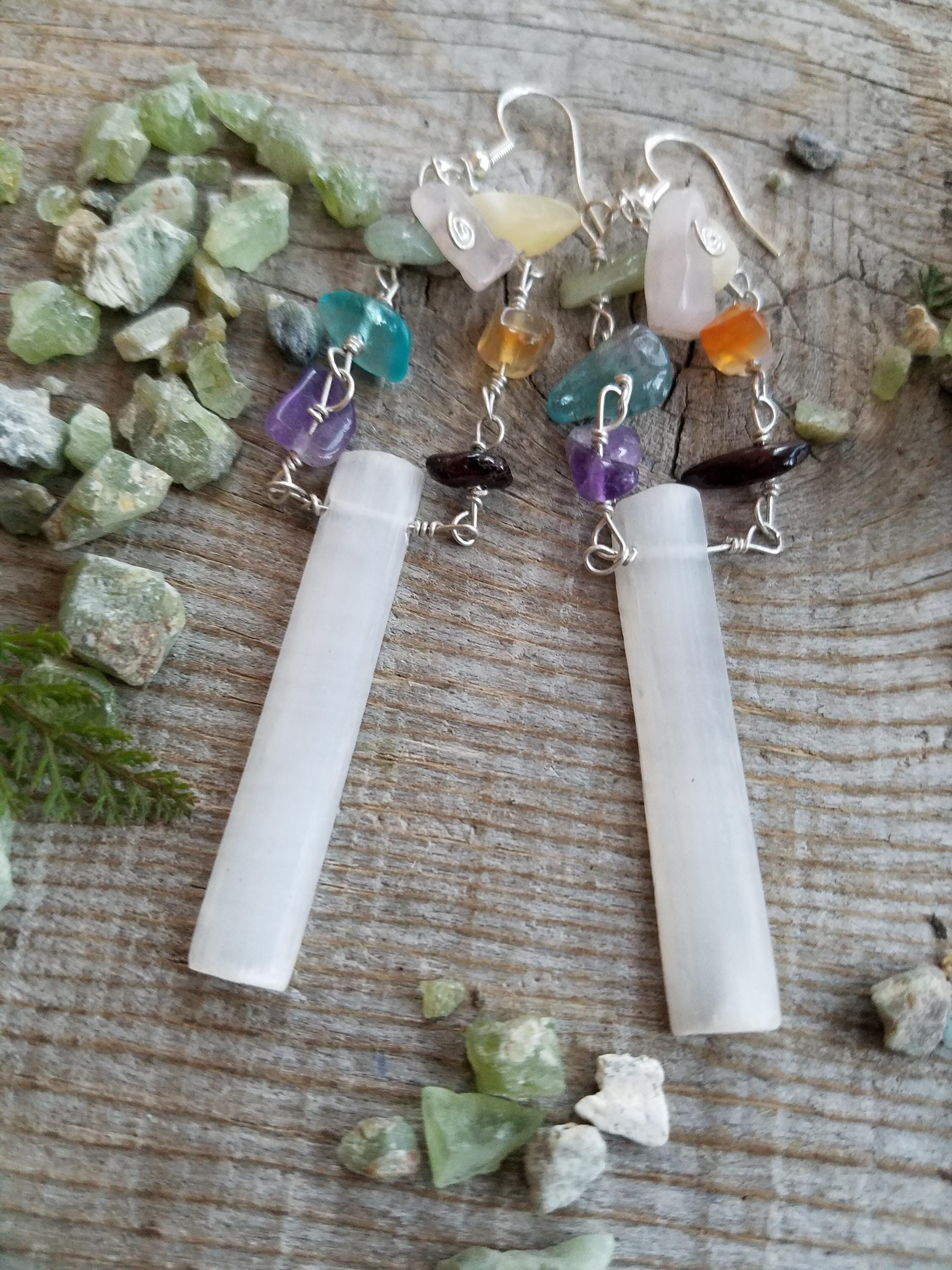 Rainbow Selenite earrings, natural selenite crystal earrings, chakra earrings, rainbow chakra earrings, natural selenite earrings, natural