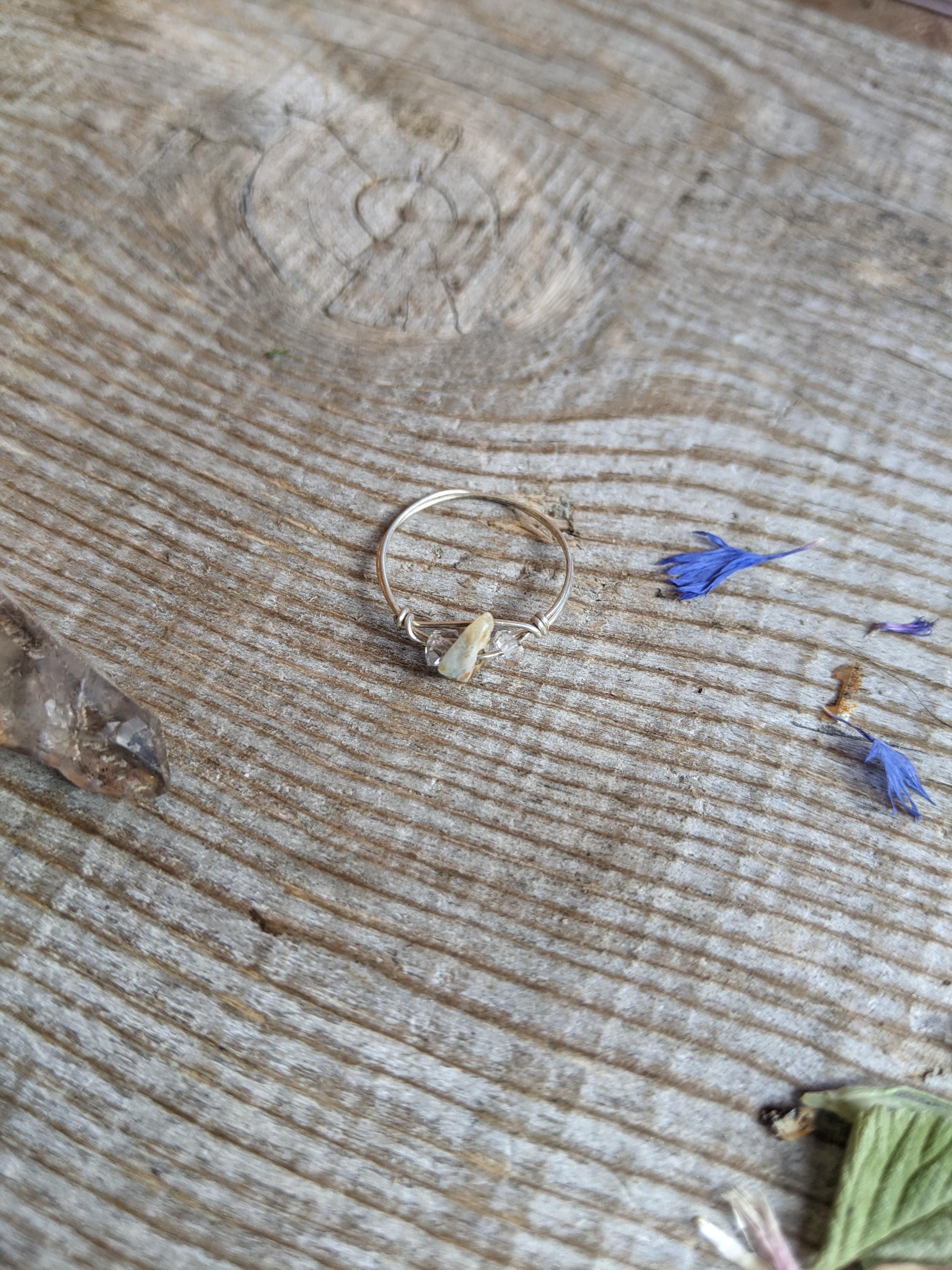 Herkimer, opal, herkimer crystal ring in sterling silver, silver herkimer ring, silver opal ring, natural raw opal crystal, natural herkimer