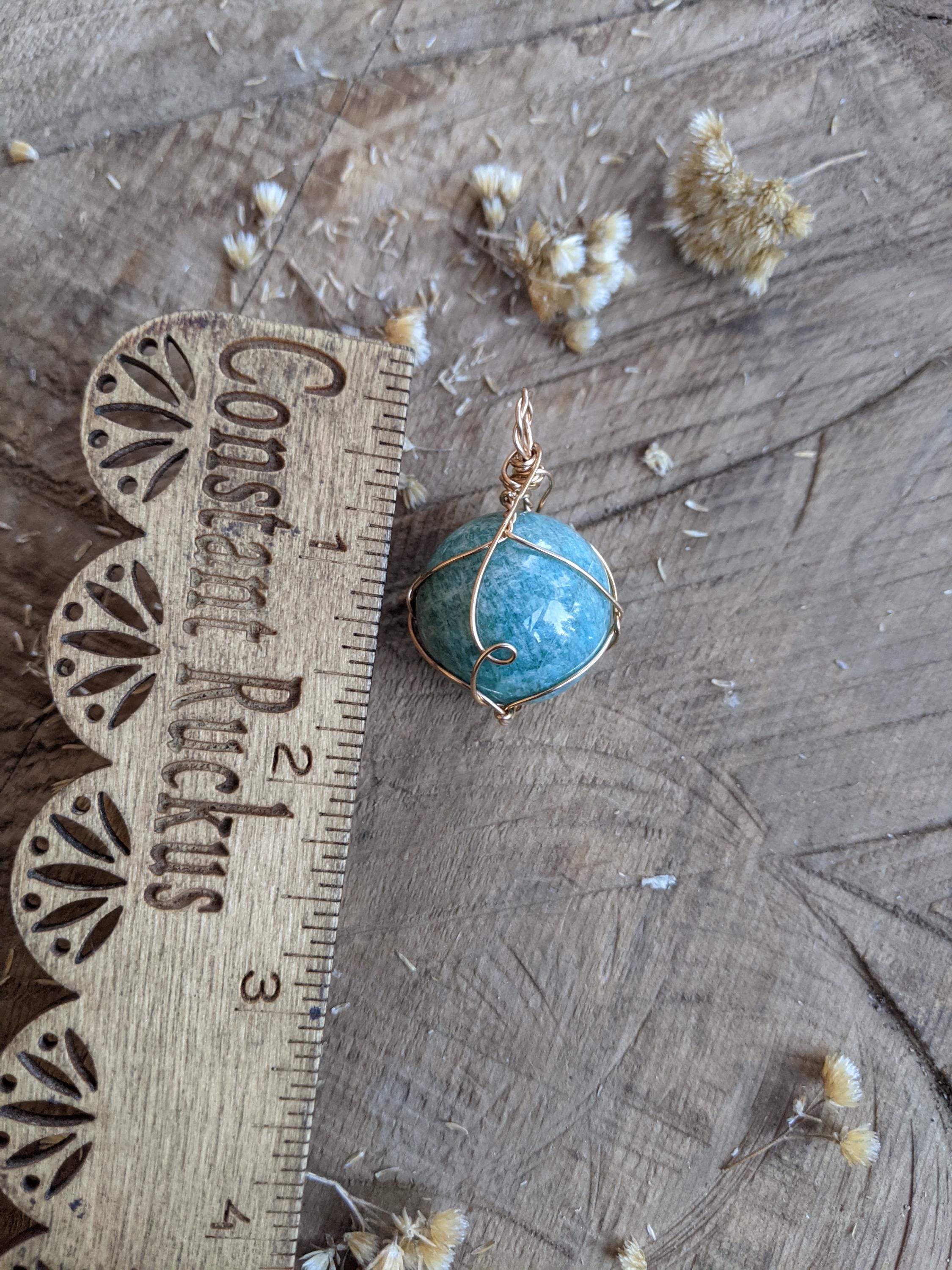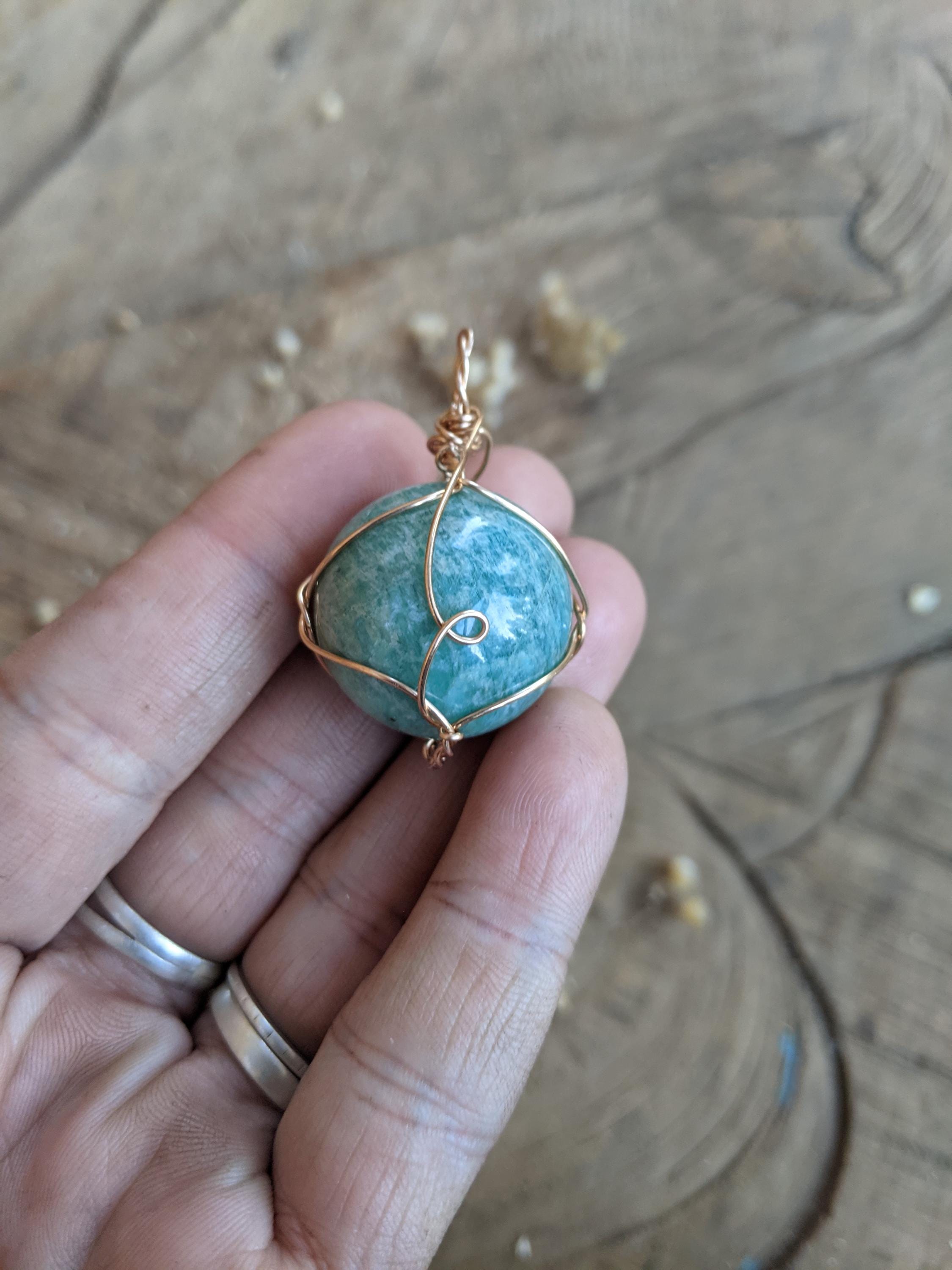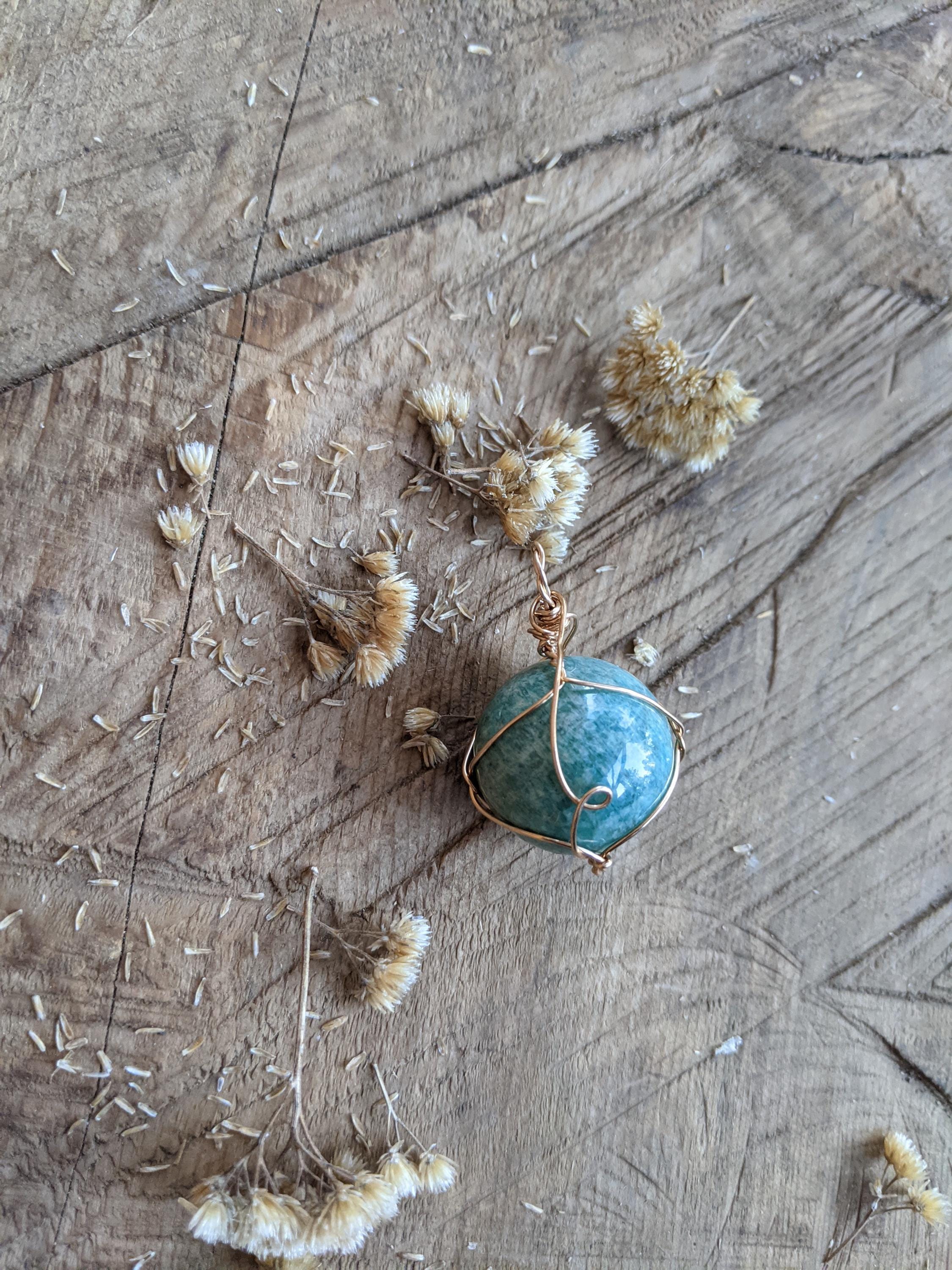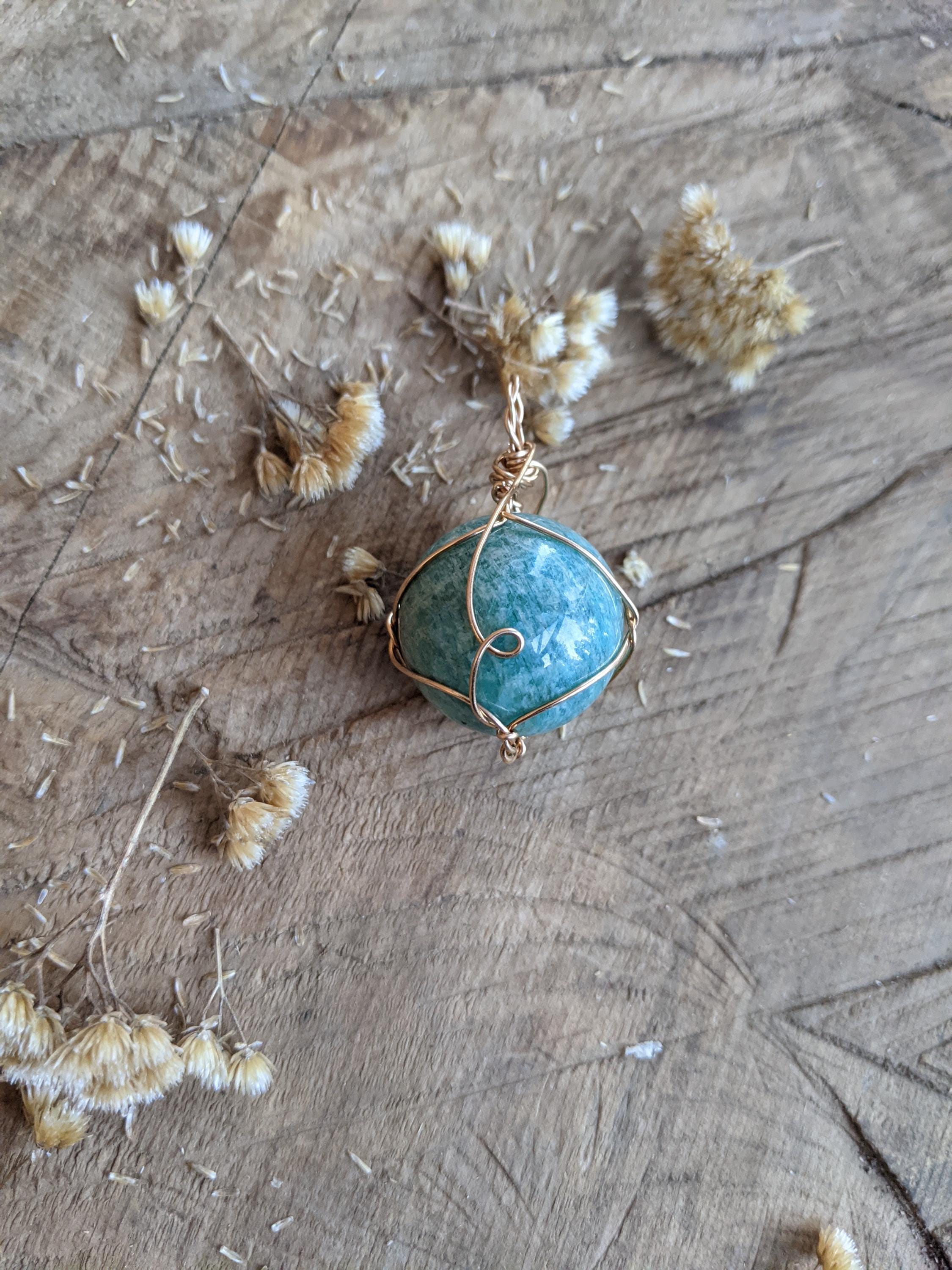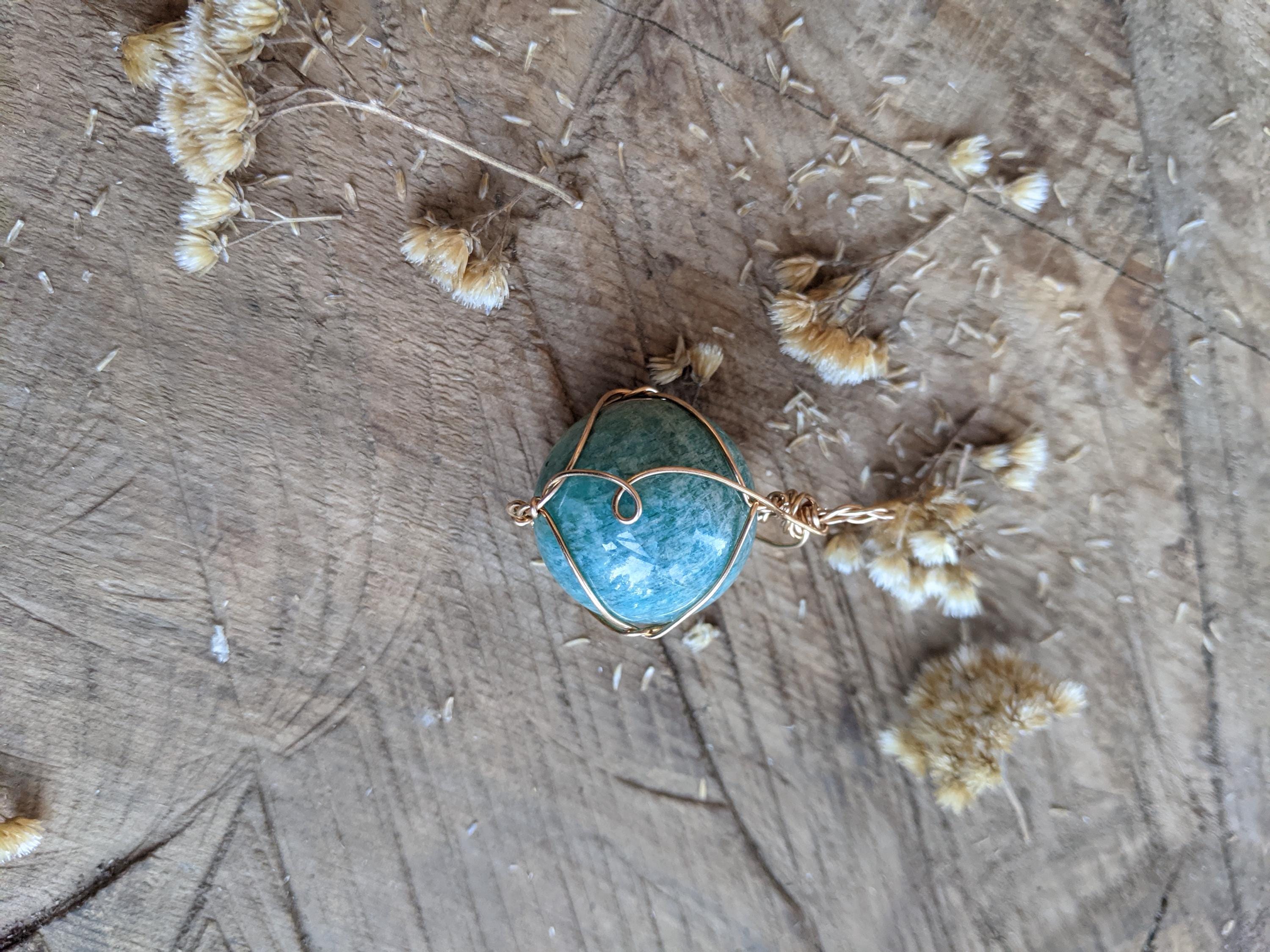 Amazonite Sphere pendant, natural blue amazonite crystal necklace, bronze gold amazonite pendant, amazonite sphere necklace, sphere crystal