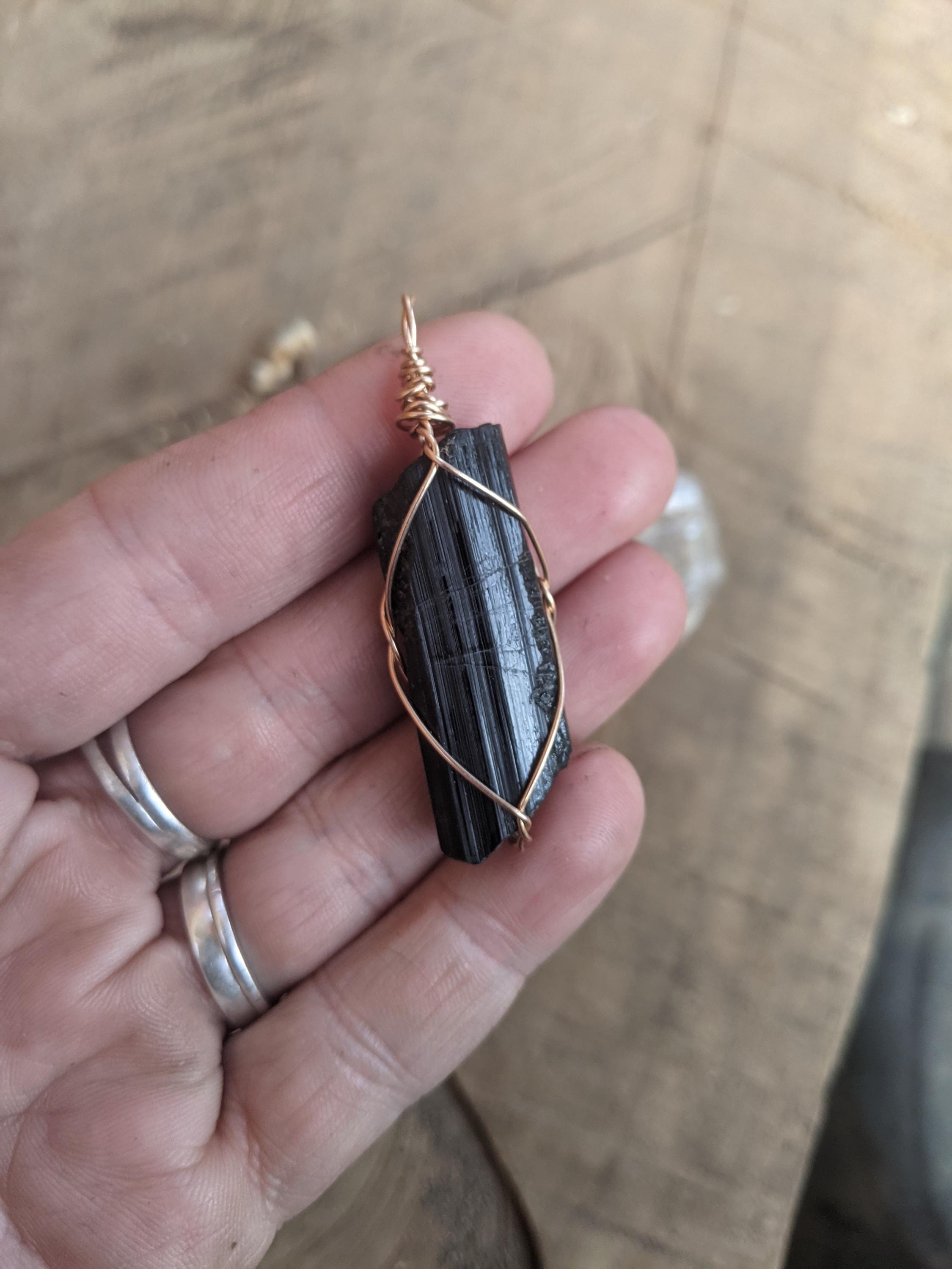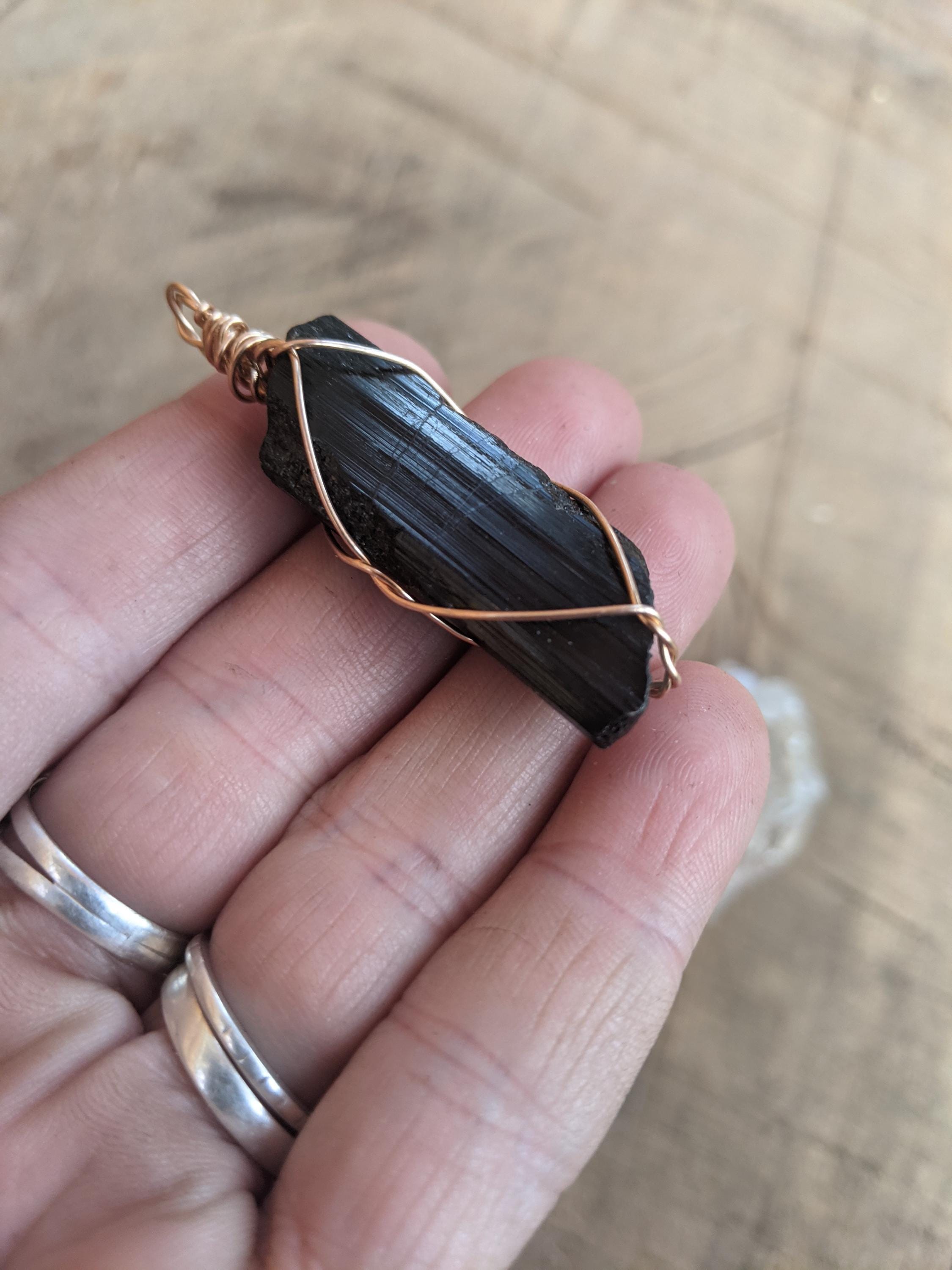 i am thrilled to now offer pendants wrapped in bronze gold wire ! bronze is a fantastic alternative to gold that will never "fade" in color (although tarnish/darken is natural over time or when exposed to water) and is extremely affordable!