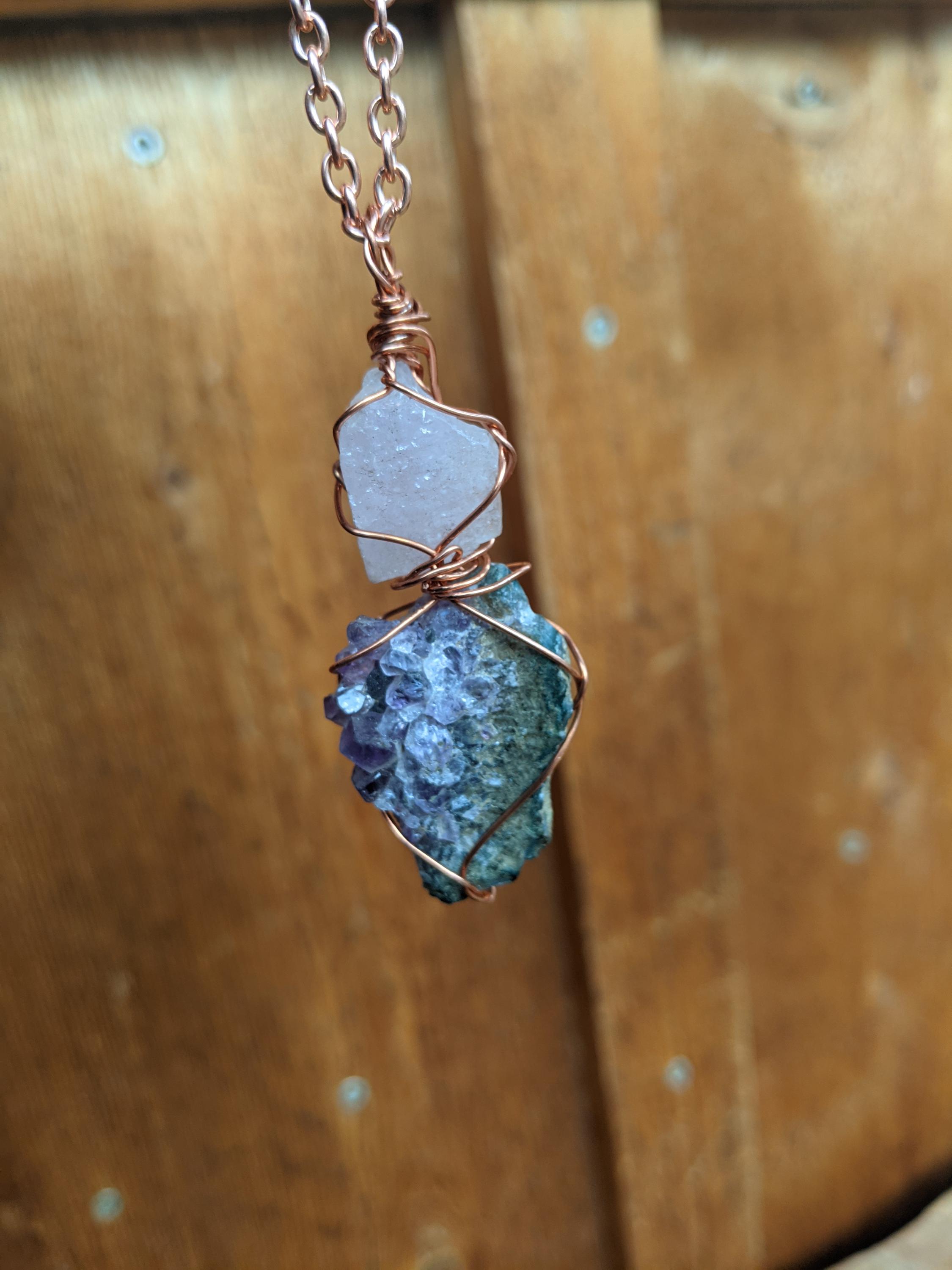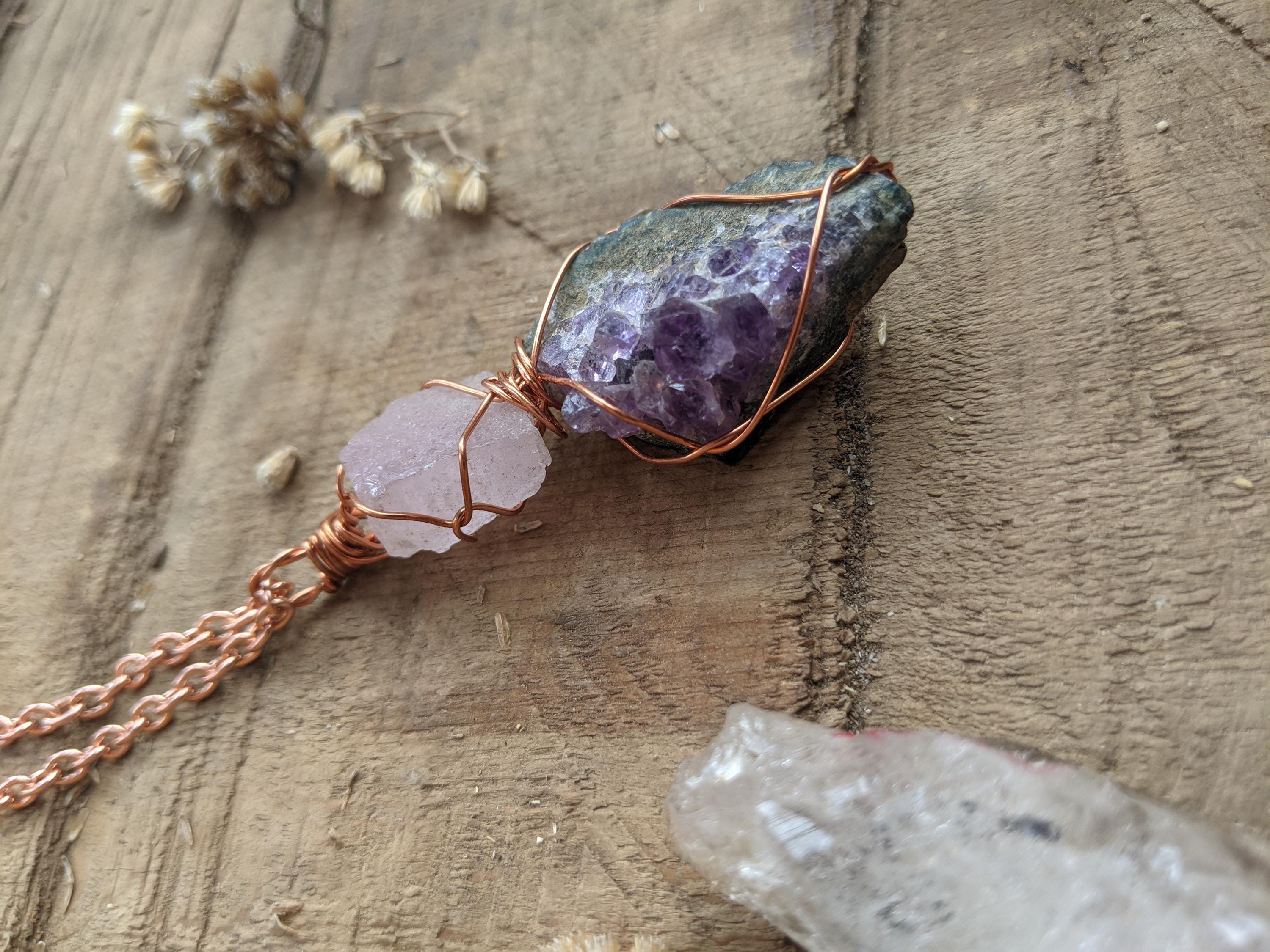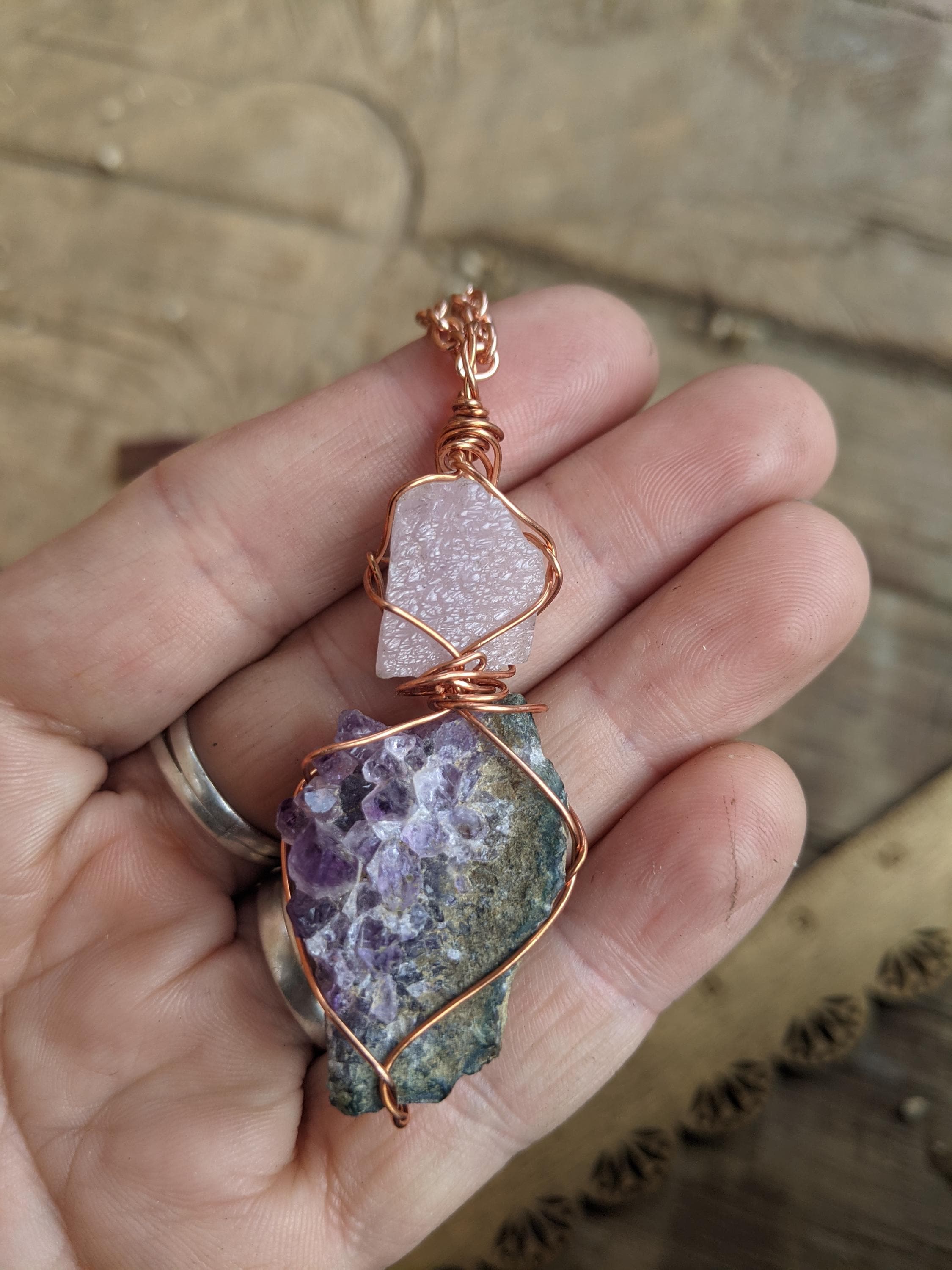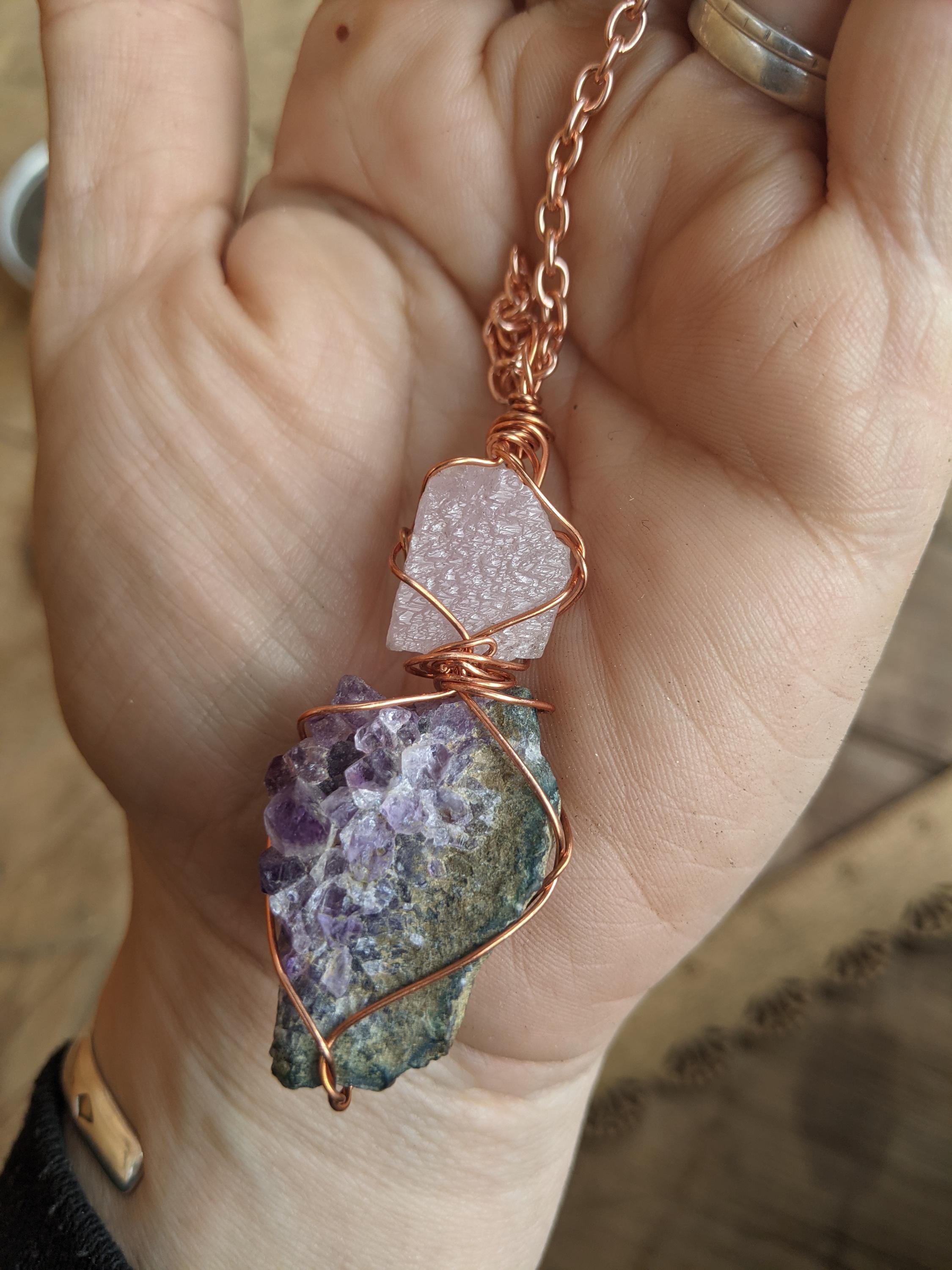 This pendant is wrapped in pure copper, one of a kind- you get the exact item in the photo!
