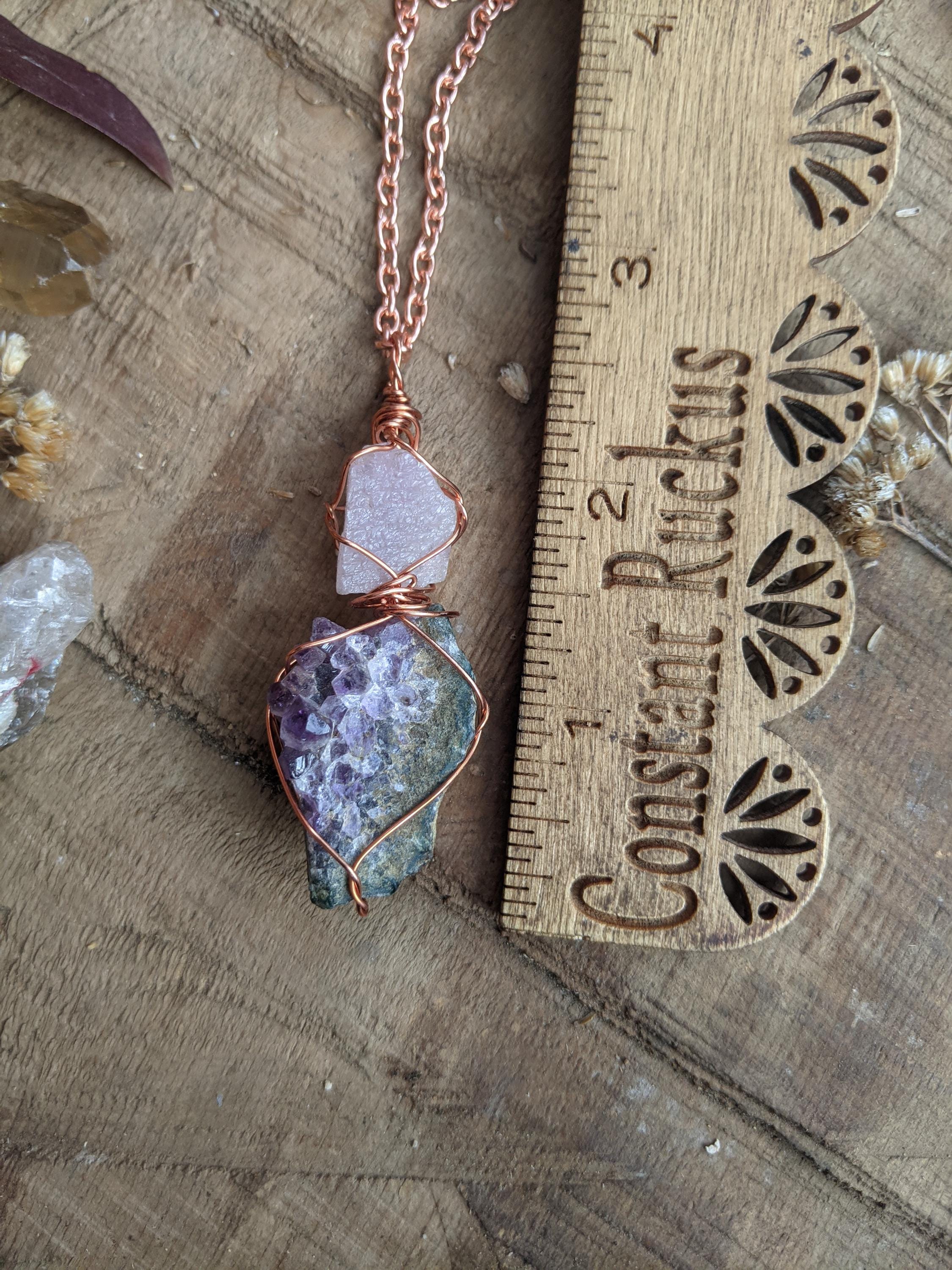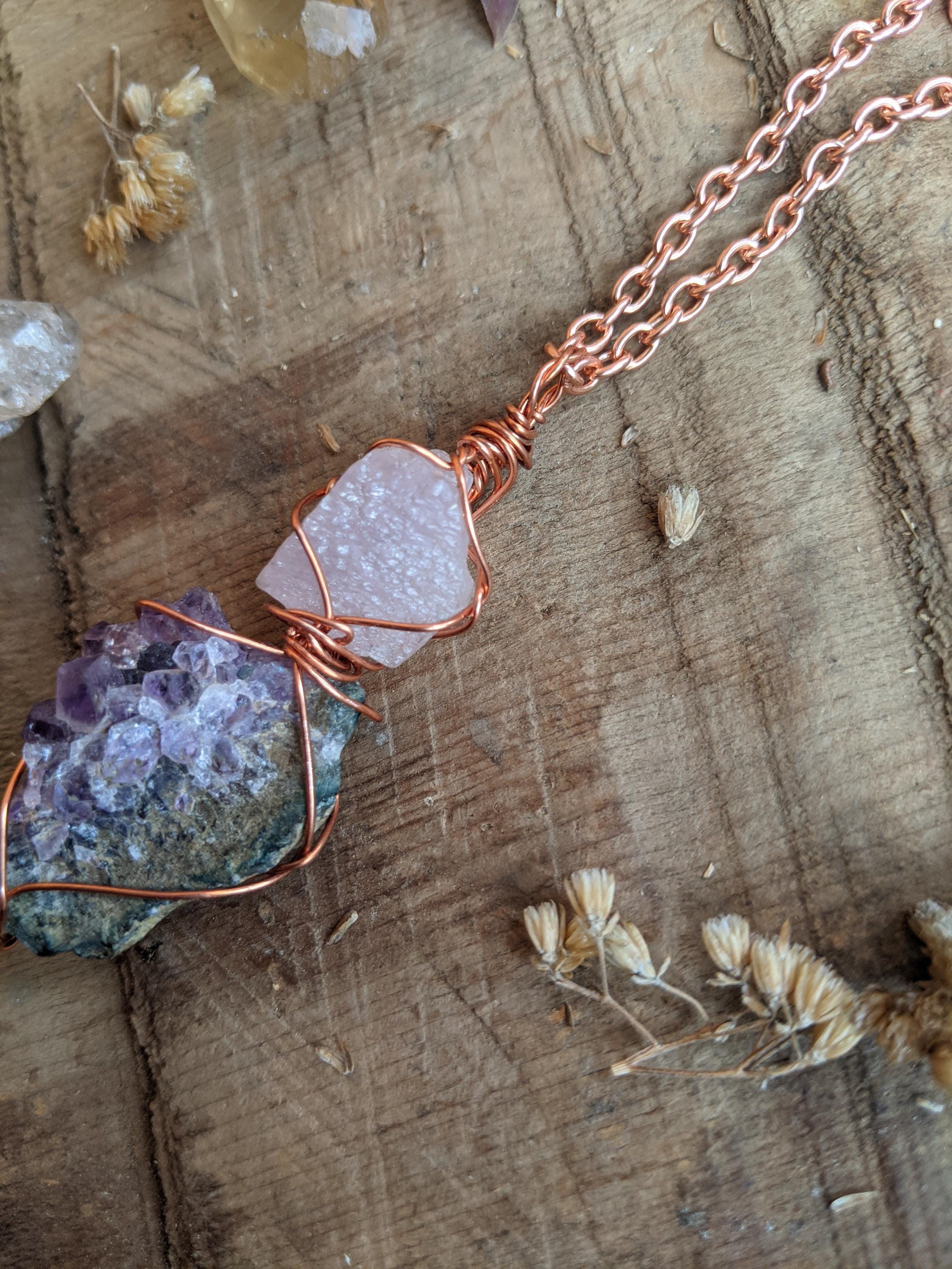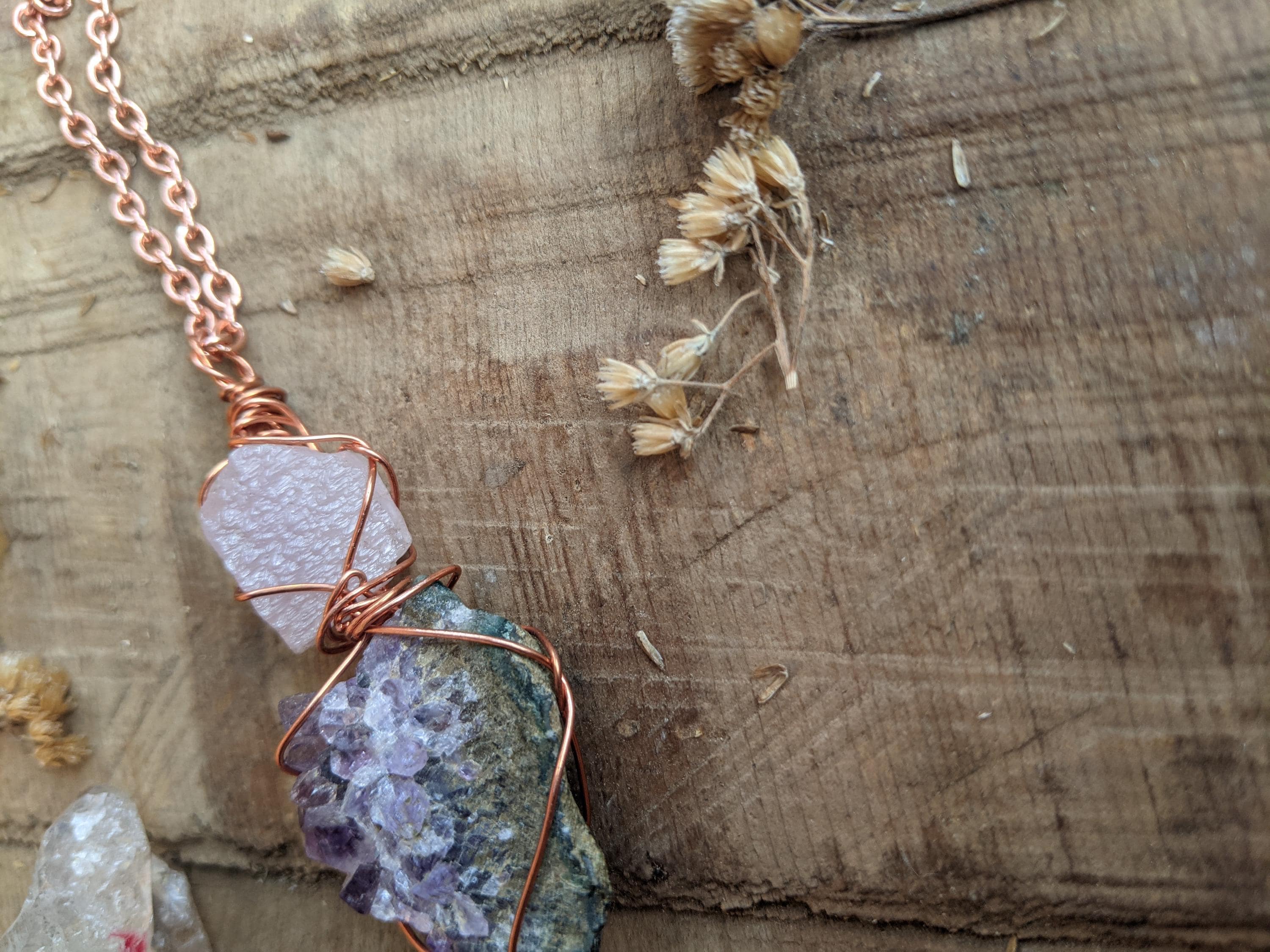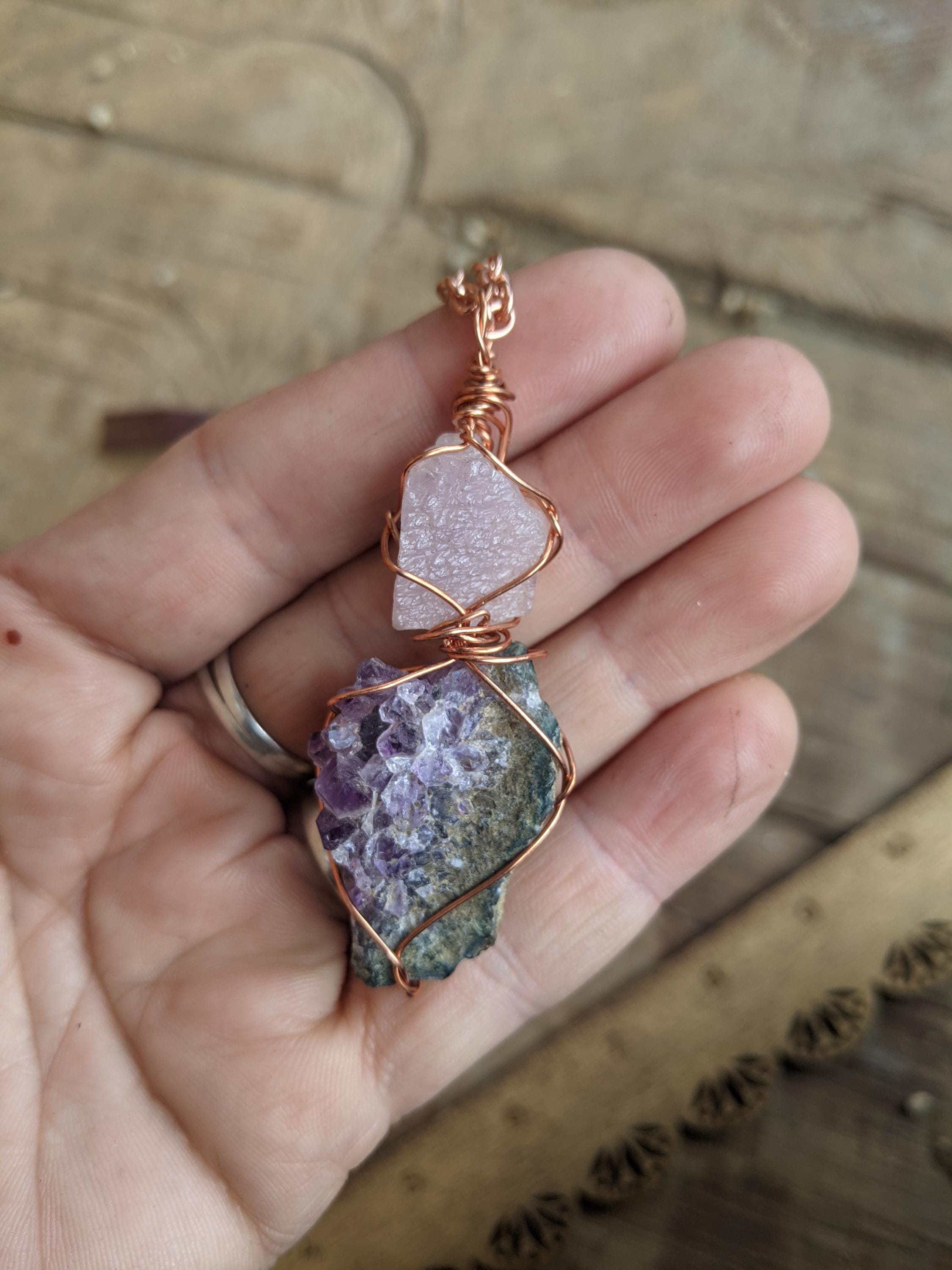 This pendant is wrapped in pure copper, one of a kind- you get the exact item in the photo!