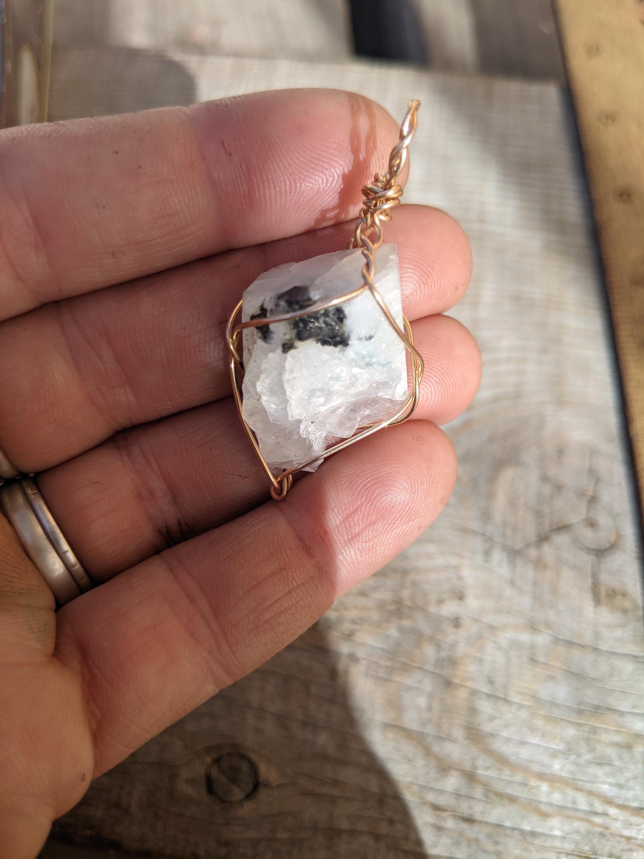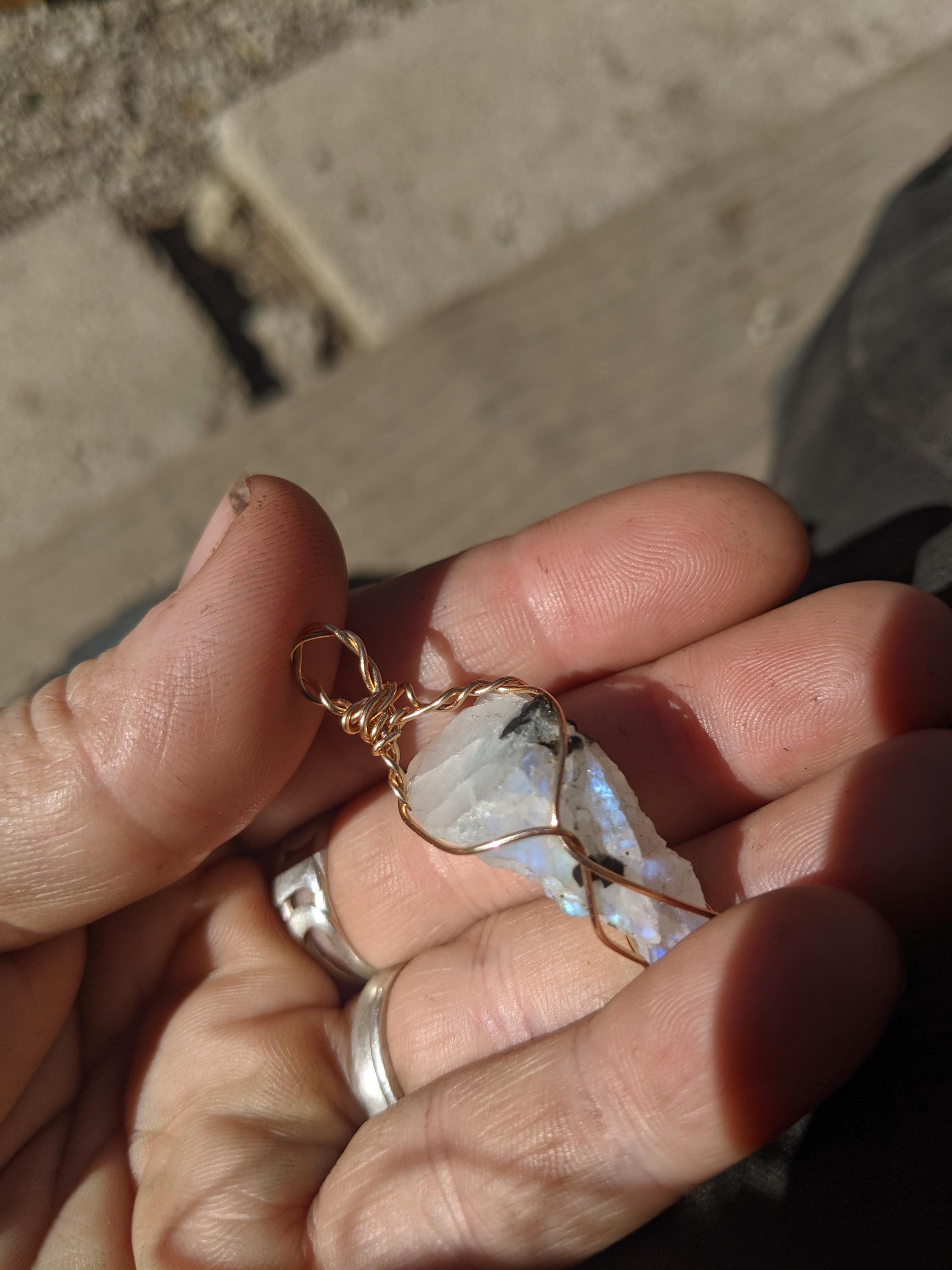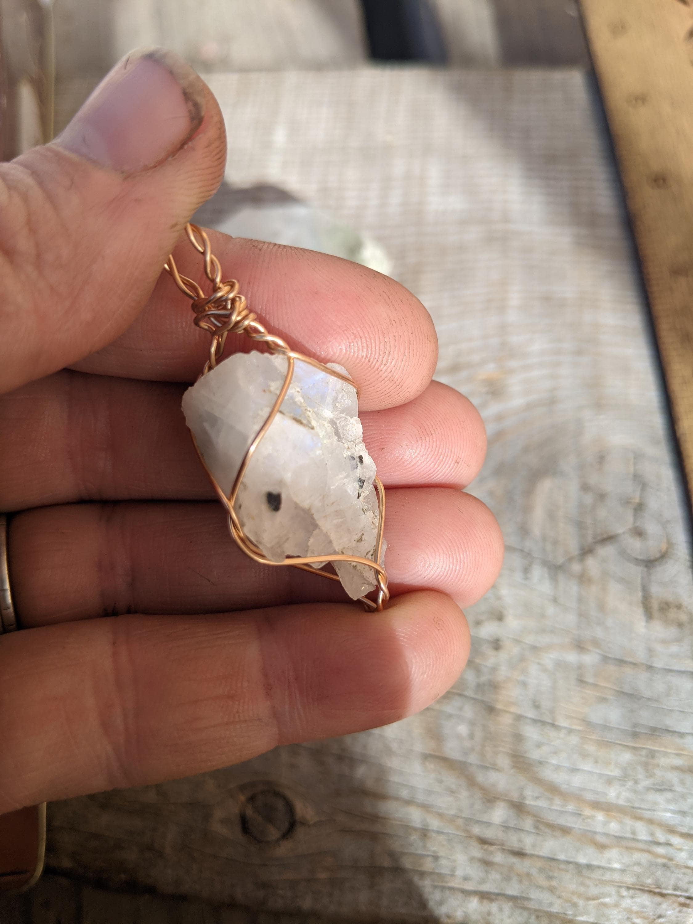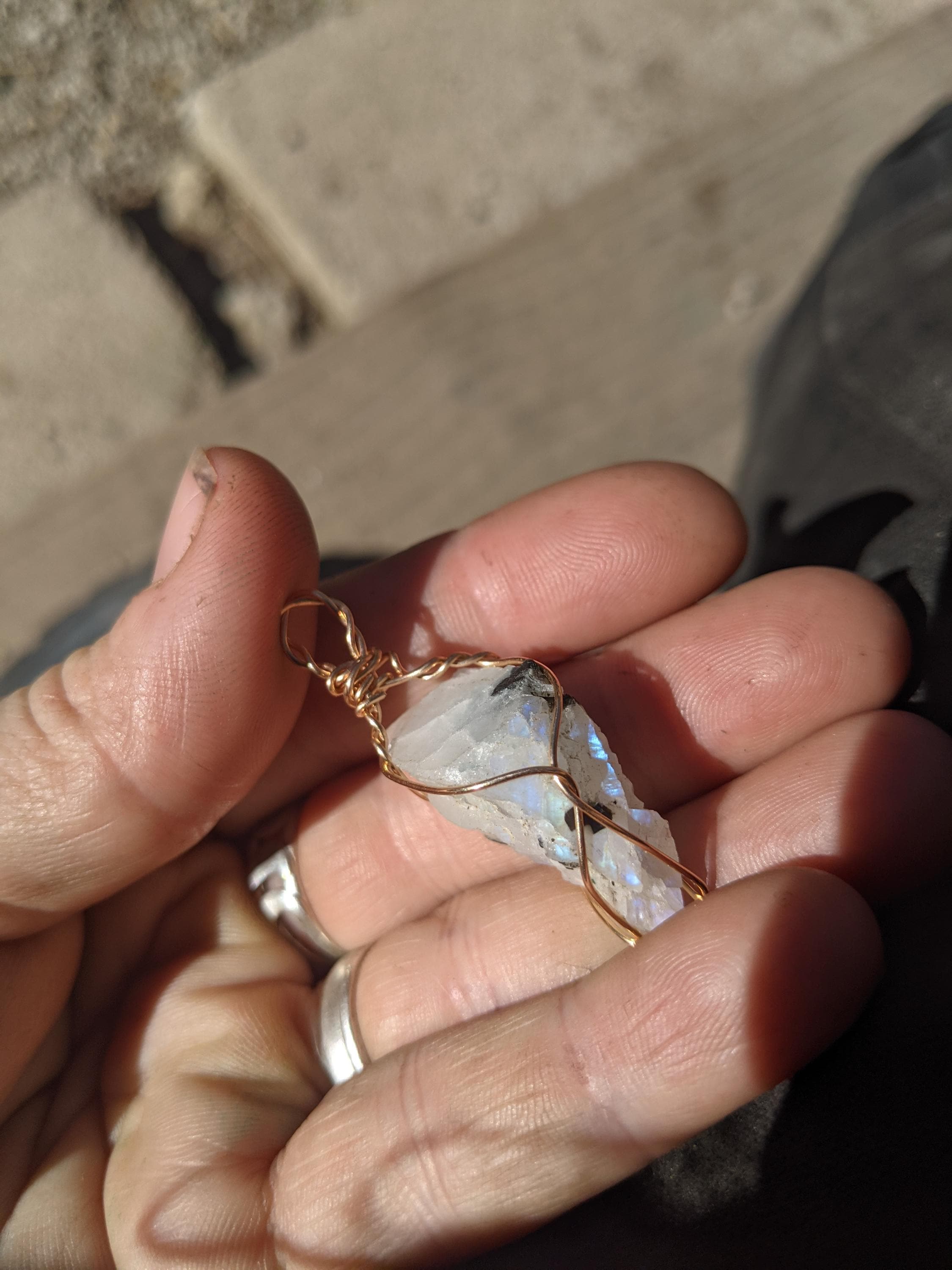 Bronze gold raw rainbow moonstone pendant, rainbow moonstone chunk, rainbow moonstone crystal necklace, moonstone jewelry, raw rough natural