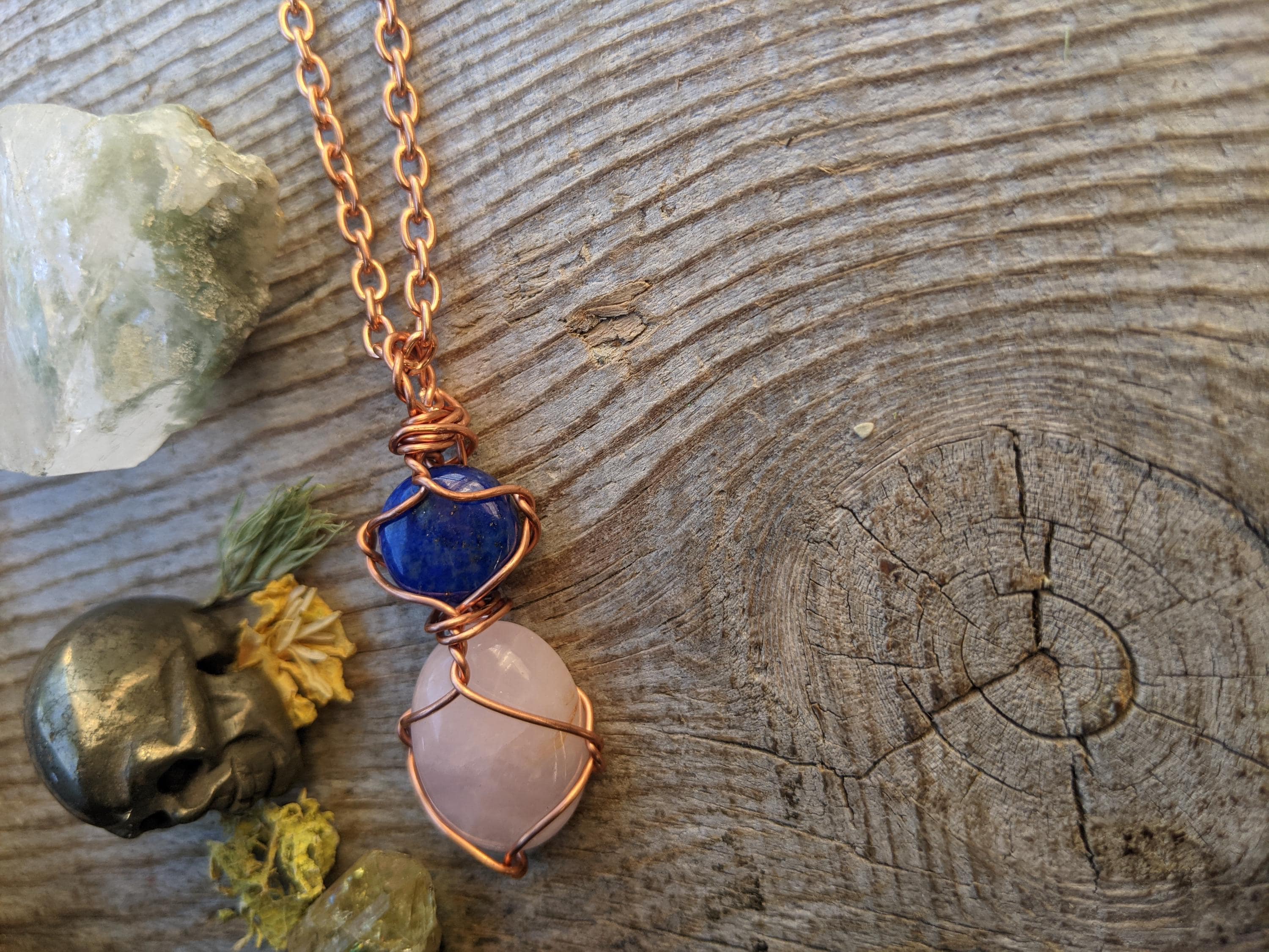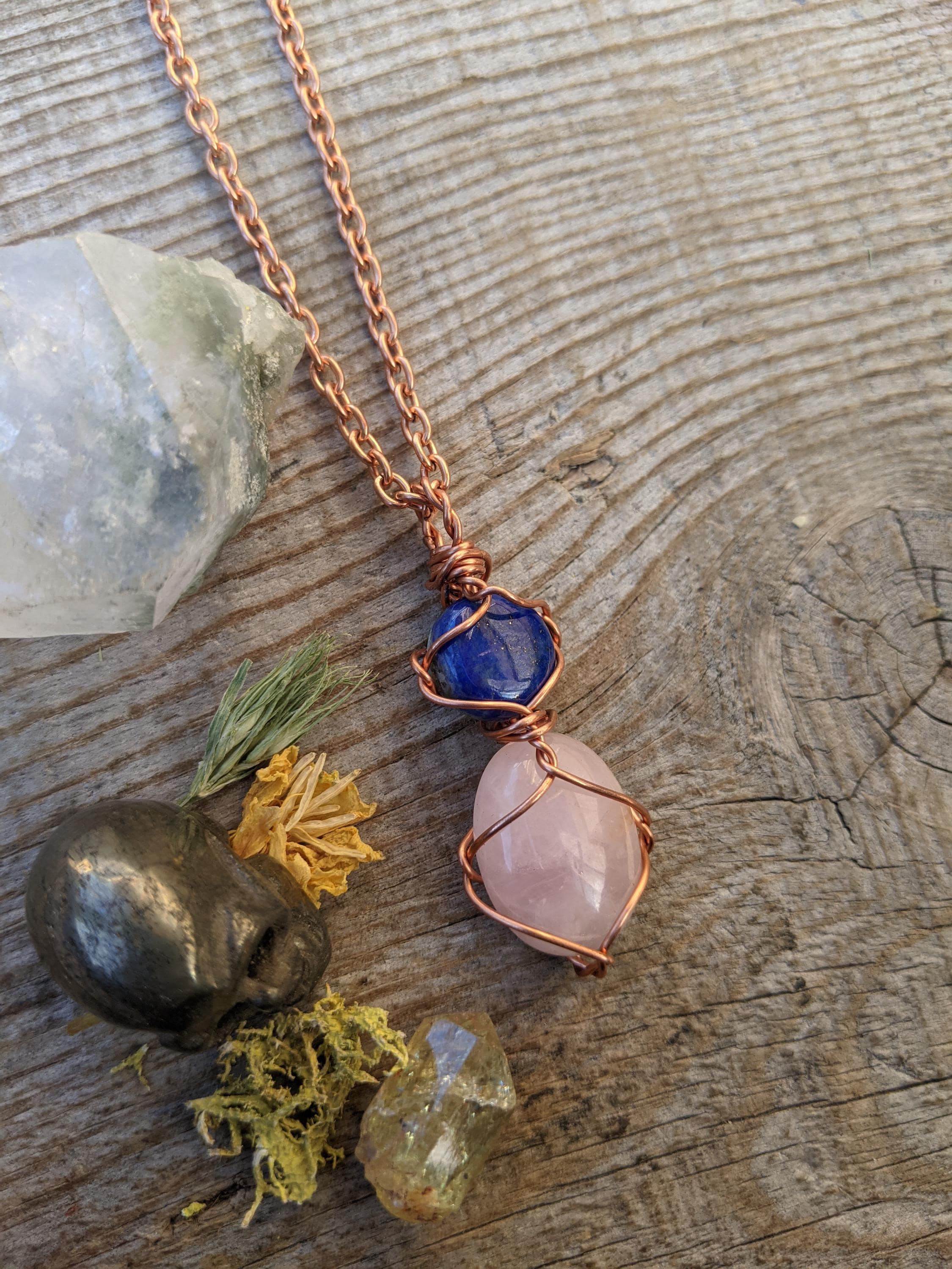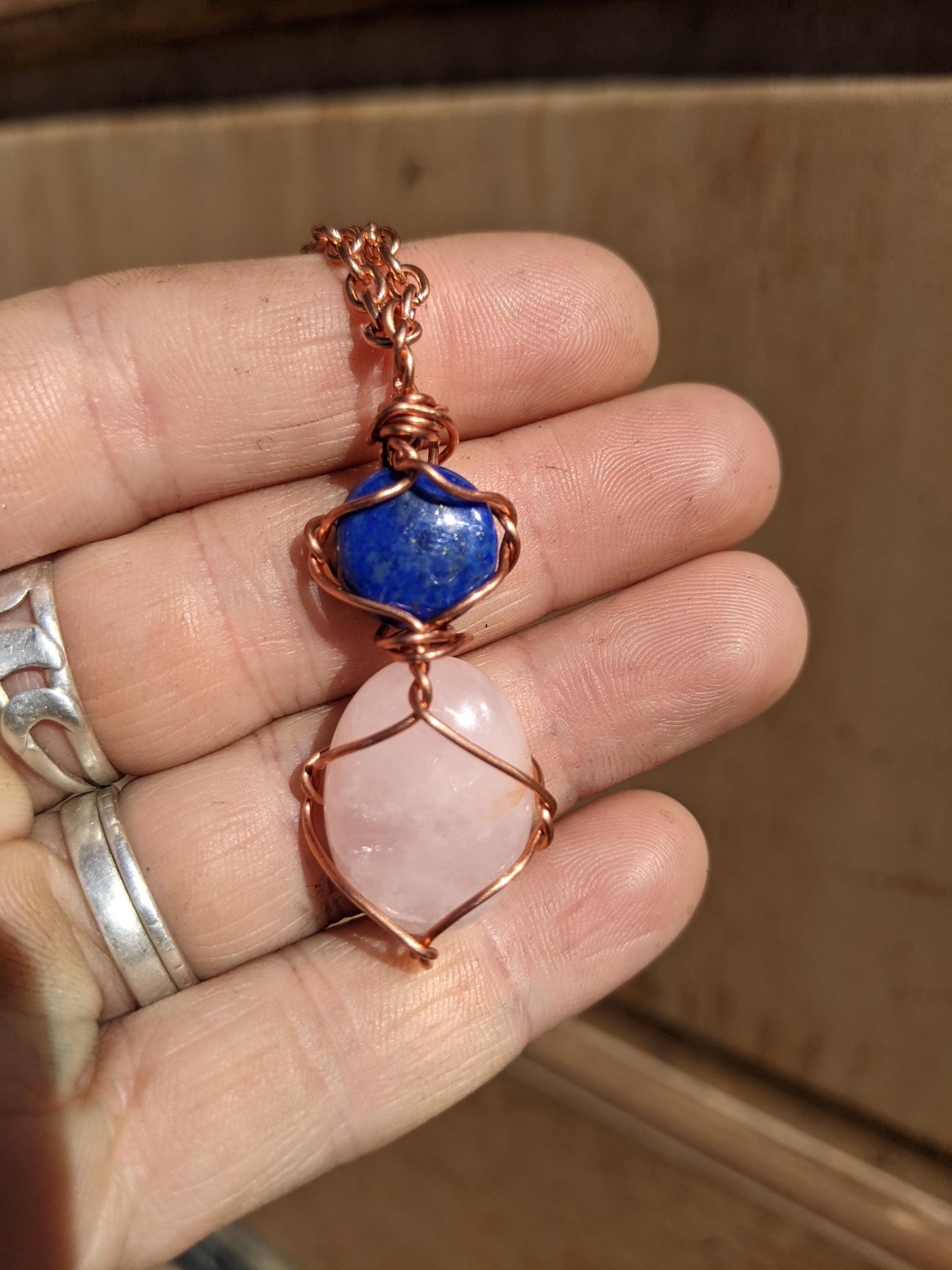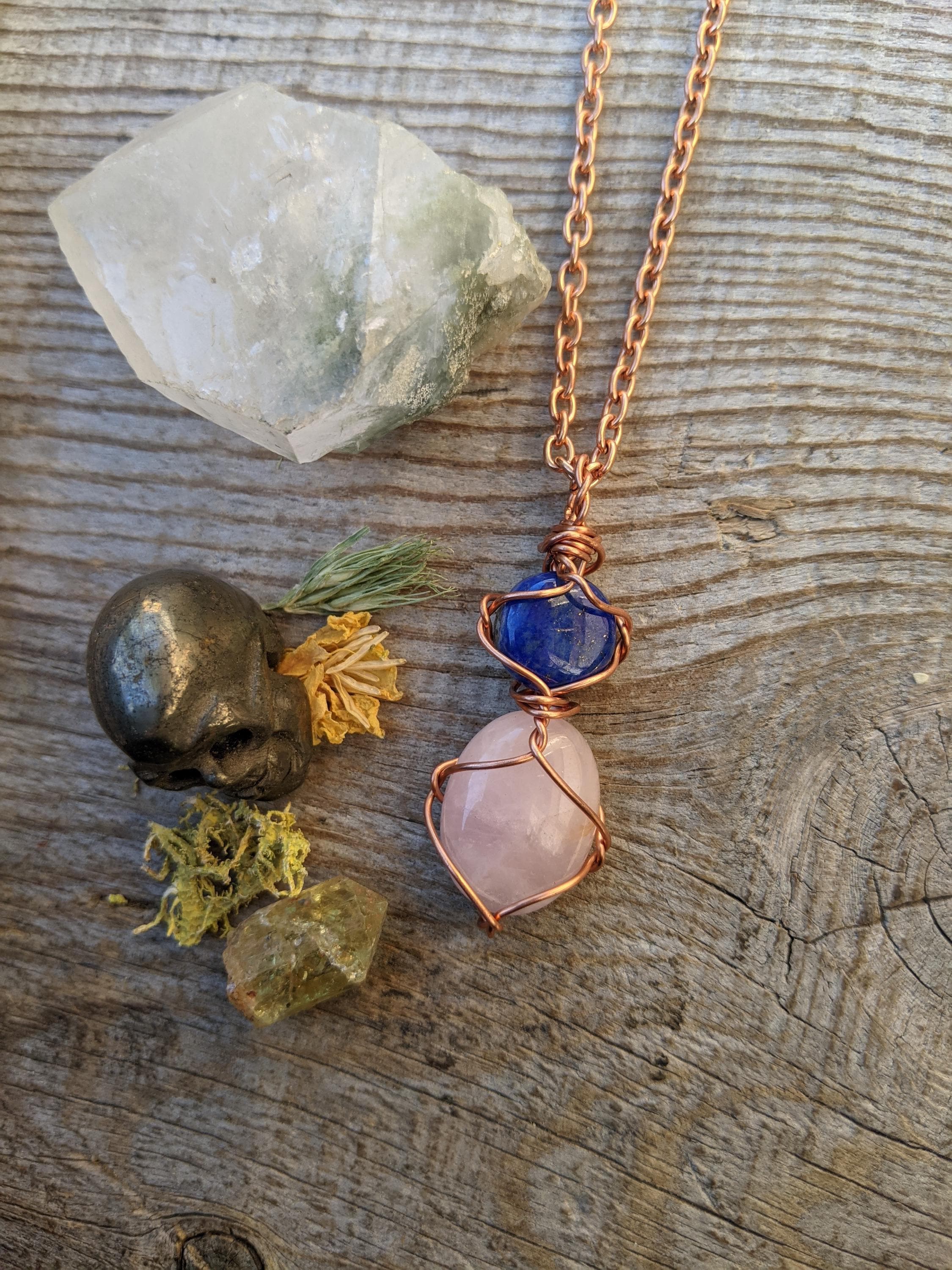 Lapis Lazuli and Rose quartz crystal pendant, natural high quality lapis full moon and rose quartz crystal pendant, pink quartz pendant, nat