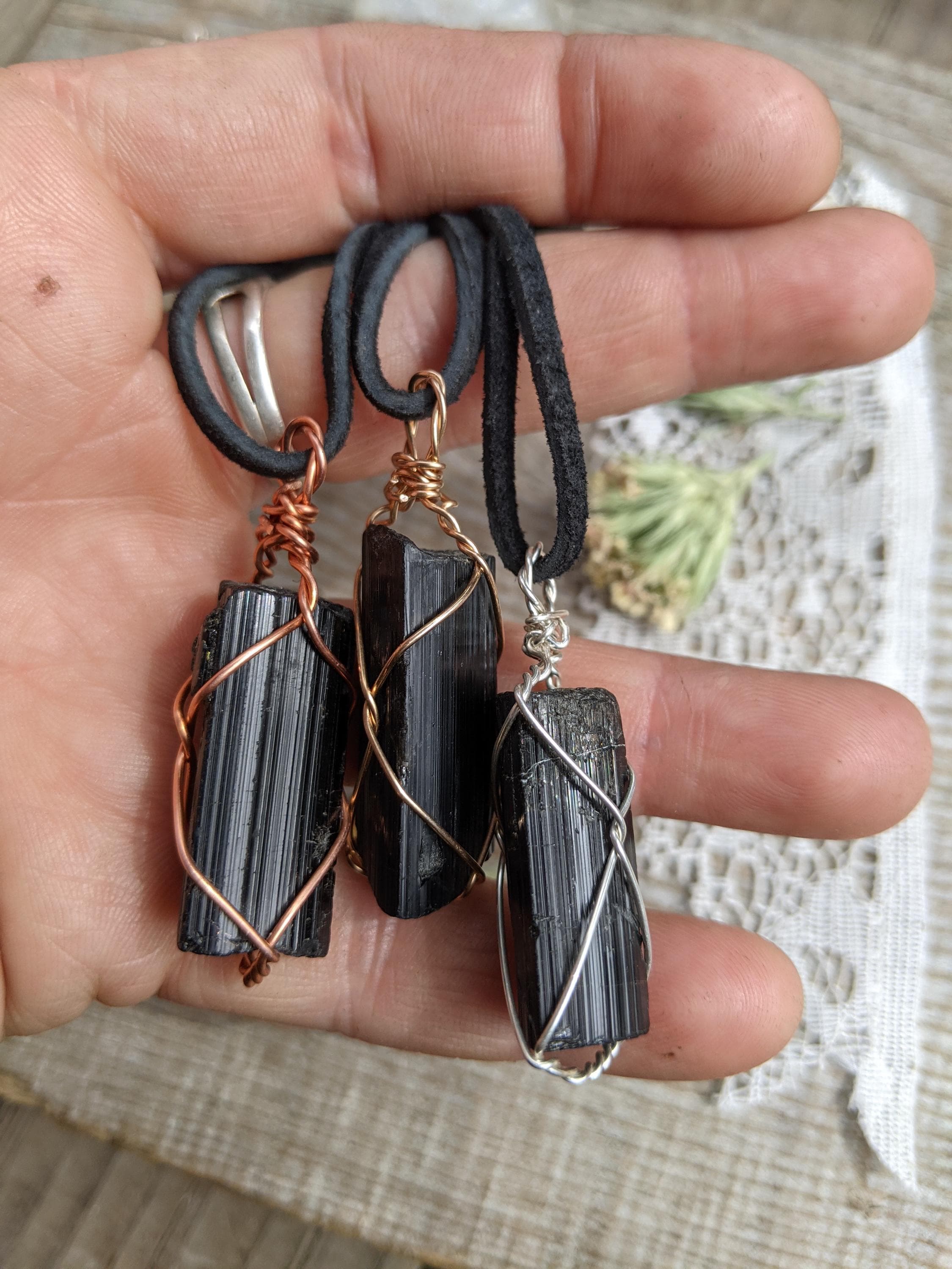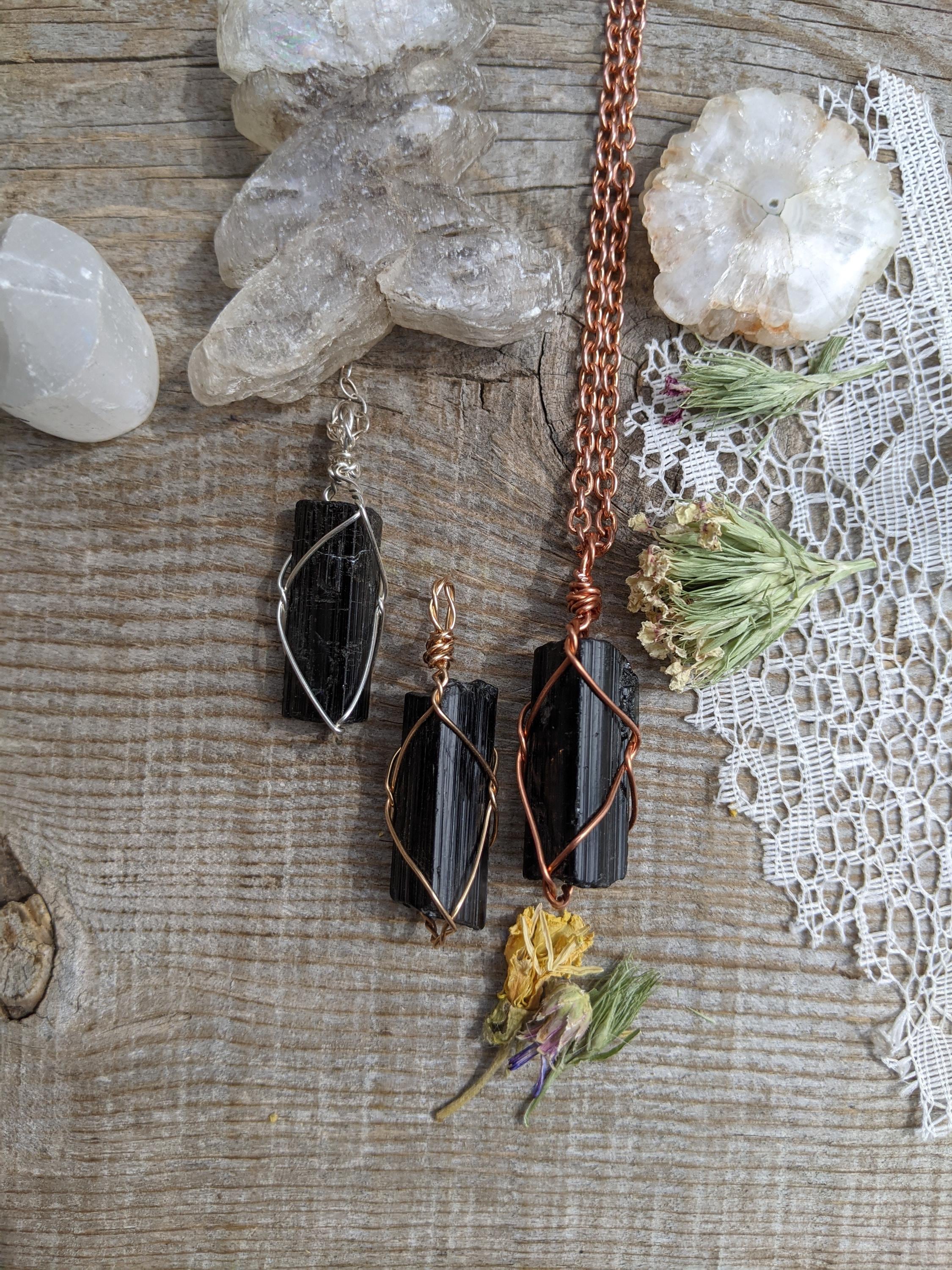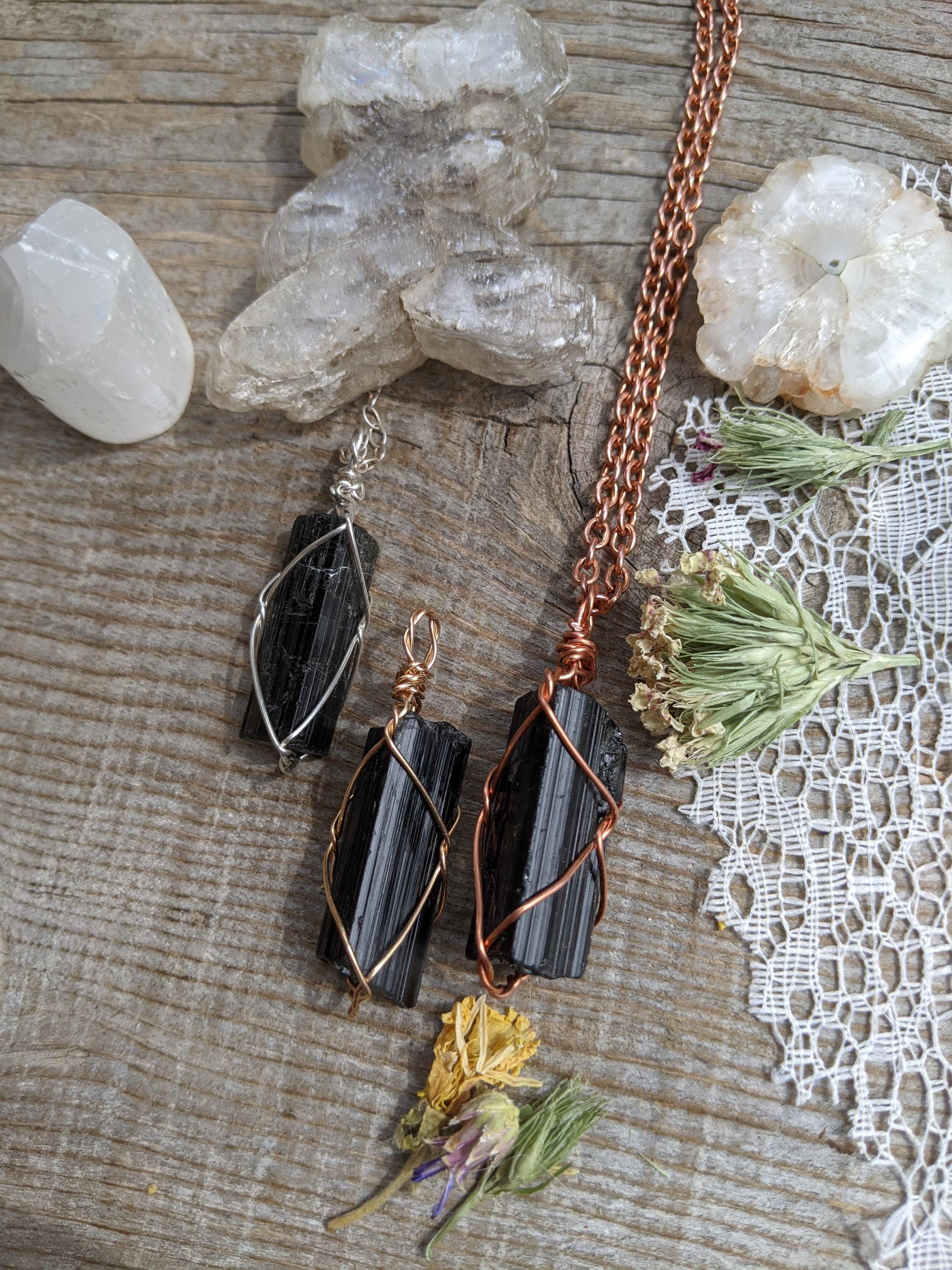 Large, raw and rough black tourmaline pieces. These are the larger crystals in the batch!!! All natural. These larger, chunkier pendants make great statement pieces.