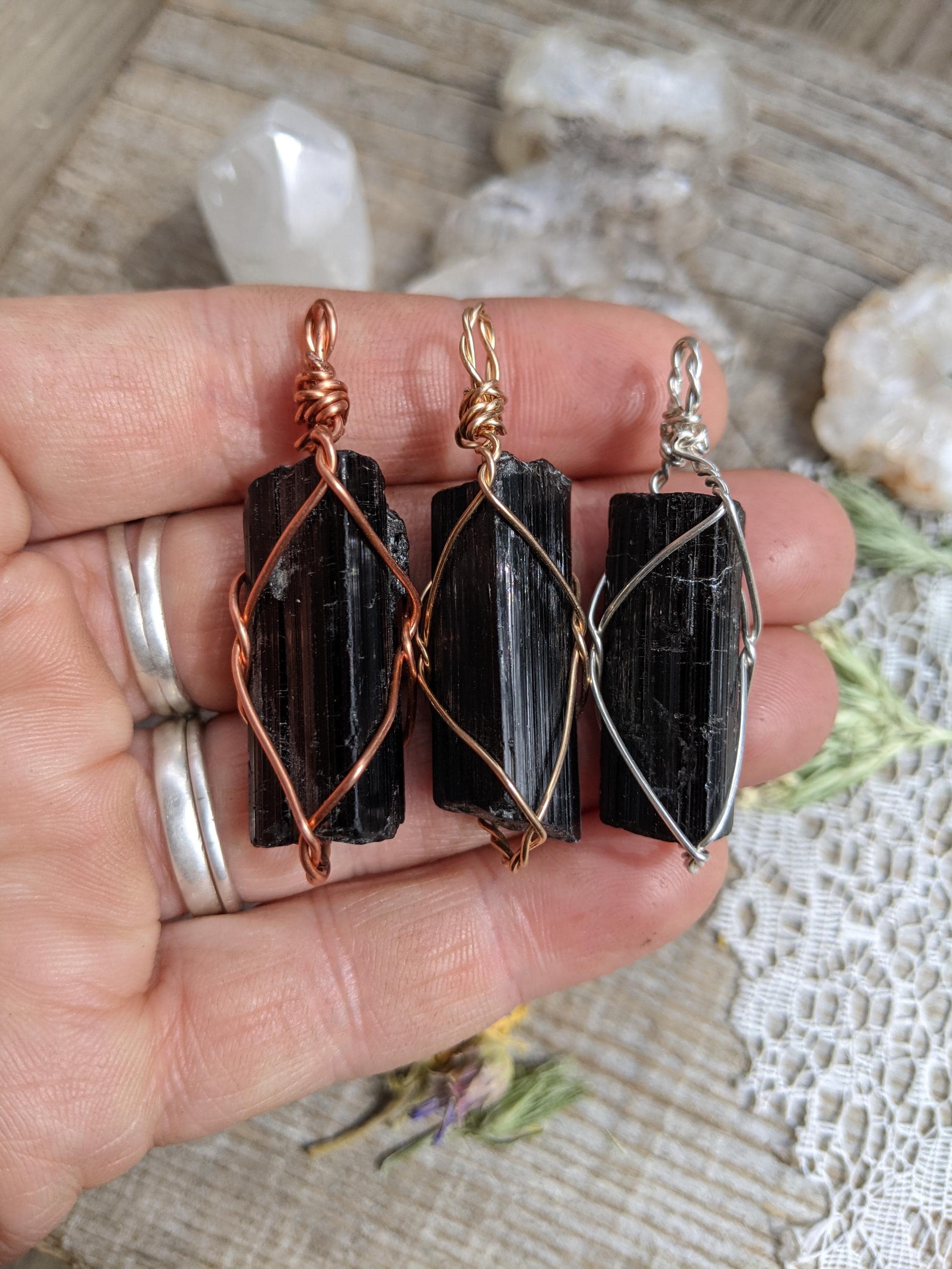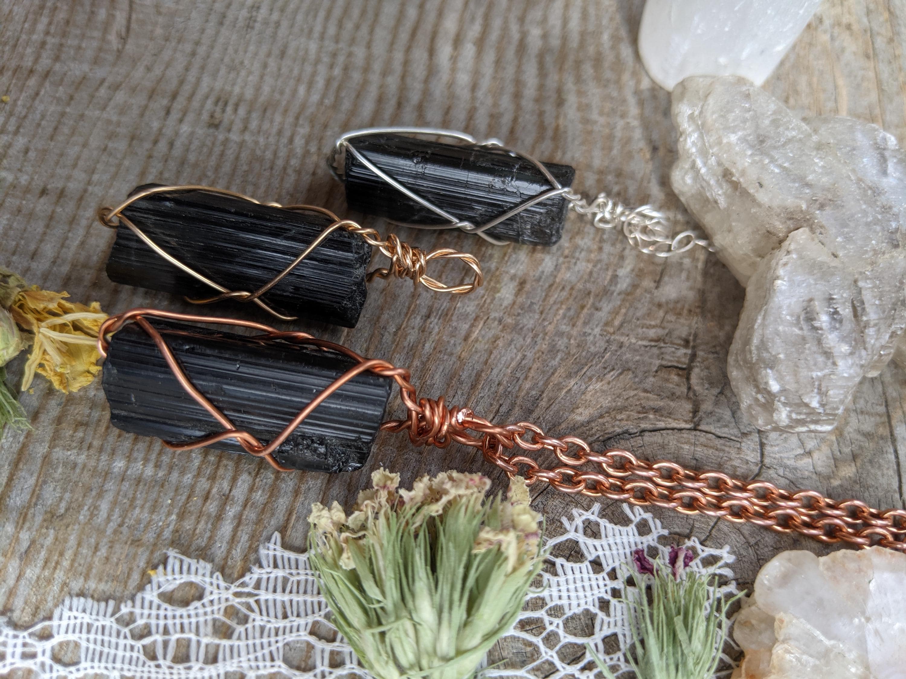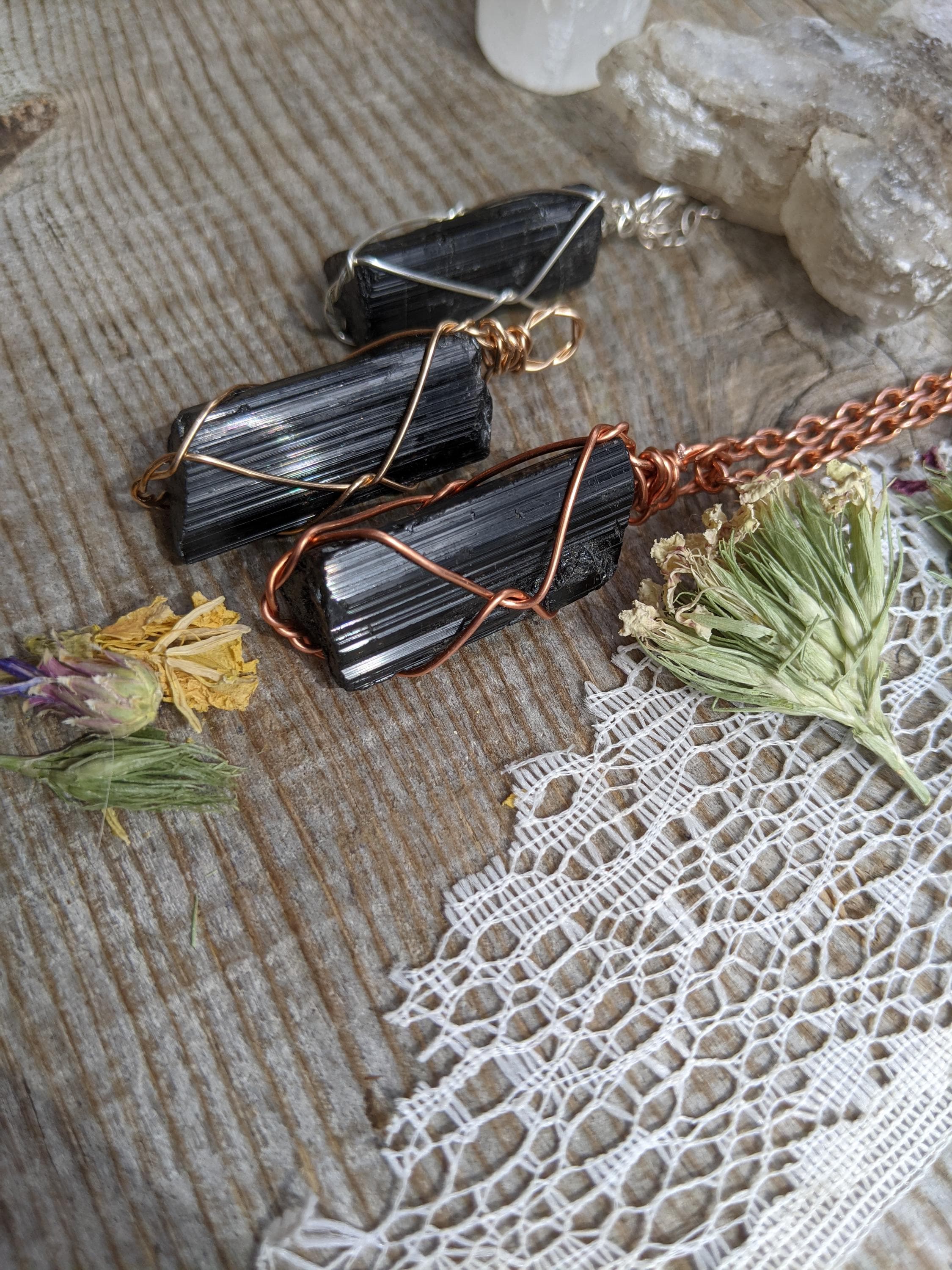 Large, raw and rough black tourmaline pieces. These are the larger crystals in the batch!!! All natural. These larger, chunkier pendants make great statement pieces.