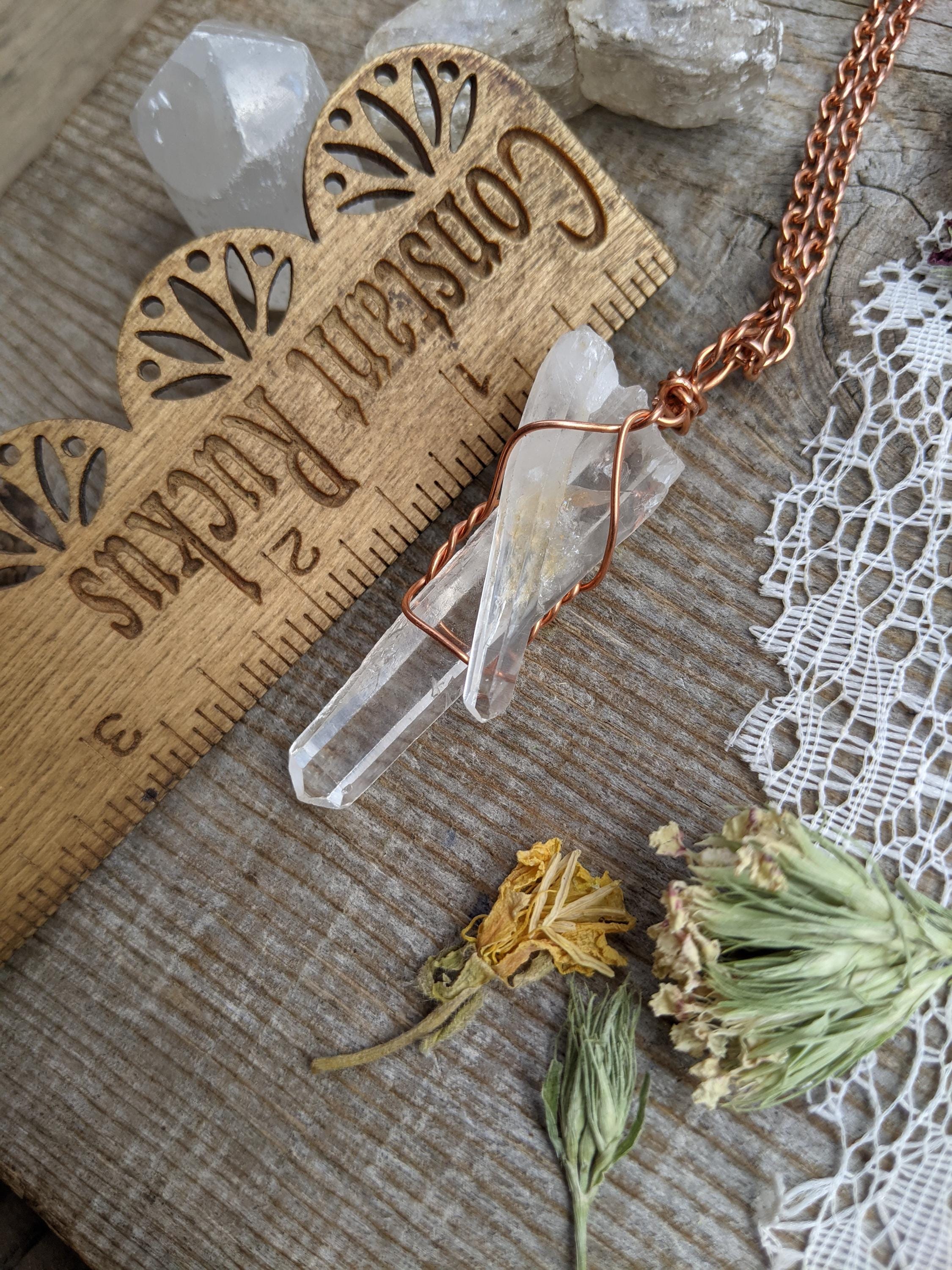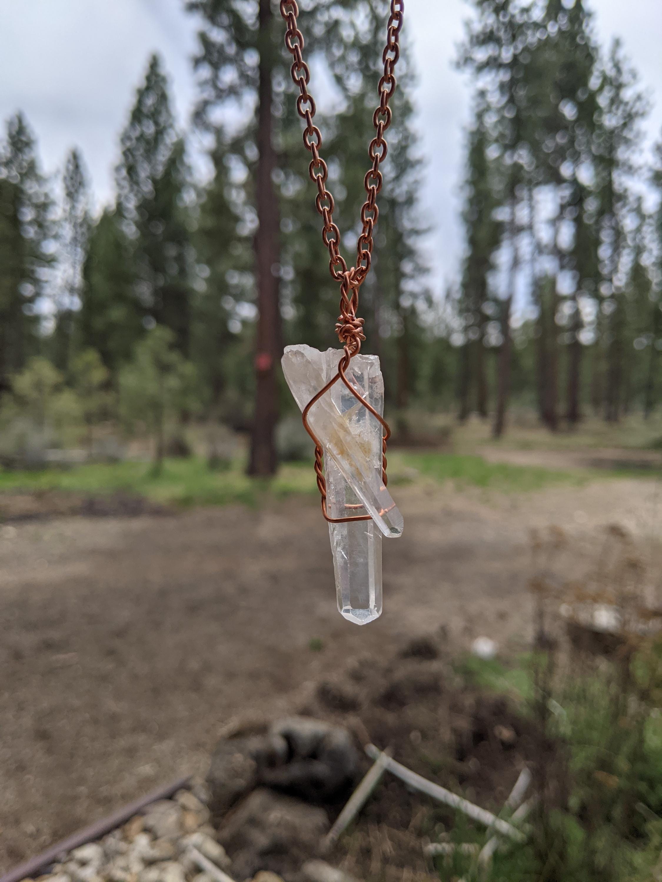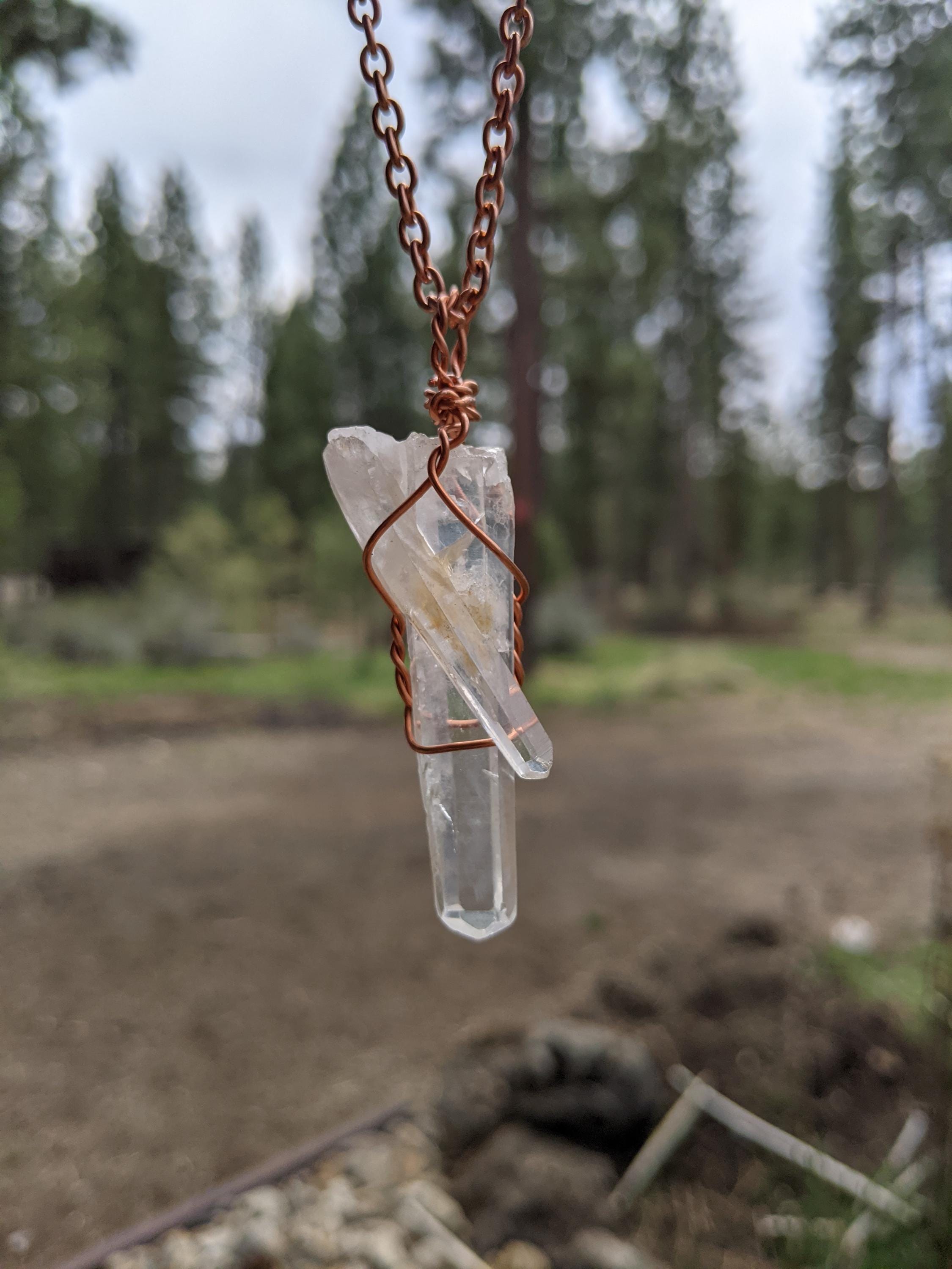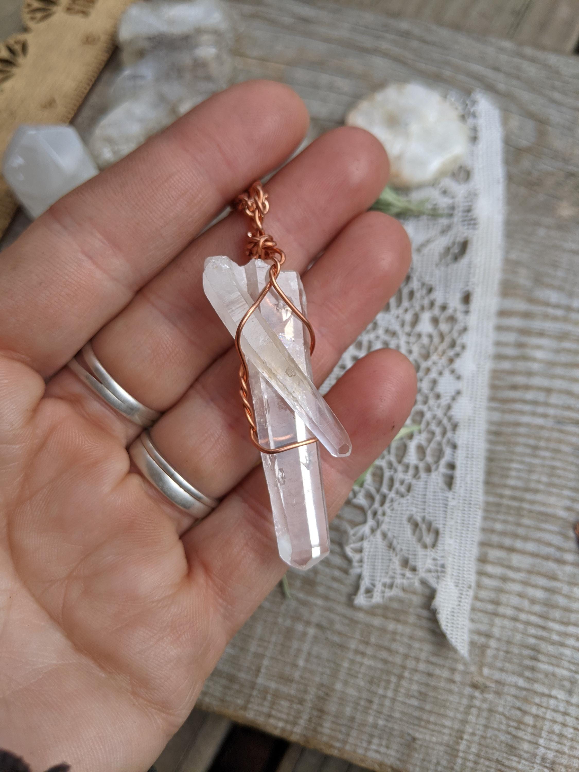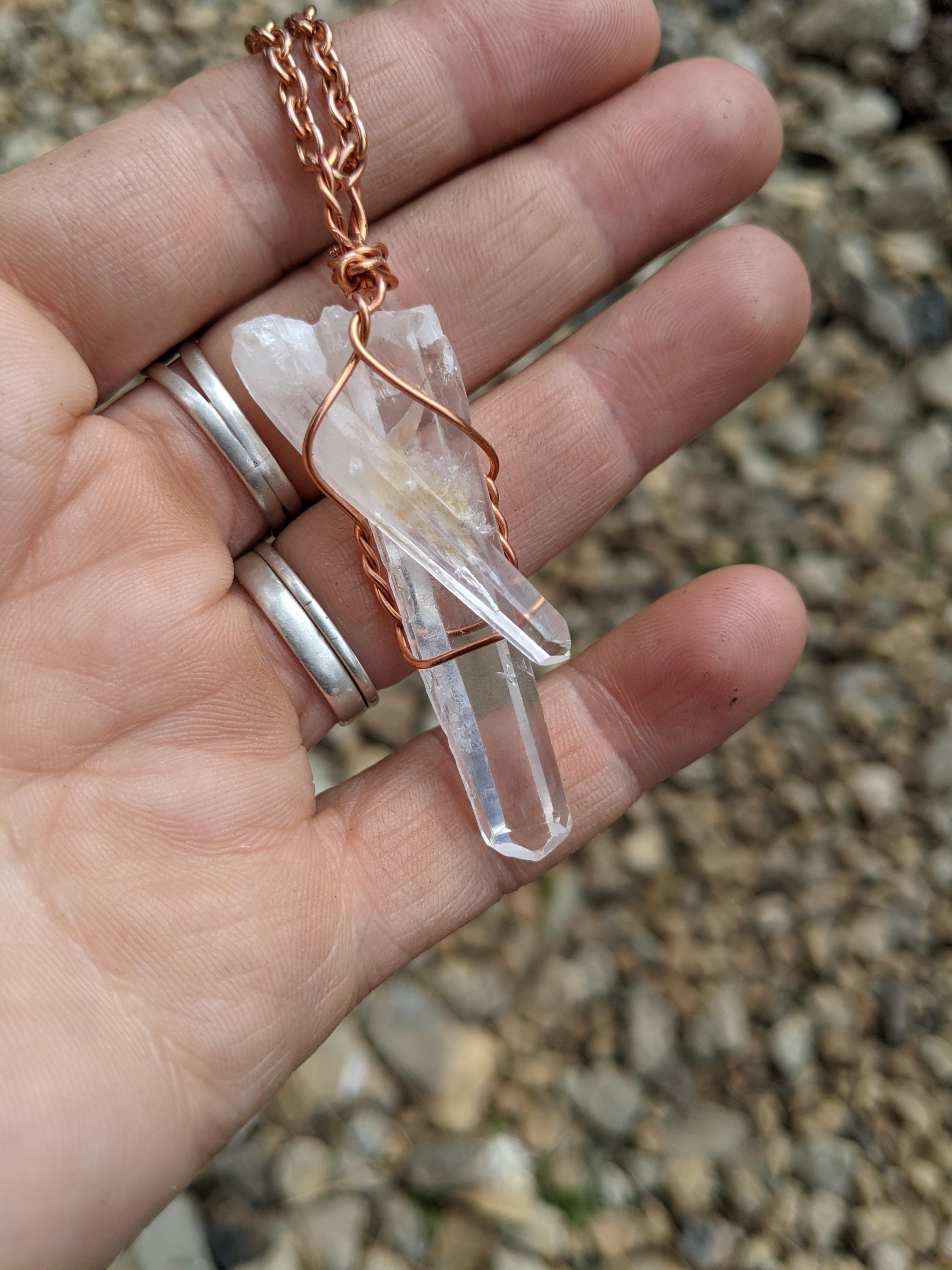 unique clear large and baby quartz pendant in solid copper, beautiful high clear quality!