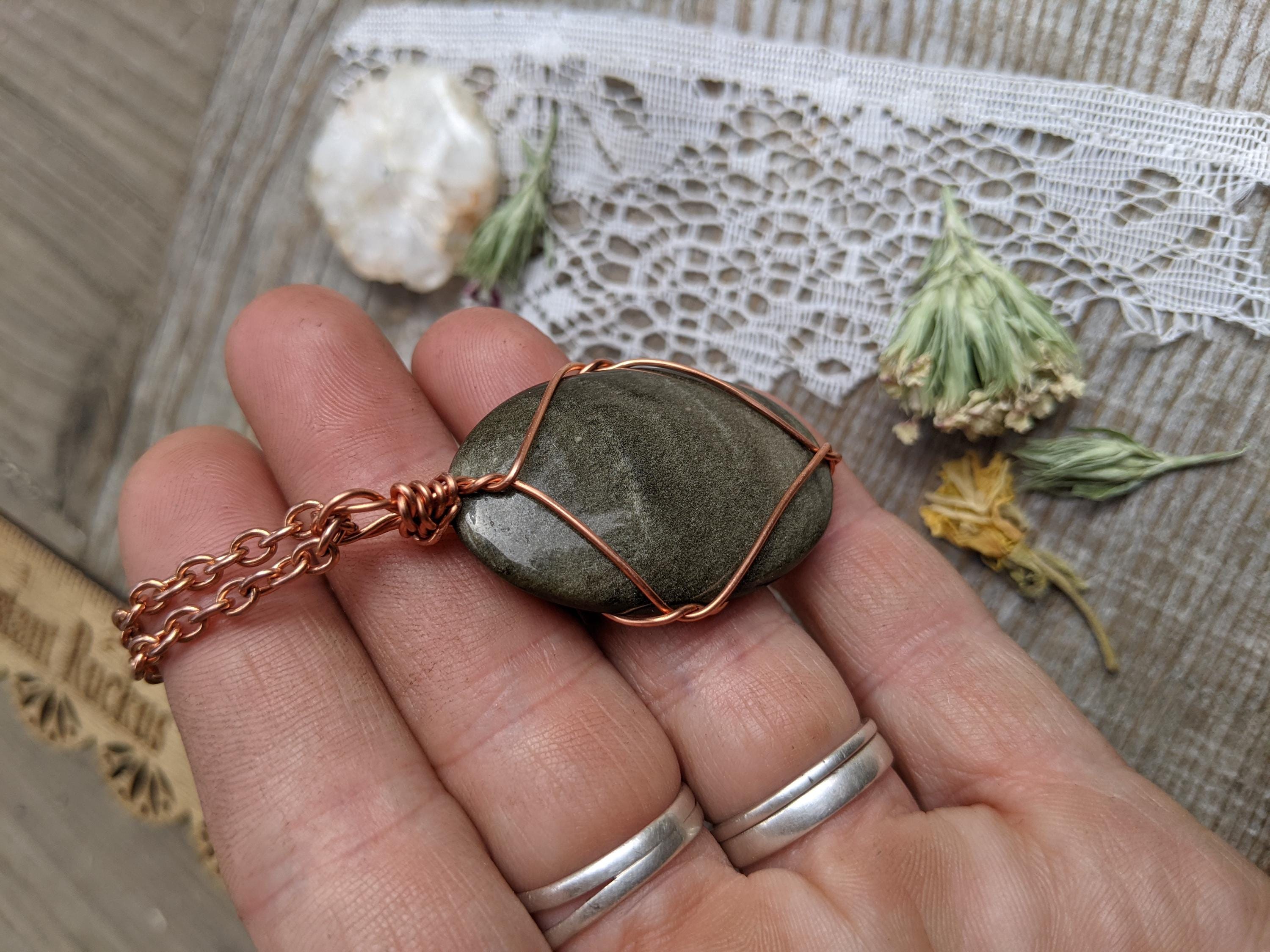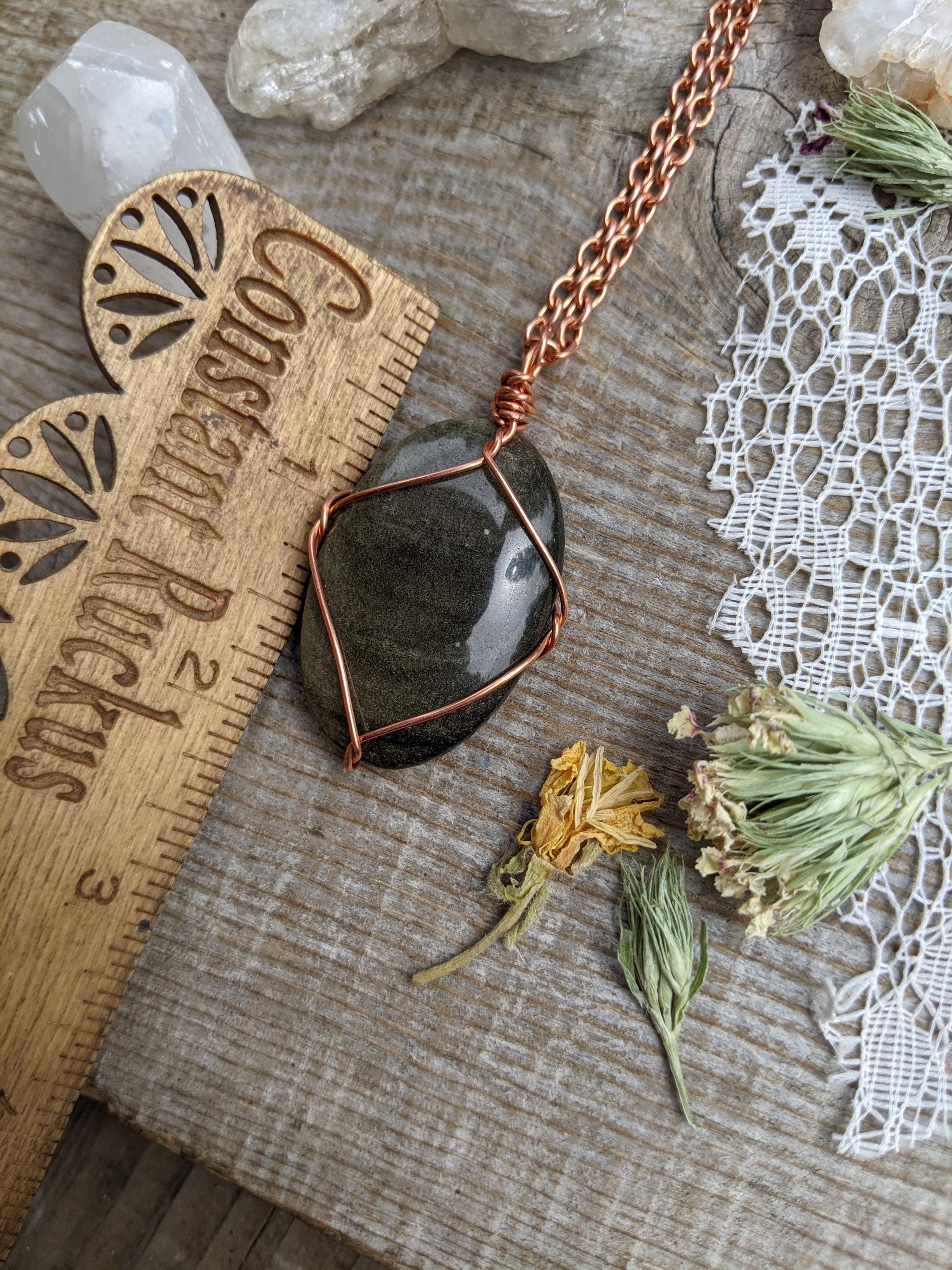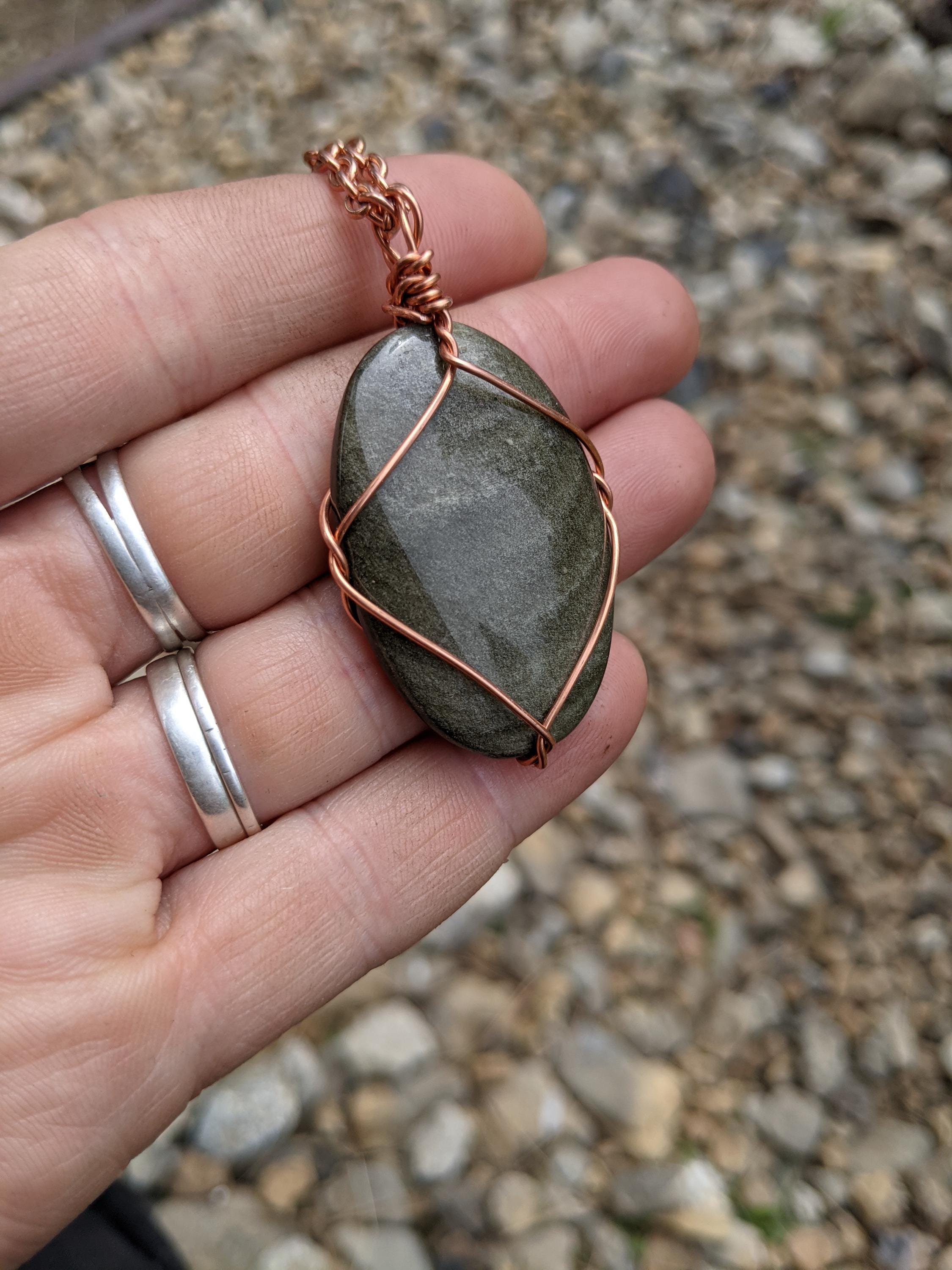 large sheen obsidian crystal pendant, golden sheen obsidian necklace, sheen obsidian crystal, crystal pendant in solid copper, natural cryst