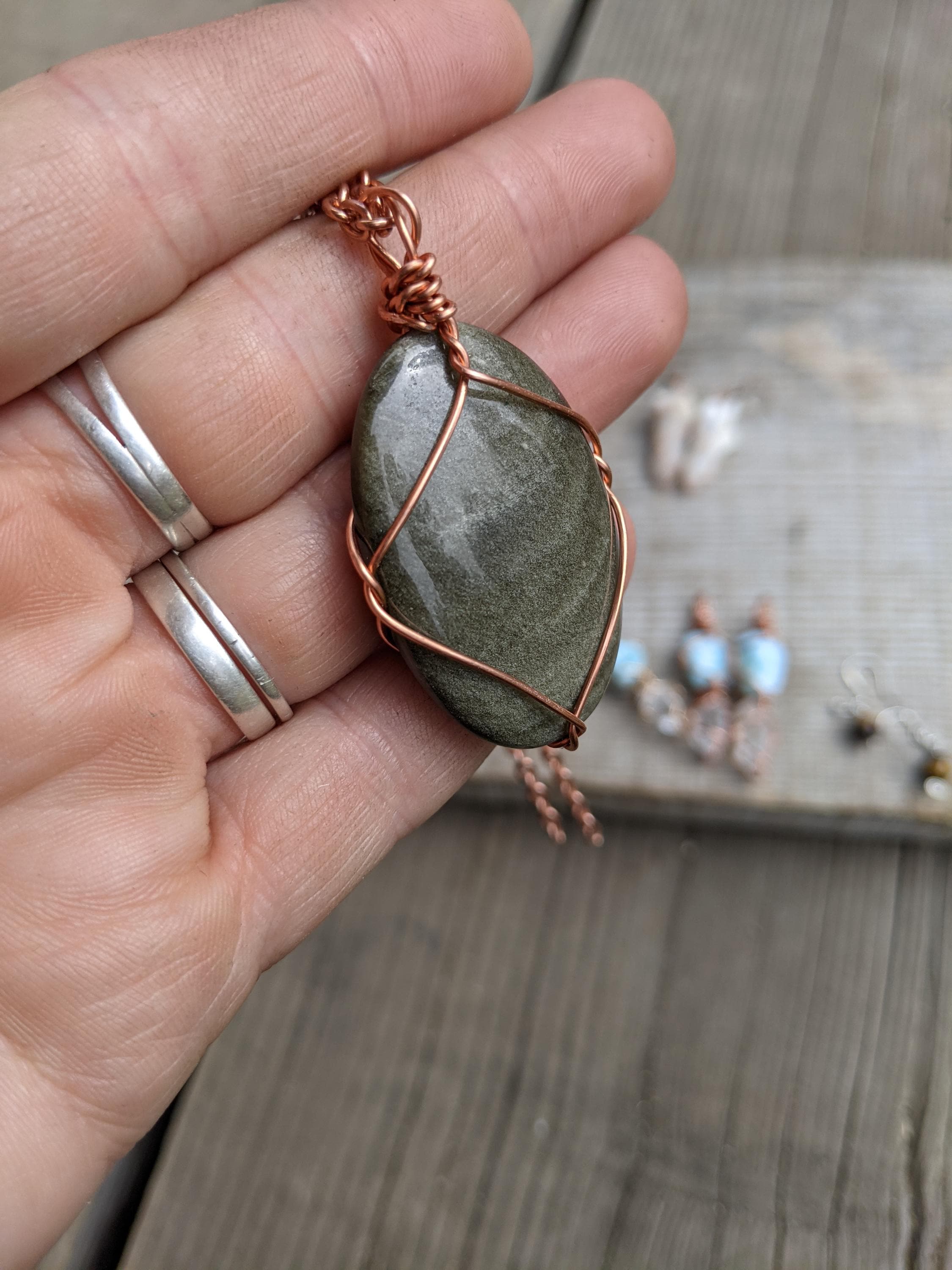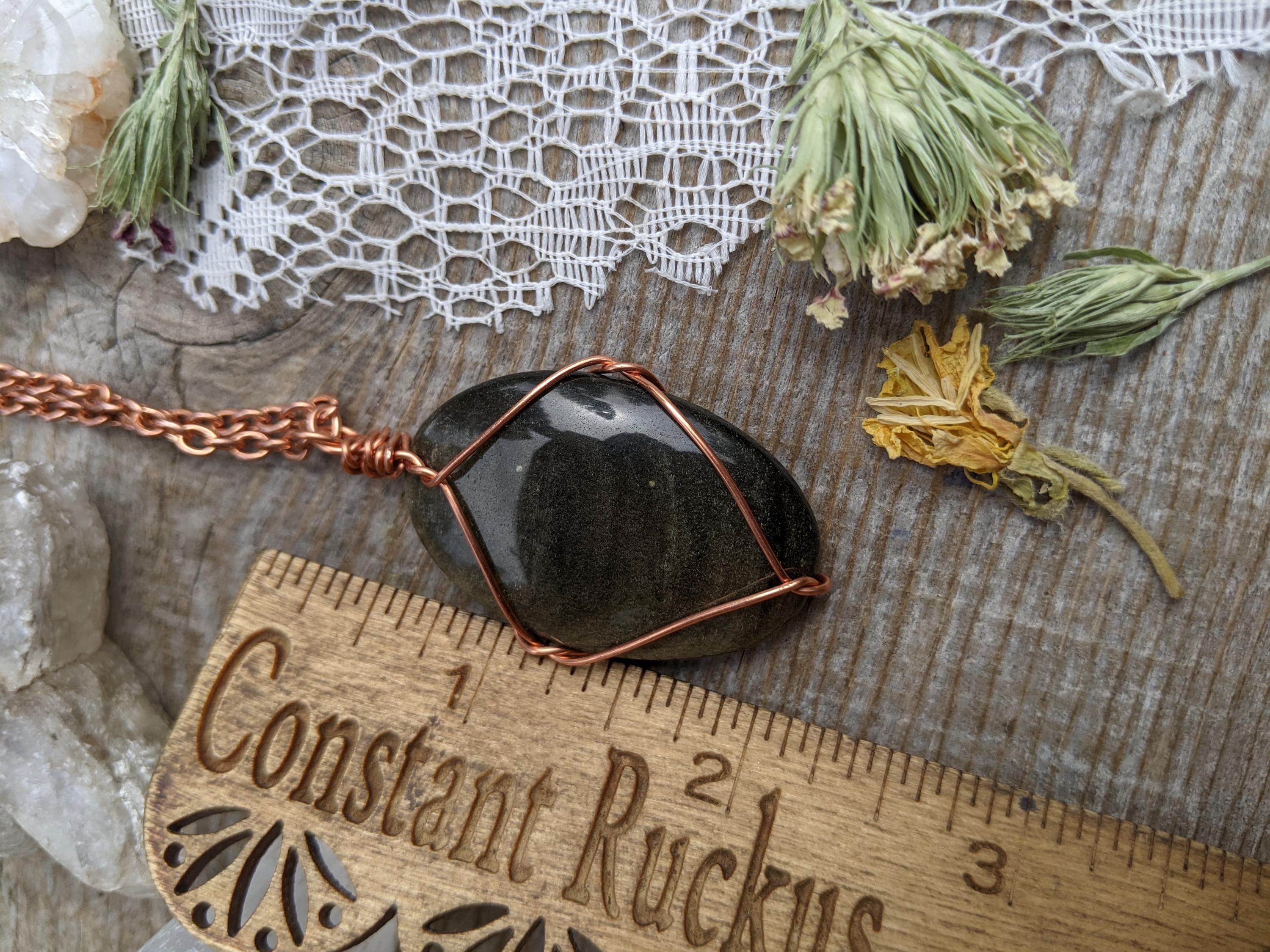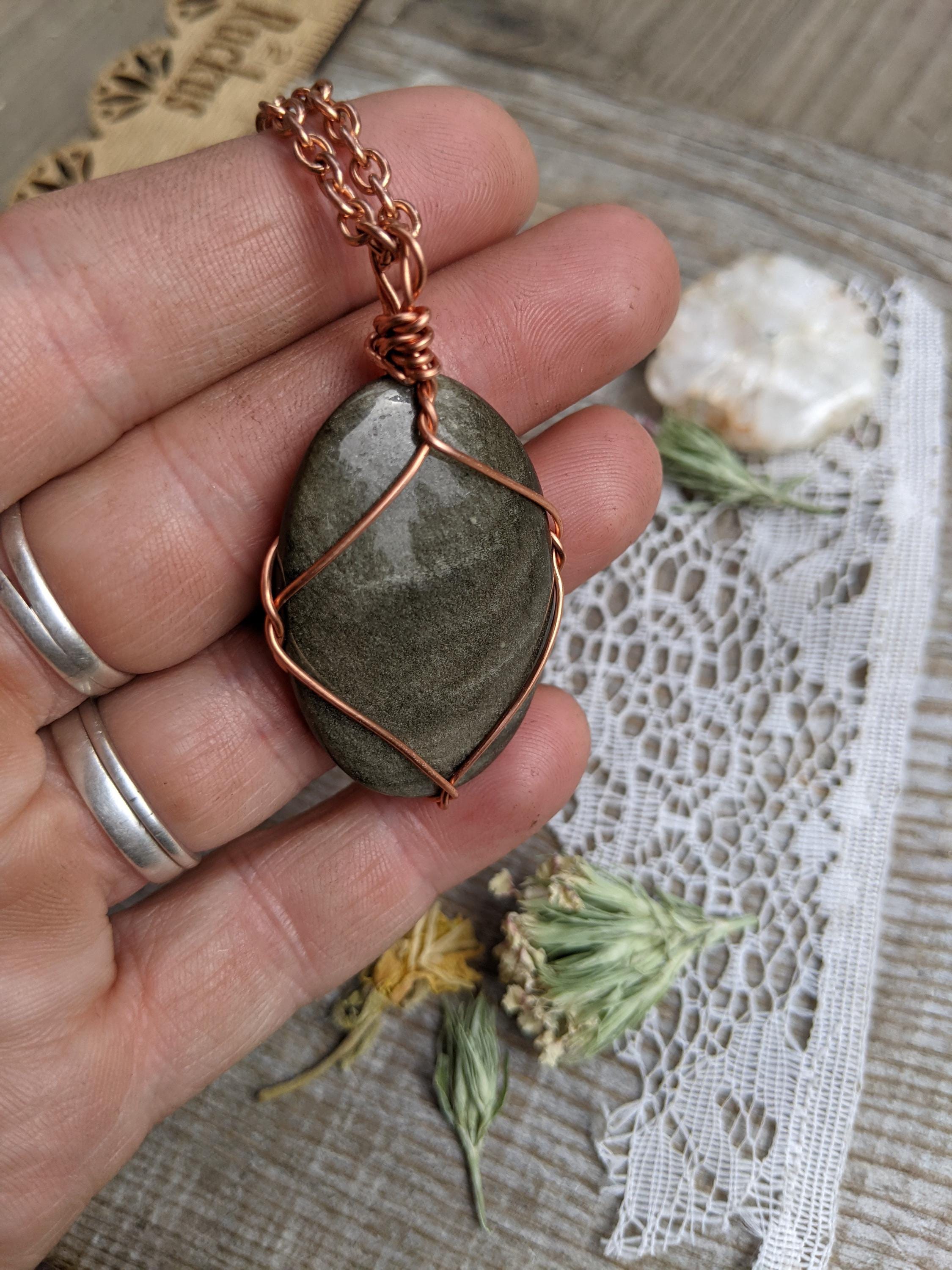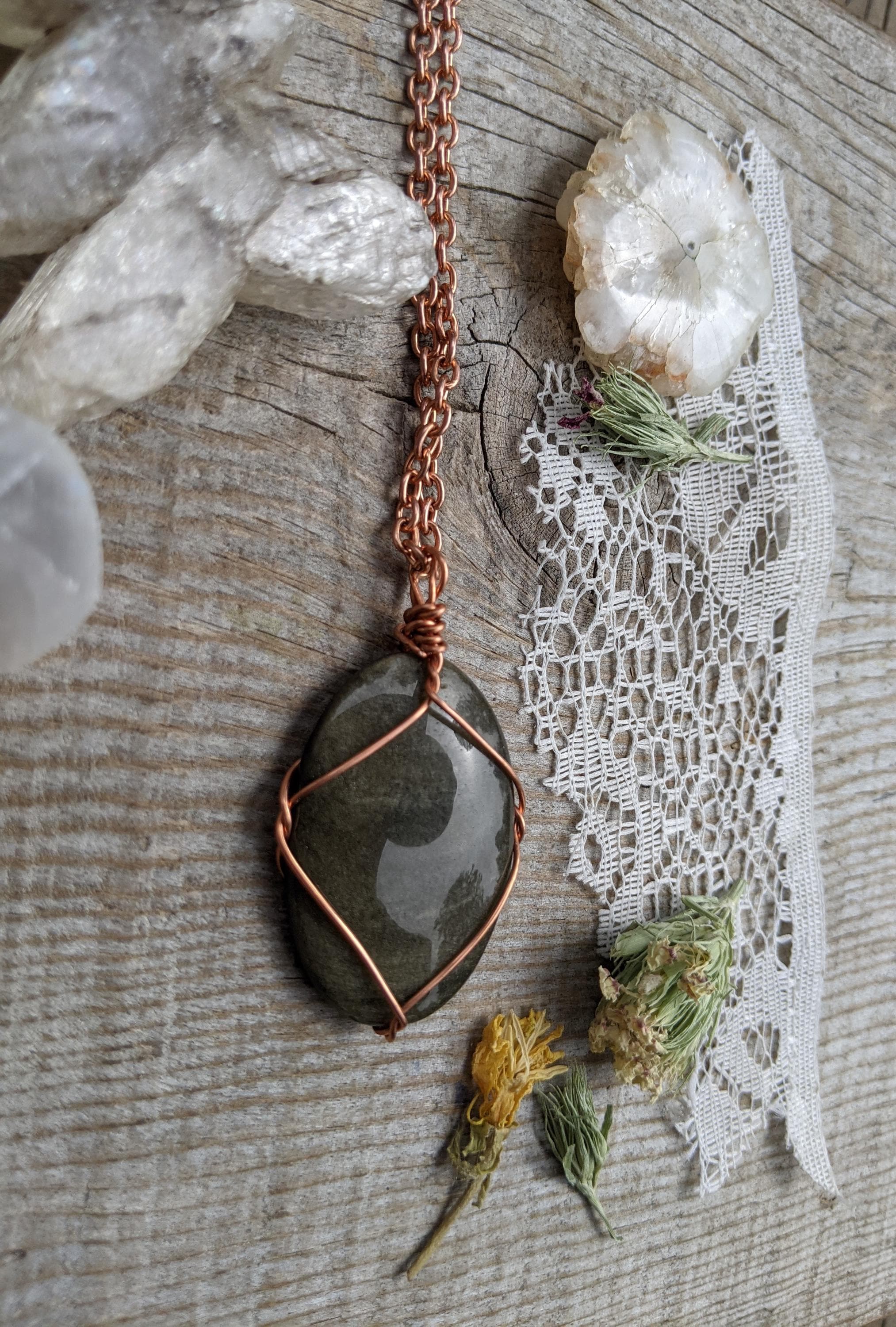 large sheen obsidian crystal pendant, golden sheen obsidian necklace, sheen obsidian crystal, crystal pendant in solid copper, natural cryst