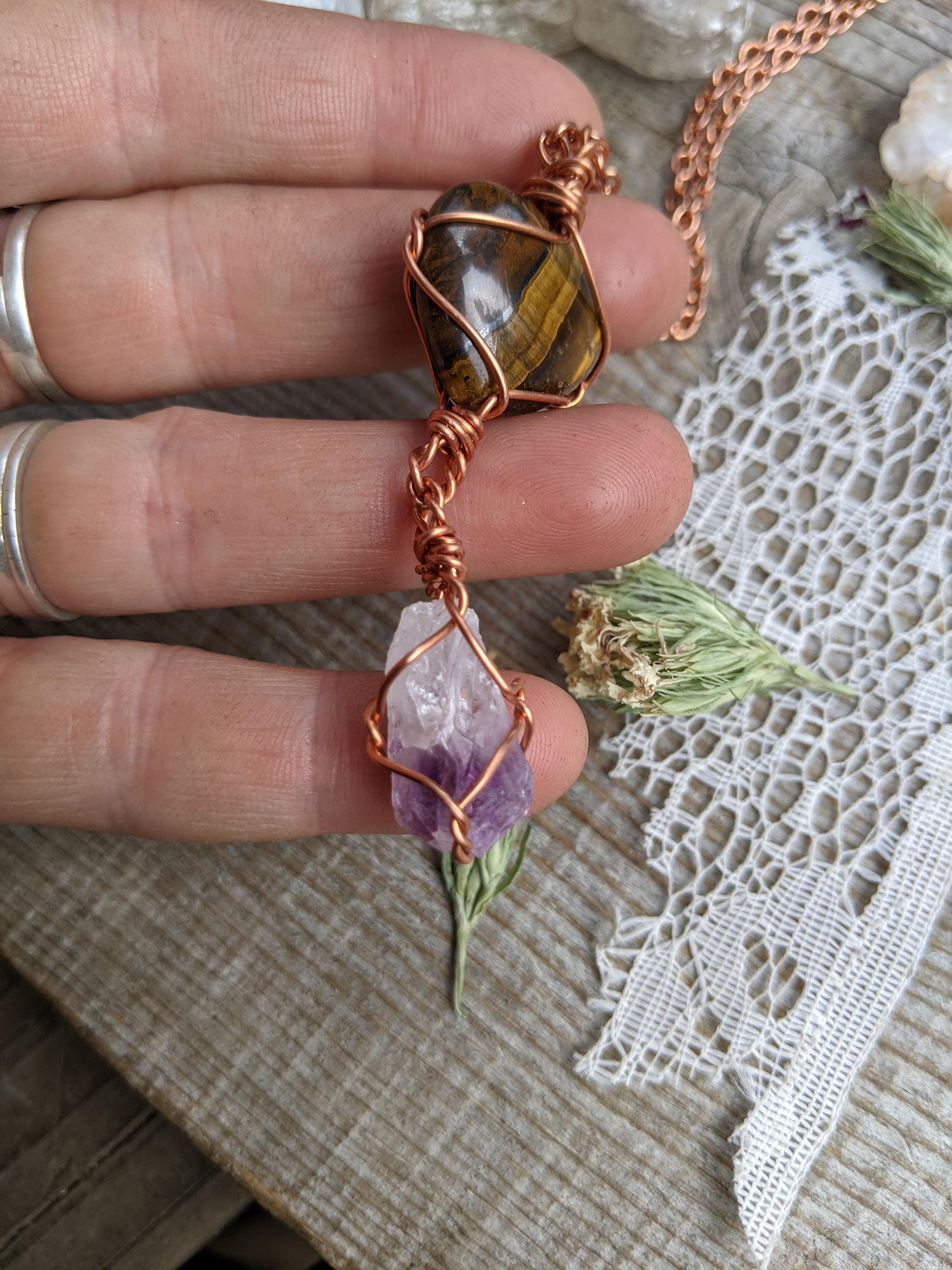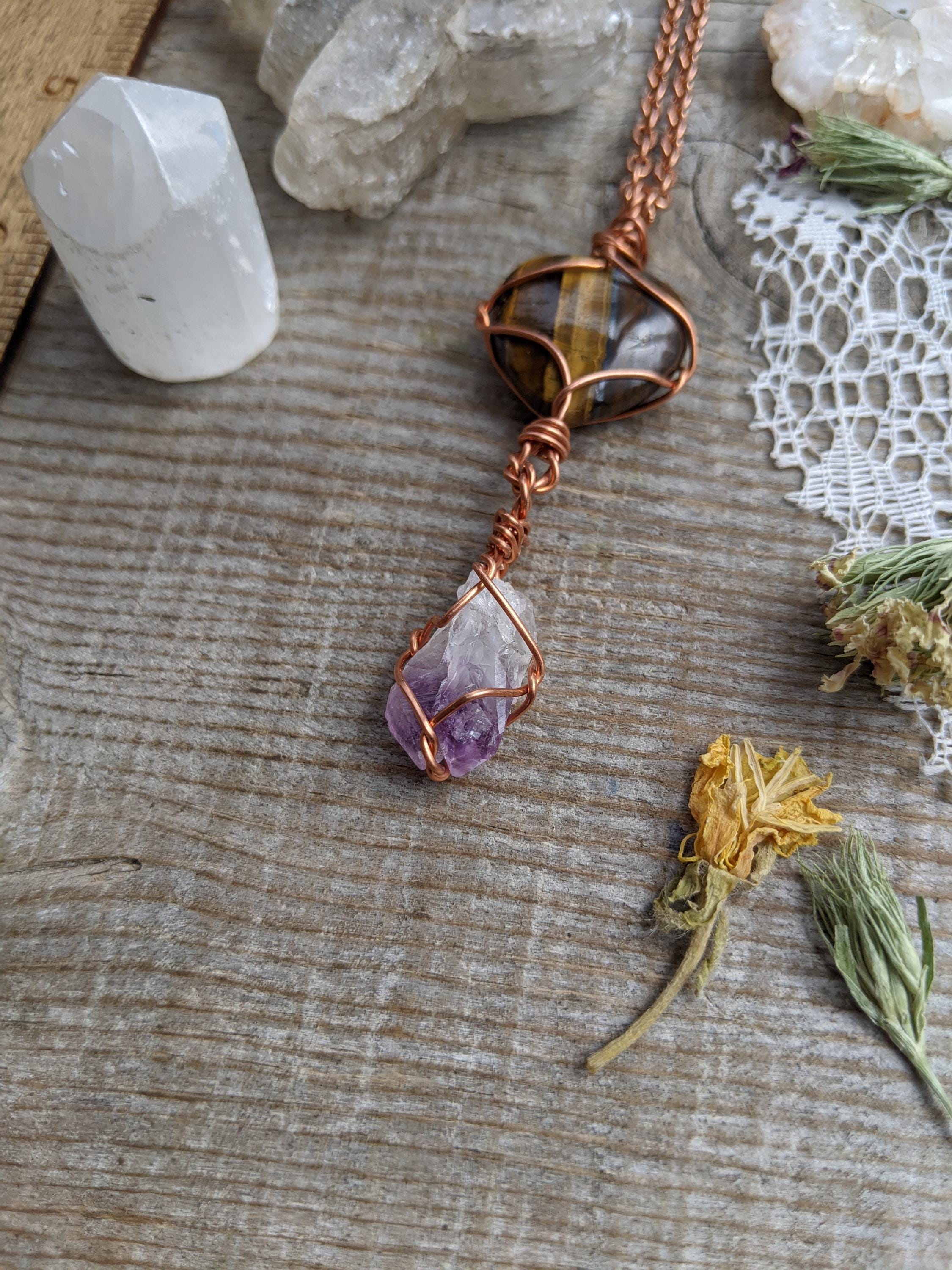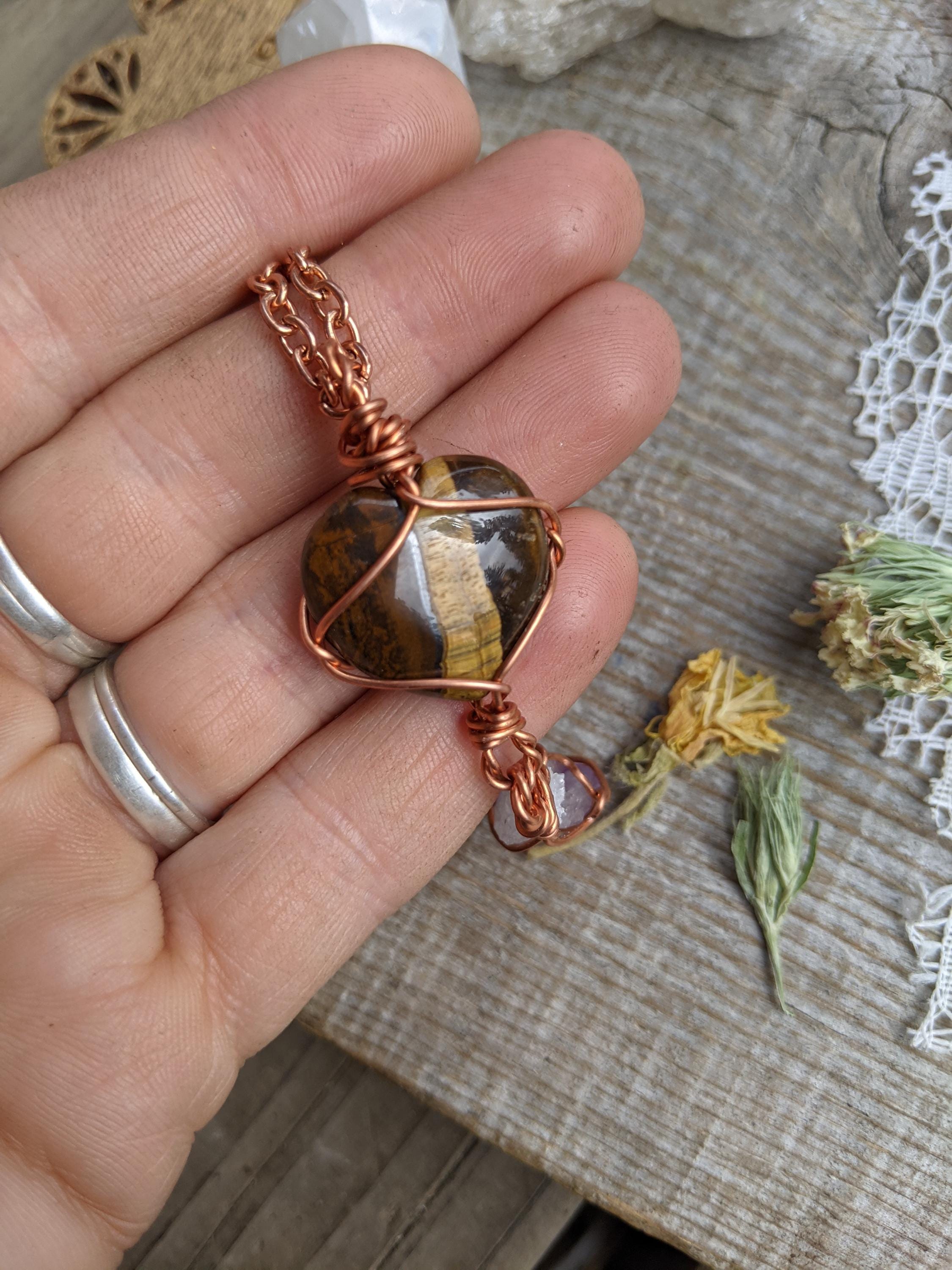 tigers eye heart and amethyst crystal pendant, tigerseye amethyst pendant, tiger eyes pendant, raw amethyst pendant, heart pendant, heart