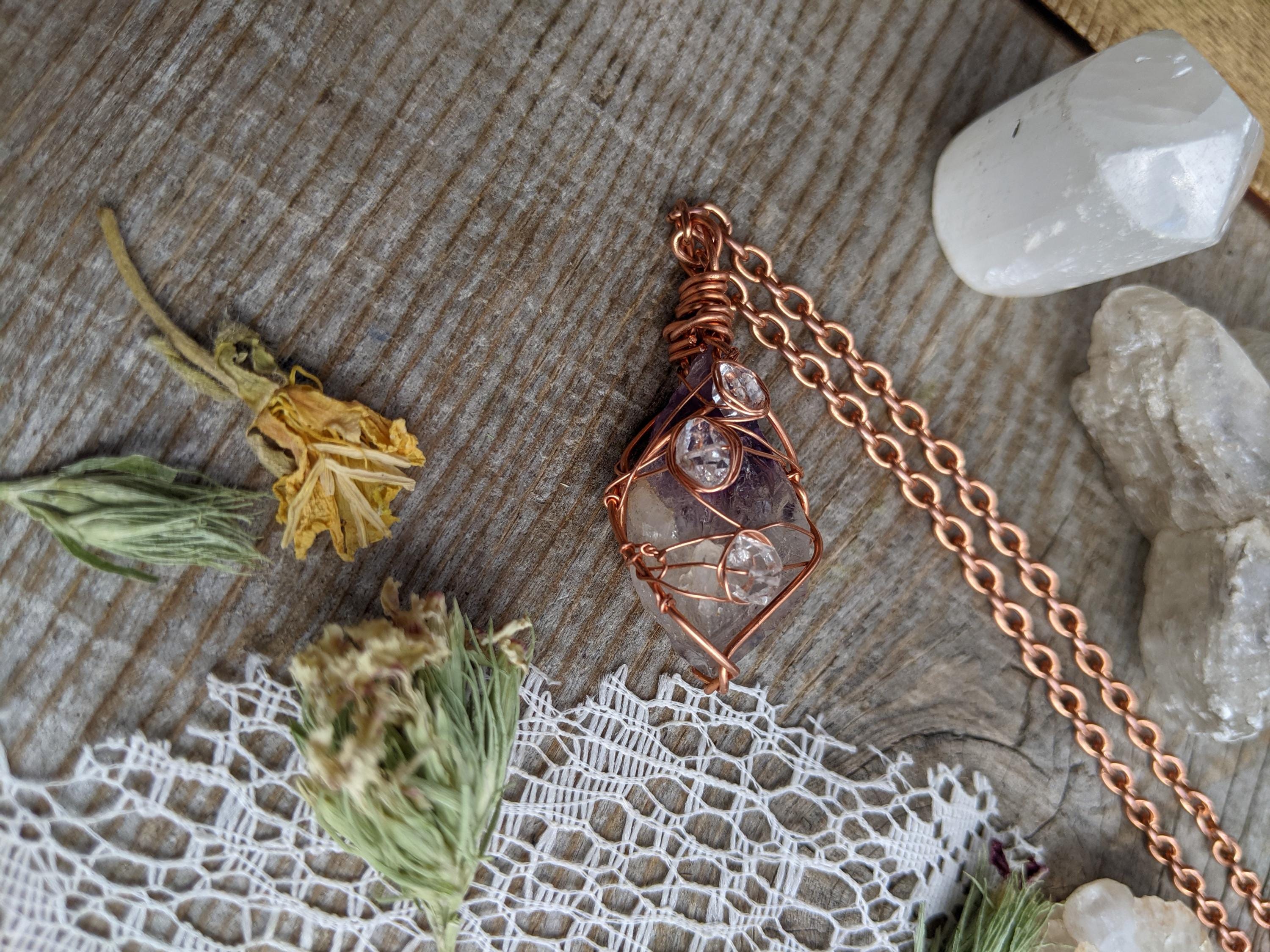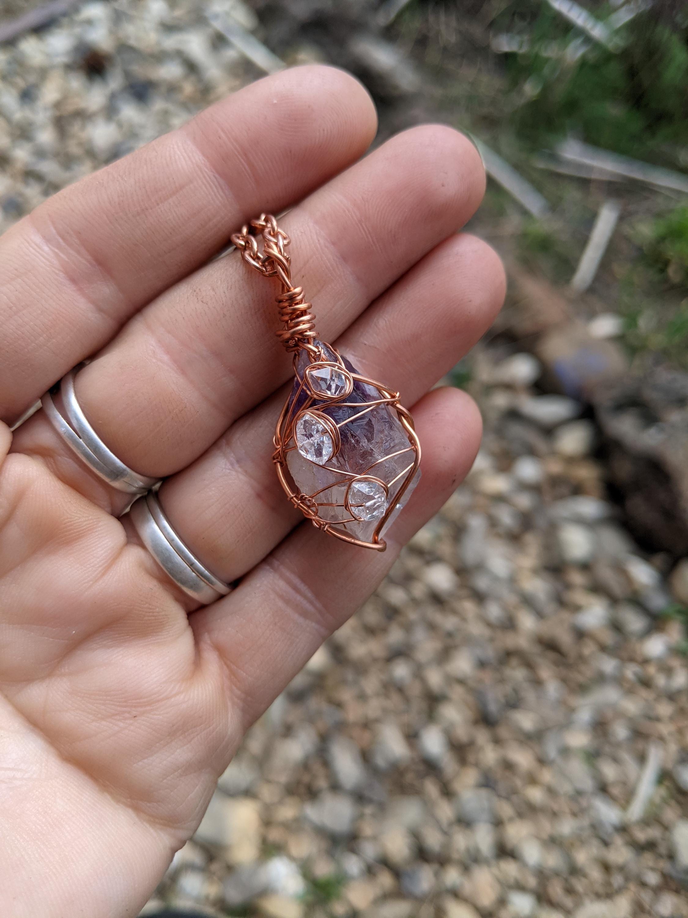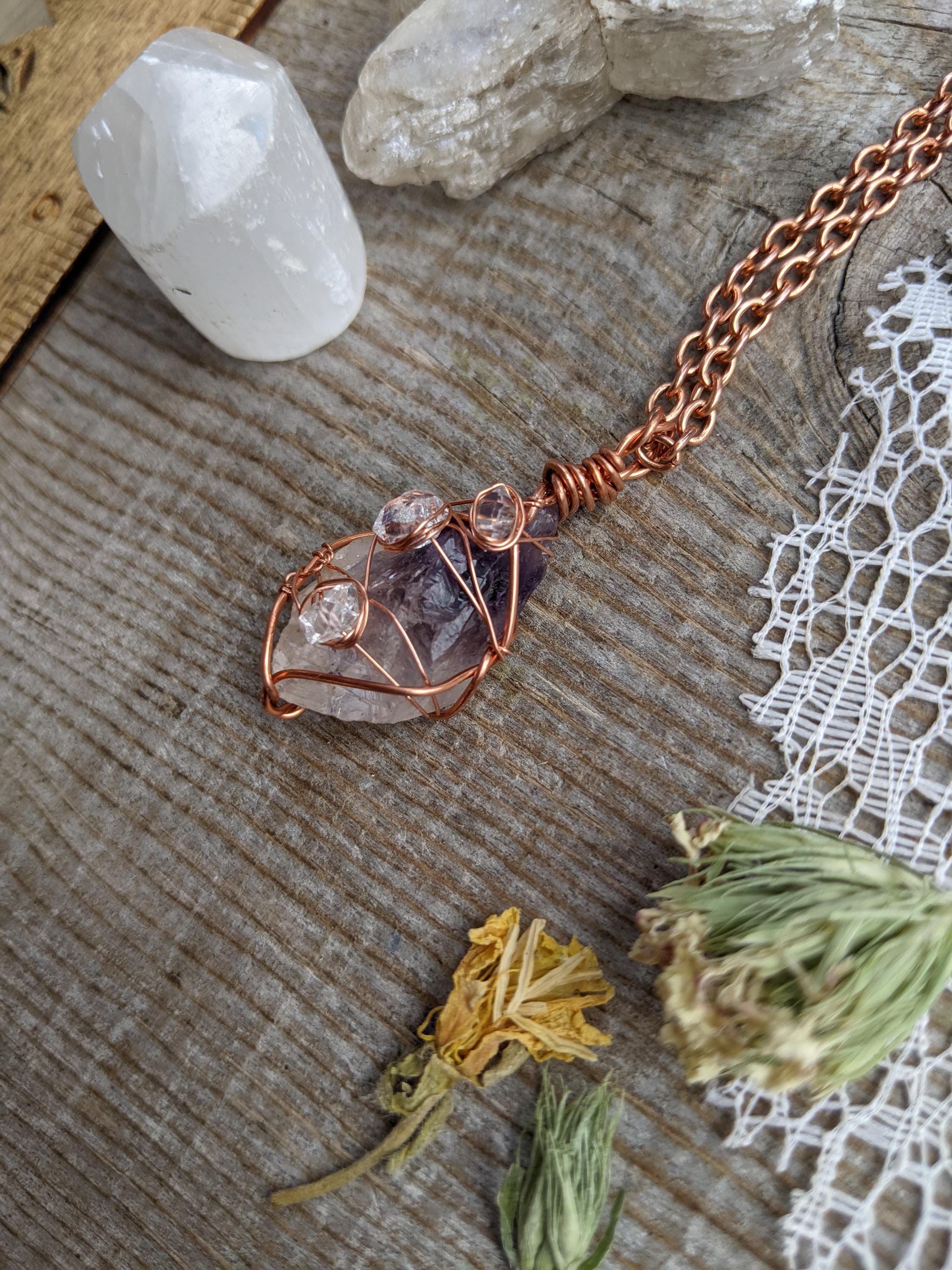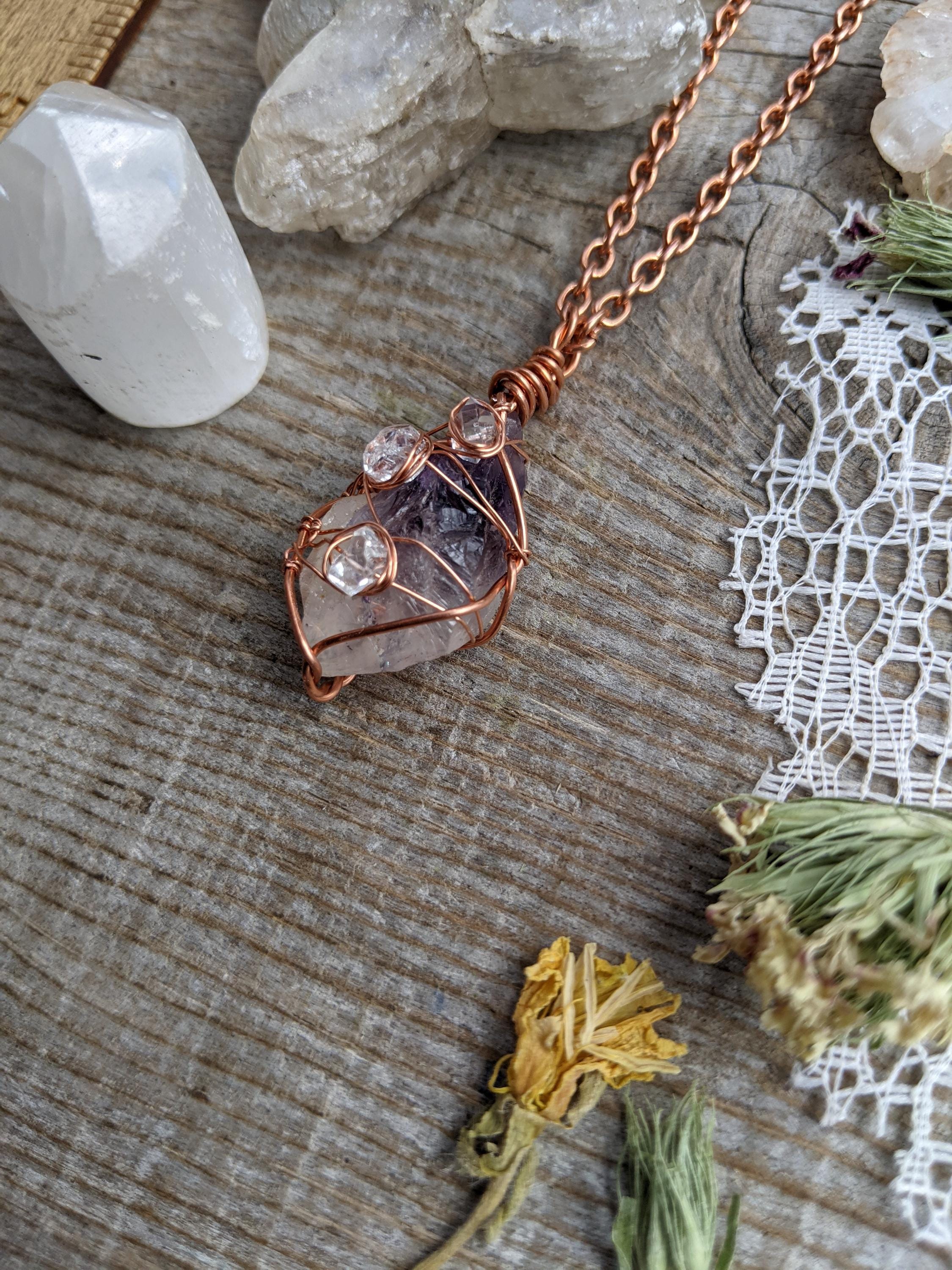 Raw, rough all natural amethyst and herkimer diamond pendant, herkimer pendant, amethyst necklace, raw amethyst pendant, amethyst crystal