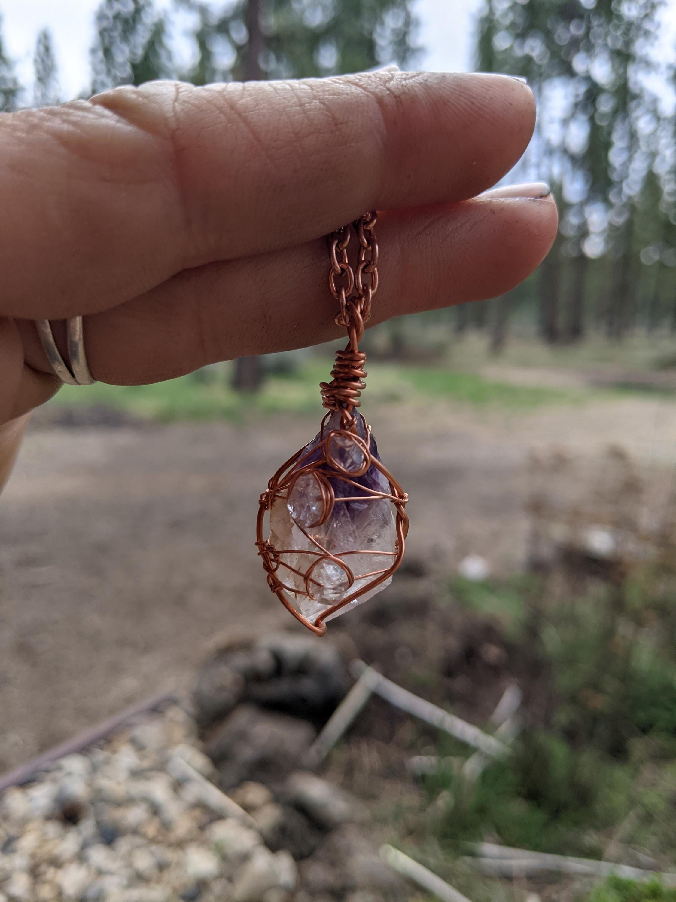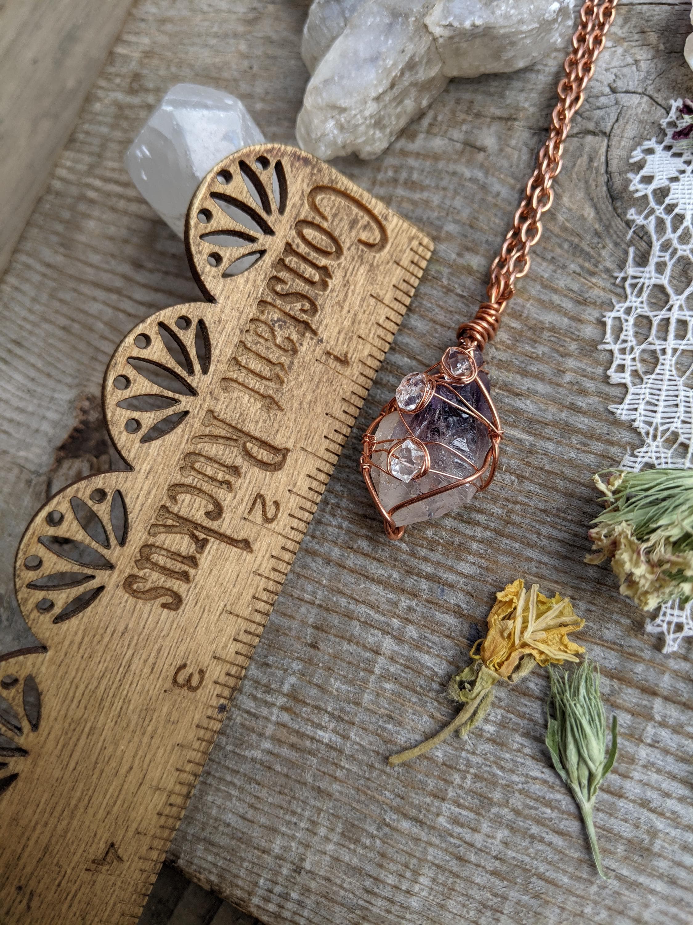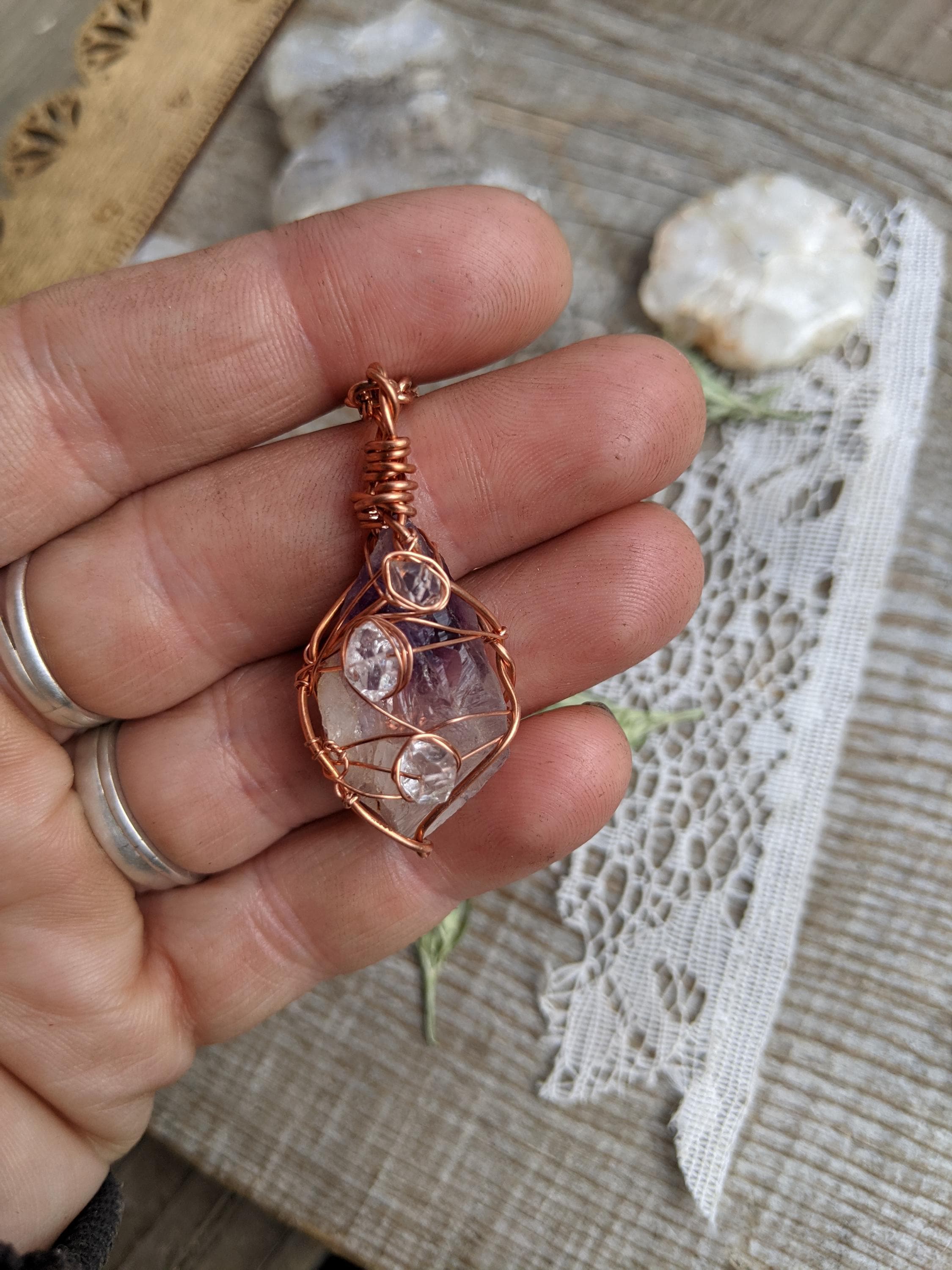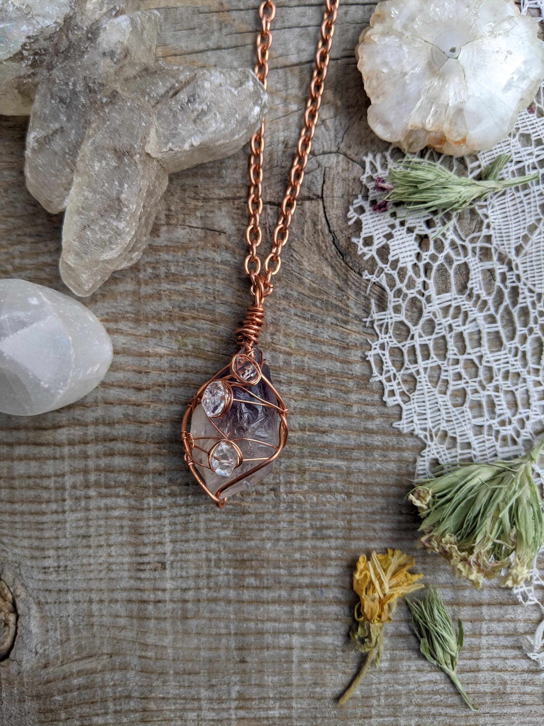 Raw, rough all natural amethyst and herkimer diamond pendant, herkimer pendant, amethyst necklace, raw amethyst pendant, amethyst crystal