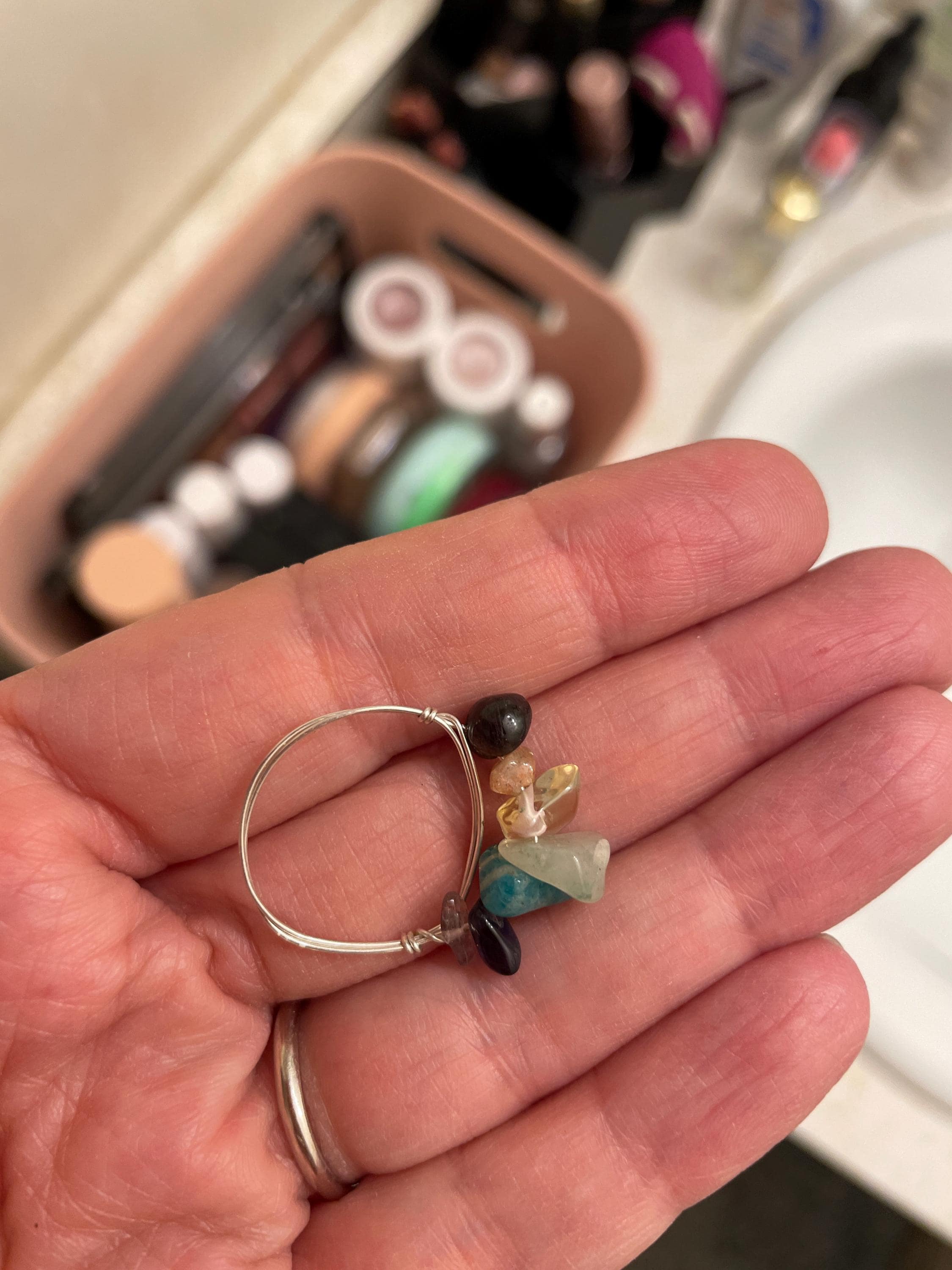 Not happy with the ring . I asked for the stones to be similar in size but this ring has either big stones or almost non existent ones like the pink tourmaline at the end which is 1/10 of the stones in the middle. It looks as if there was no thought put in making it . It looks nothing like the pictures. I just wasted money and time