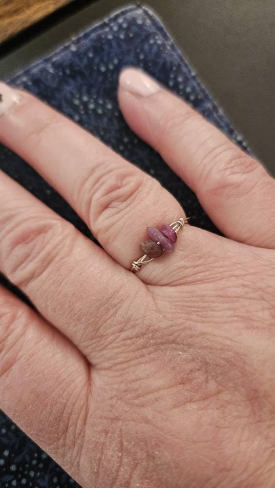 Super high quality raw ruby gemstone Crystal ring in bronze wire or in sterling silver
