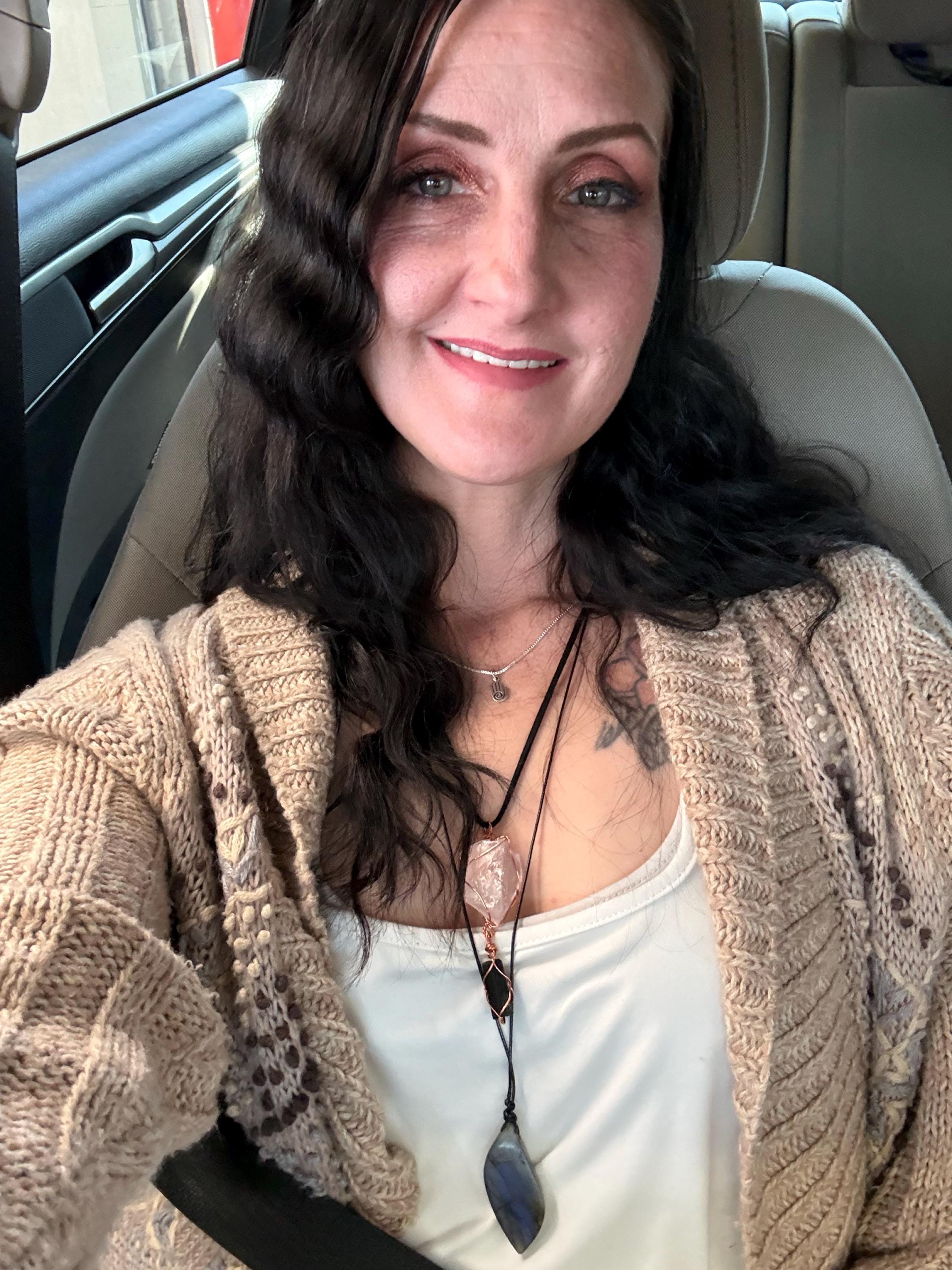 I absolutely love my rose quartz and black tourmaline pendant necklace! The beautiful hand wiring is stunning wrapped around the gorgeous crystals. Item just as described and as shown in listing photos. Thank you for answering all my questions and for the fantastic customer service. I will be back! ❤️