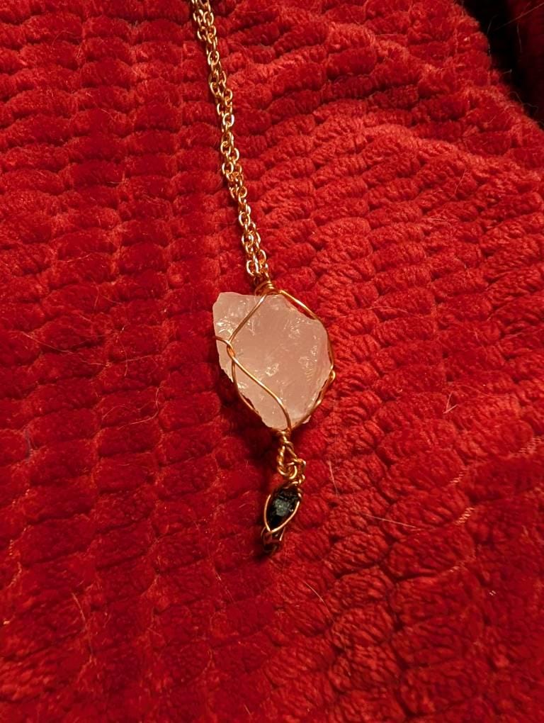 Rose quartz and black tourmaline pendant, rose quartz pendant, black tourmaline pendant, rose quartz necklace, raw crystal jewelry, raw tour