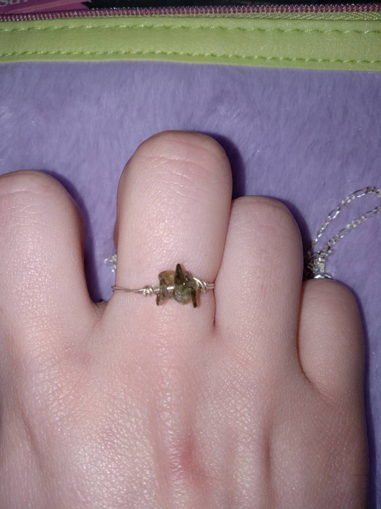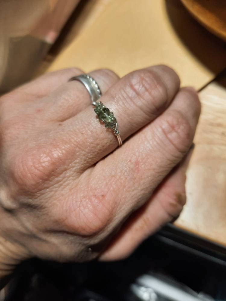 This ring and I were meant to be! 😍 it is beautiful and the crystals are genuine moldavite, I'm so pleased with it! I haven't taken it off since I received it 😍 It fits my middle finger ( The finger I bought it for ) perfectly 😊 You'll never be disappointed when buying from Dahllia, Her jewelry is beautiful and of the highest quality. Thank you Dahllia 🤗😊