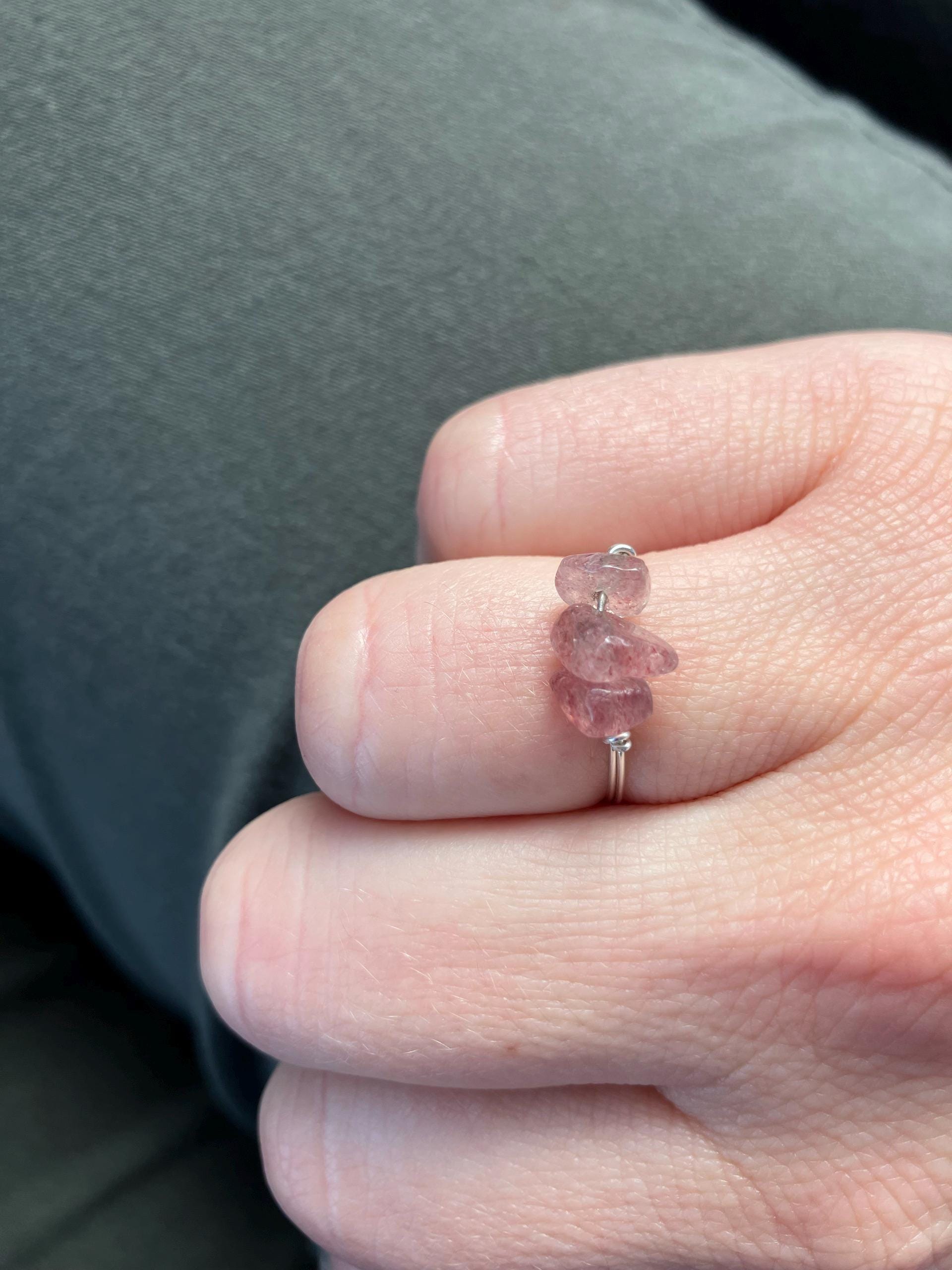 Beautiful, pink, strawberry quartz ring, made to order with bronze or pure silver wire. Strawberry quartz means that the quartz has hematite inclusions.