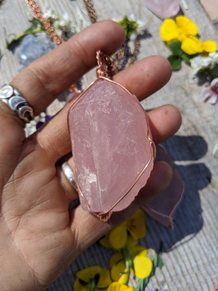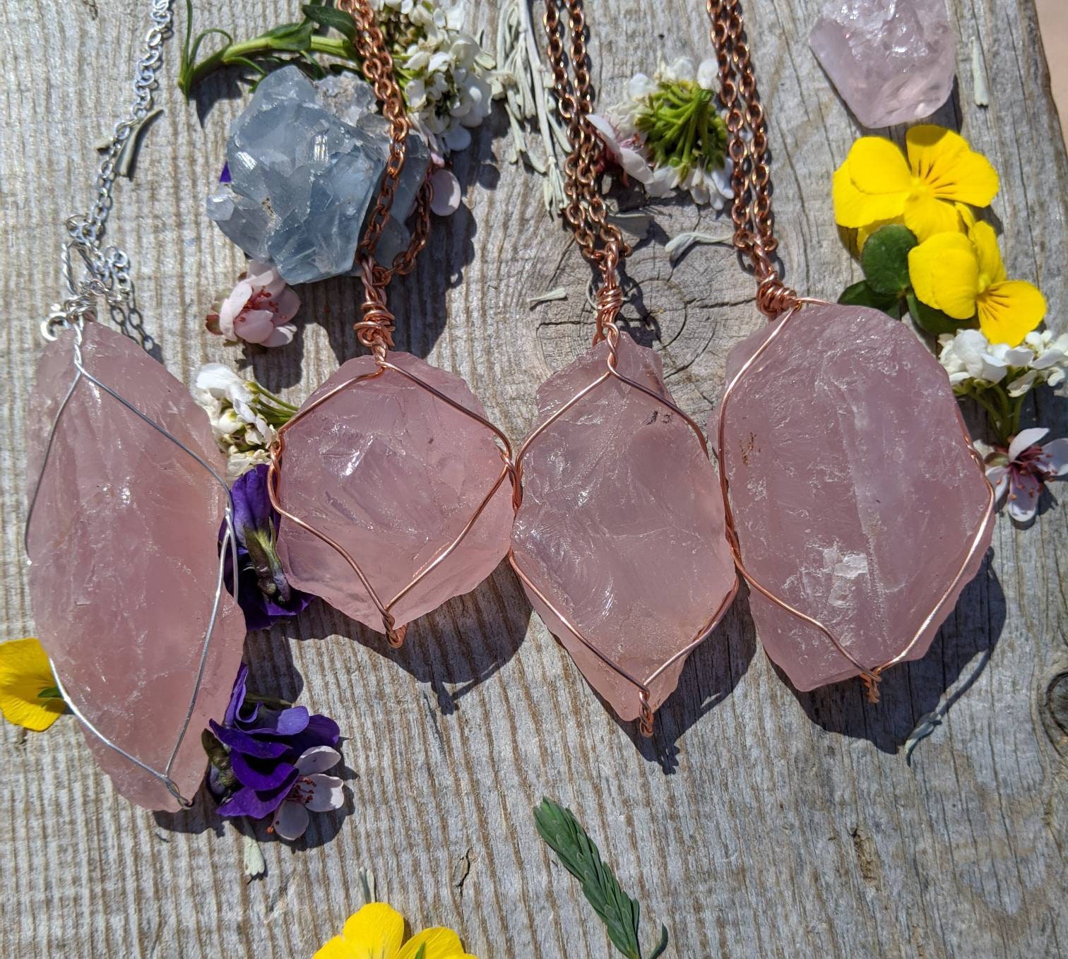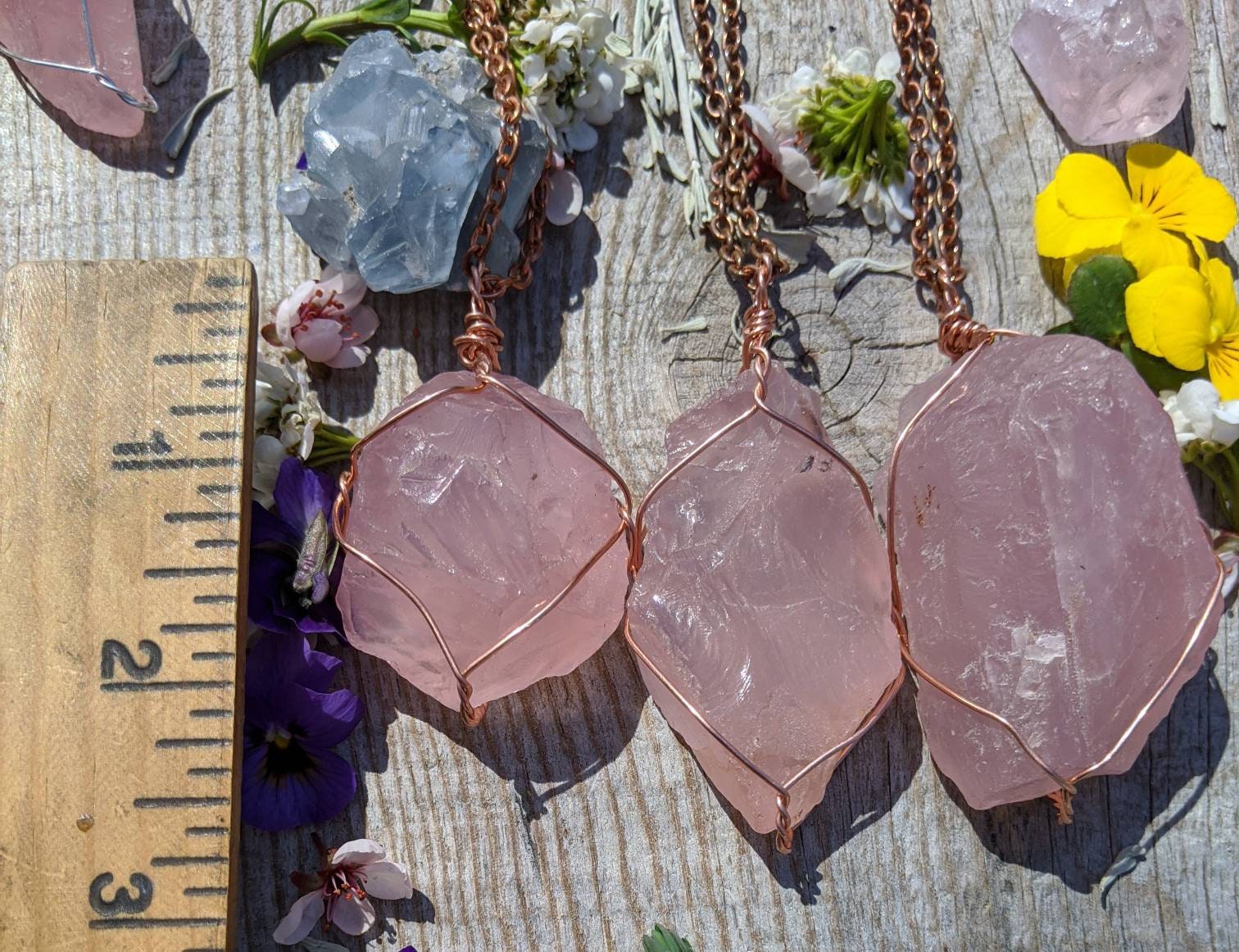 XL Raw natural rose quartz crystal wire wrapped pendant, raw rose quartz necklace, pink quartz pendant, pink quartz crystal, high quality