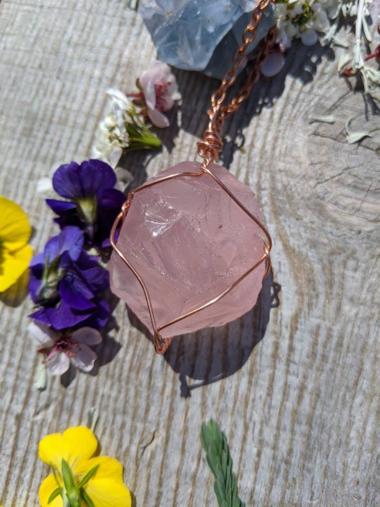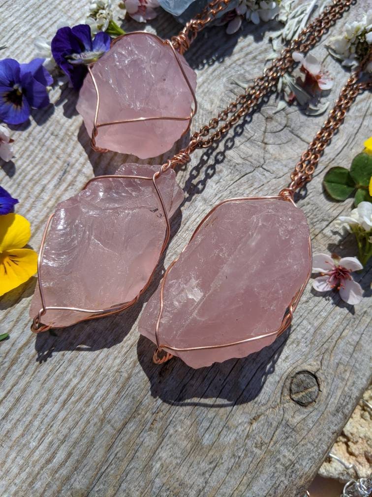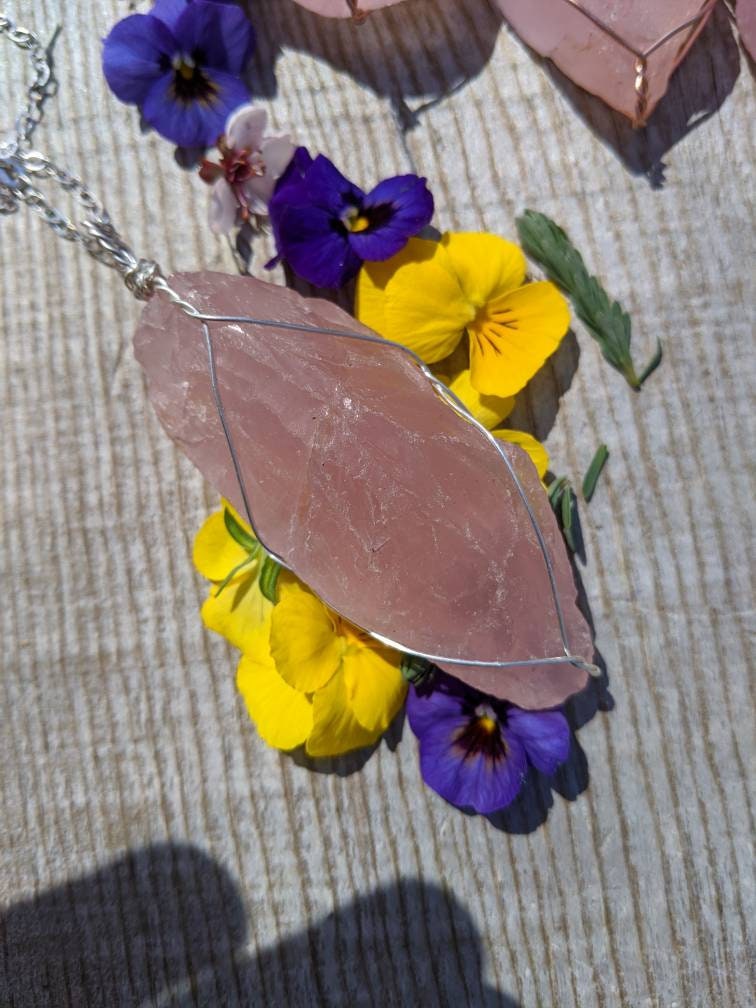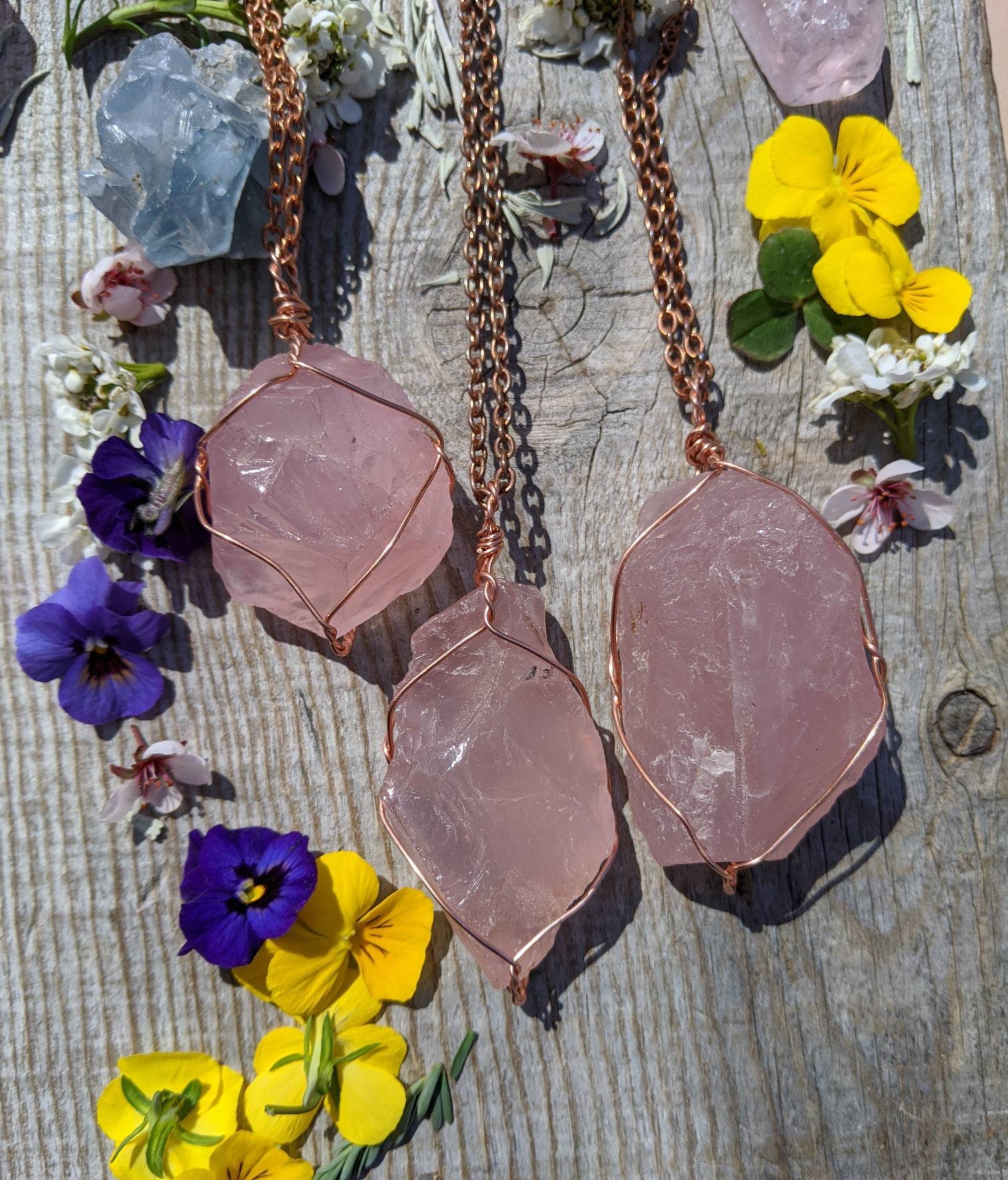 XL Raw natural rose quartz crystal wire wrapped pendant, raw rose quartz necklace, pink quartz pendant, pink quartz crystal, high quality