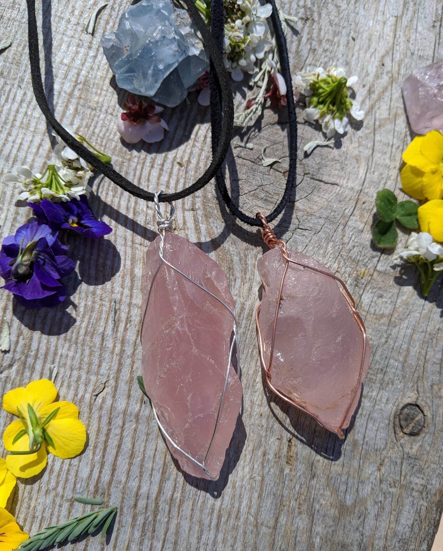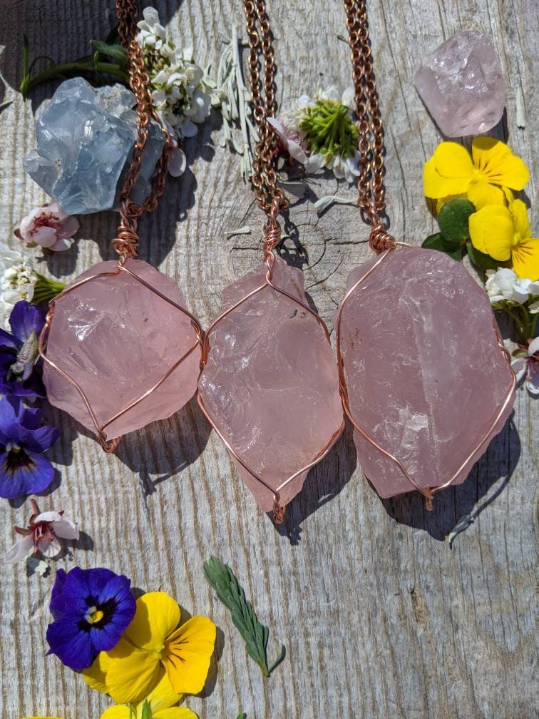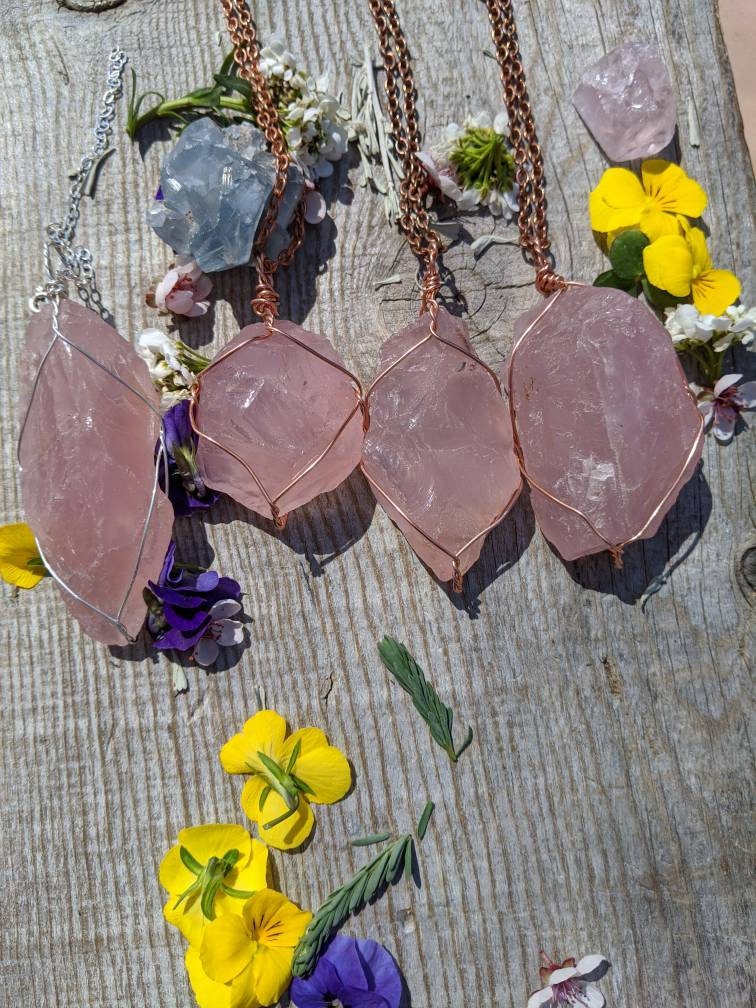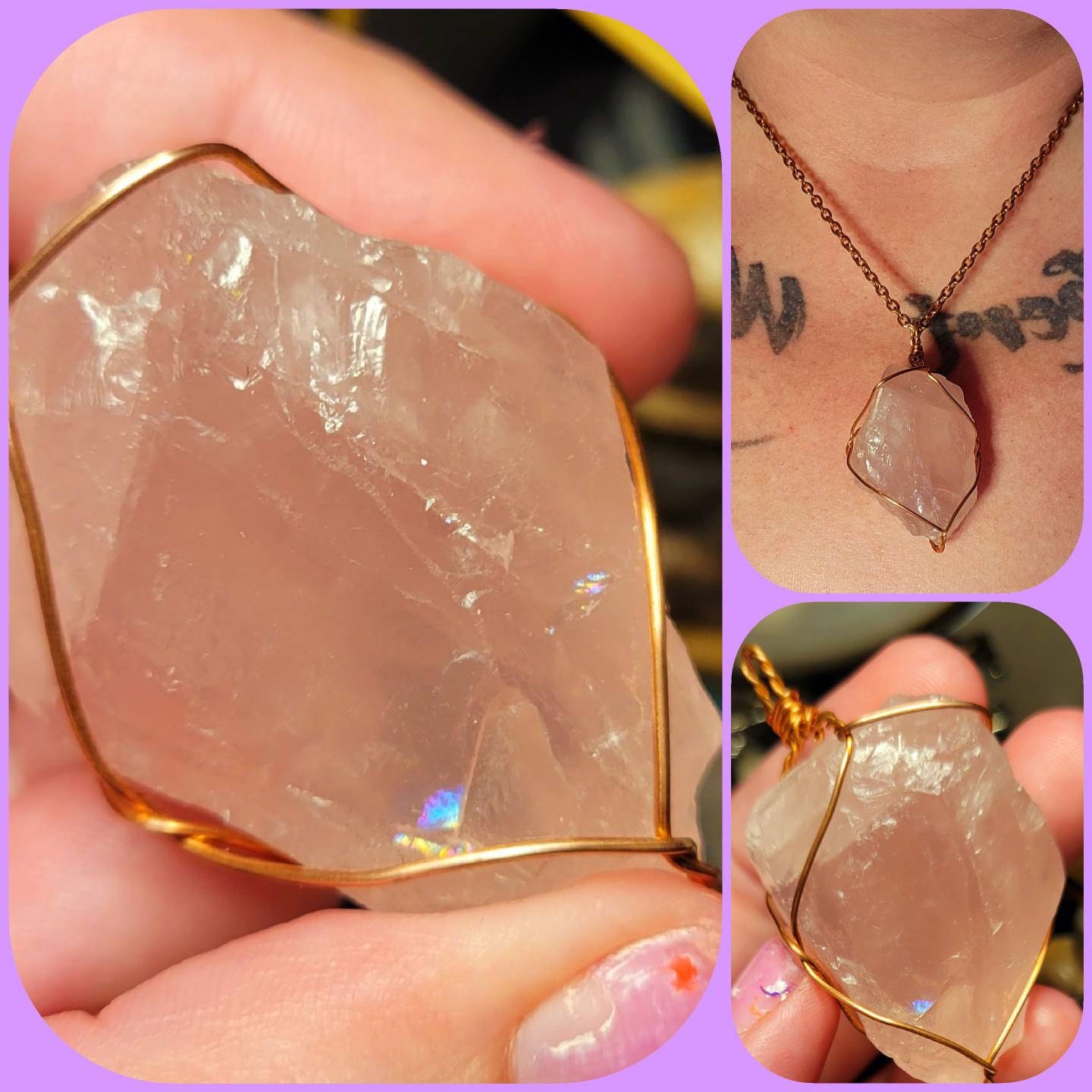 I have been a Practicing Crystal Witch for a long time. Lately, Rose Quartz has been calling to me so Strong that I just had to find a necklace I could wear daily. I came across these XL Raw Crystal wire wrapped Rose Quartz necklace from Constant Ruckus and I absolutely fell in LOVE. I was a little thrown off by the size, but when it came it was SO PERFECT. It's big, not heavy at all and I love the minimal wire wrap because you can see the whole Crystal. It is a beautiful pink, not washed out at all. Plus the rainbows in it just top it all off. I instantly felt the energy from it and It was definitely ment to be mine. Thank you Constant Ruckus for getting me the perfect Rose Quartz. I highly recommend buying from them and I will for sure be back.